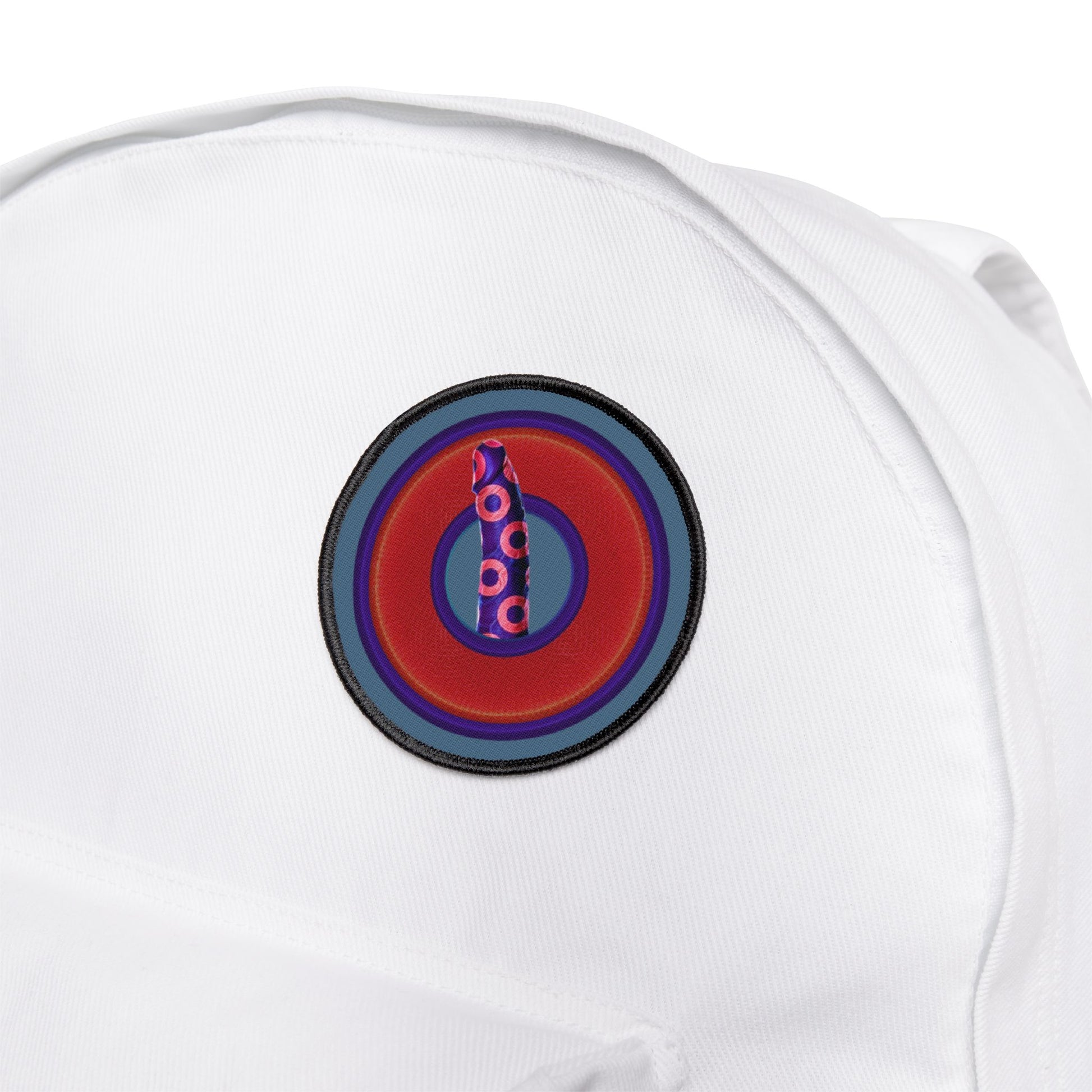 Iron-On Donut Patch - "Sir Richard's Phamous Donut Patch" - rustic red/blue donut - variant 2