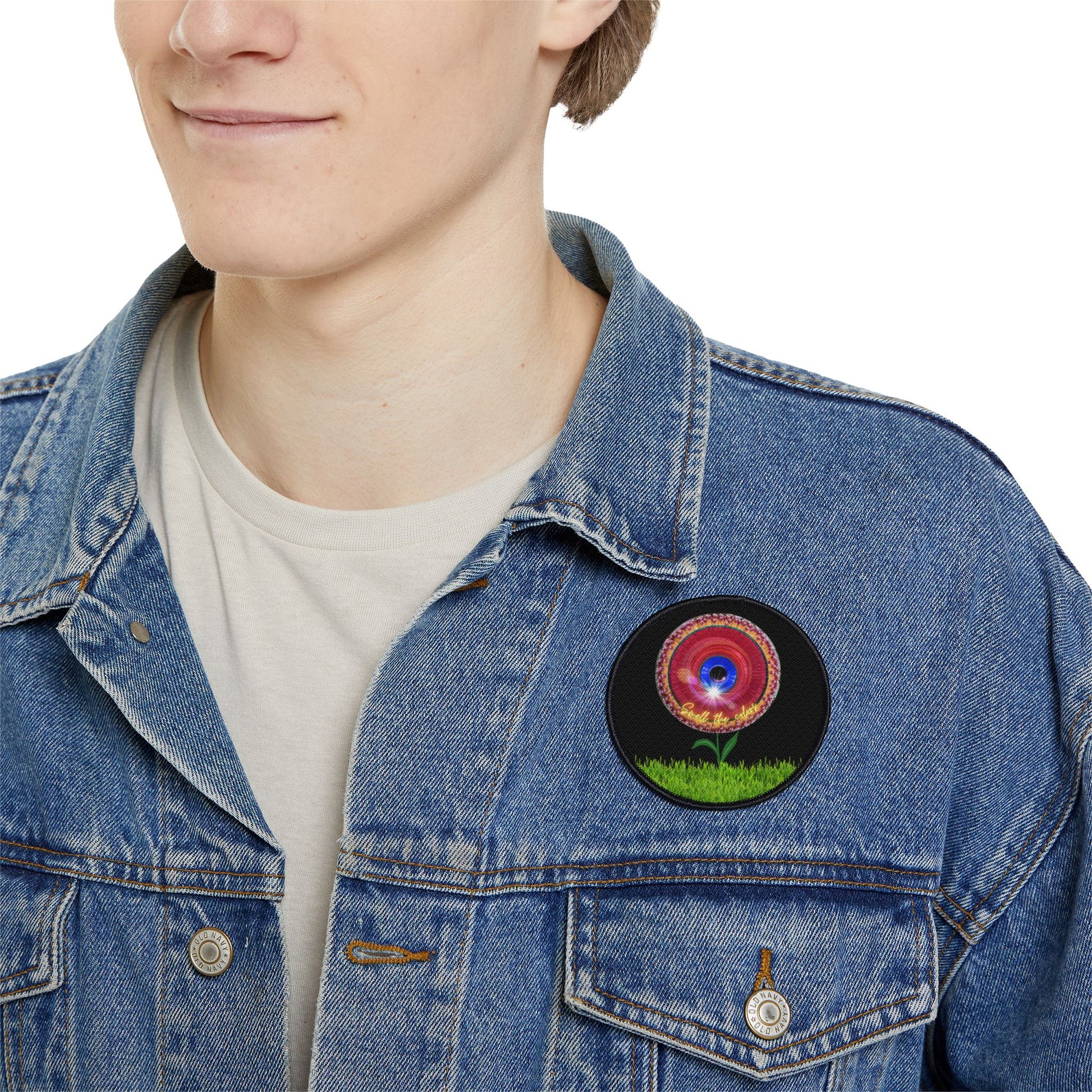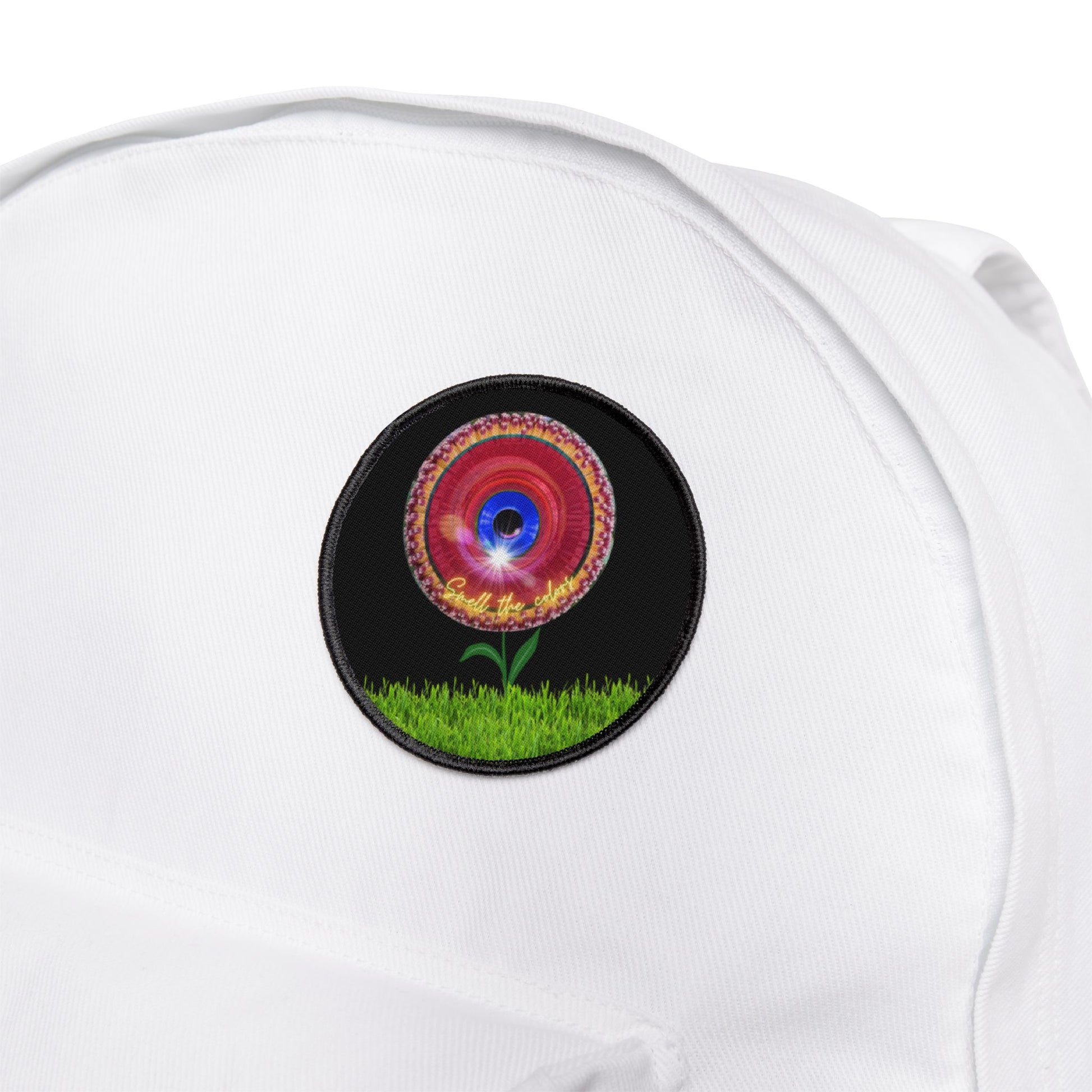 Iron-On Donut Patch - "Smell The Donut Patches" - vivid red flour donut - variant 3