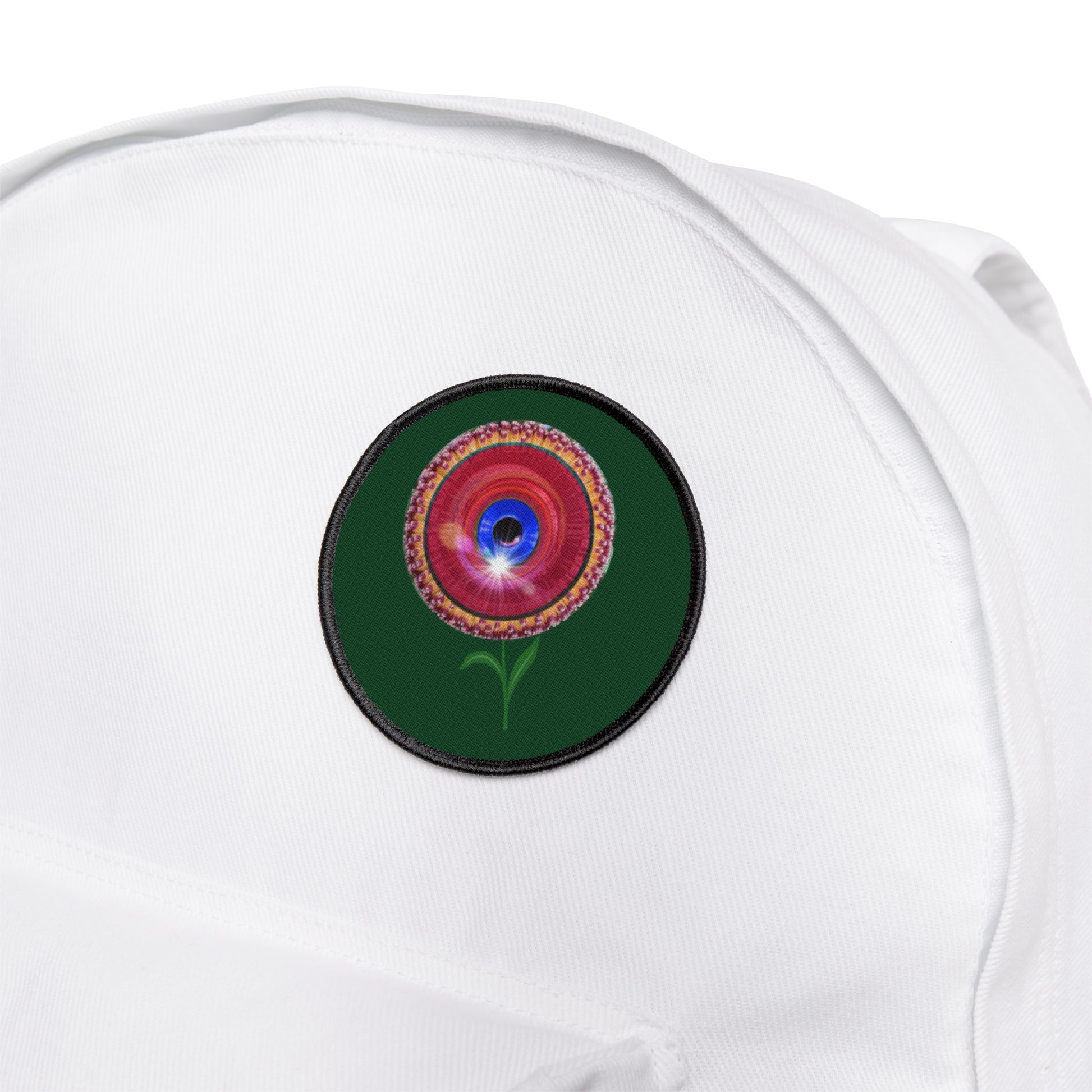 Iron-On Donut Patch - "Smell The Donut Patches" - vivid red flour donut - variant 1