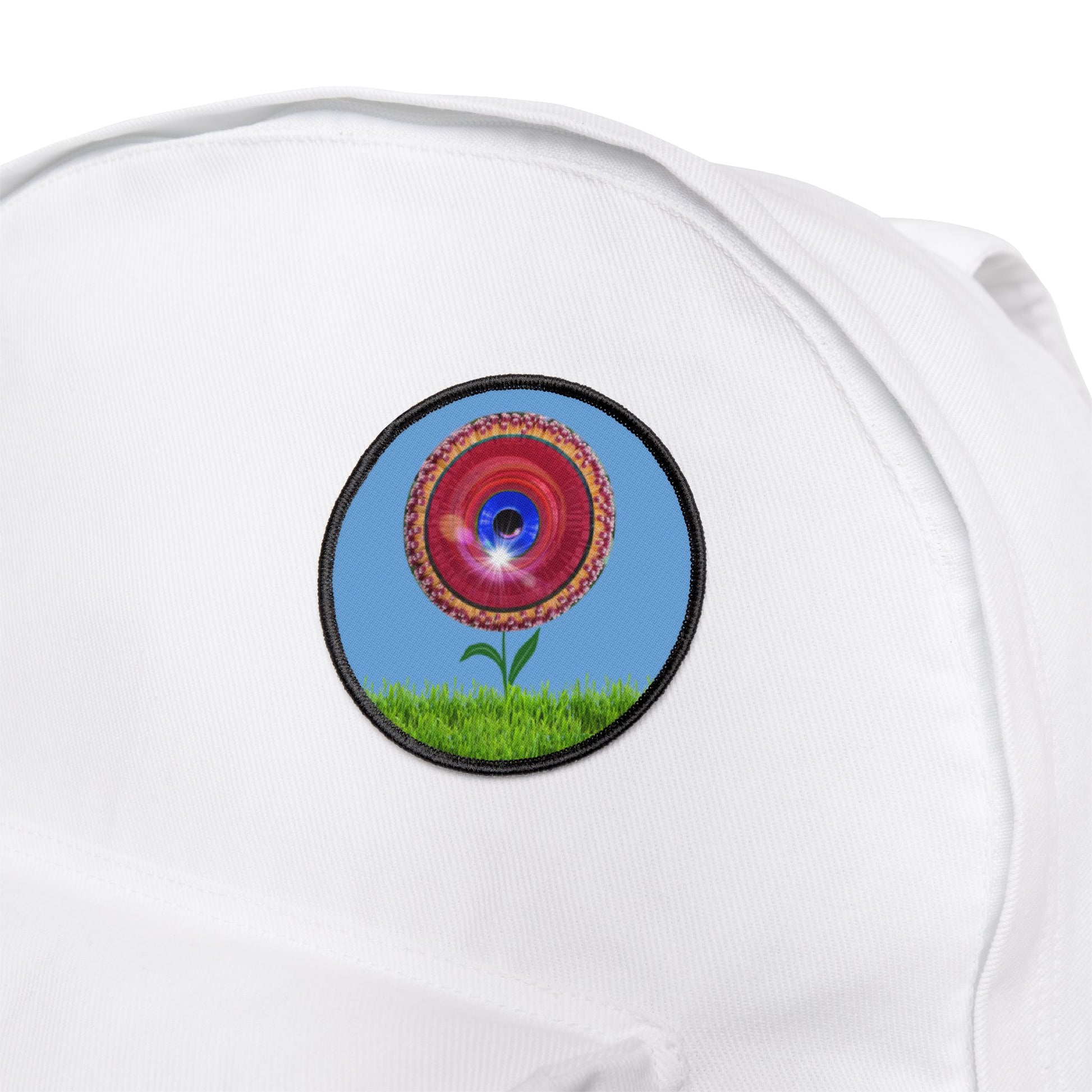 Iron-On Donut Patch - "Smell The Donut Patches" - vivid red flour donut - variant 2