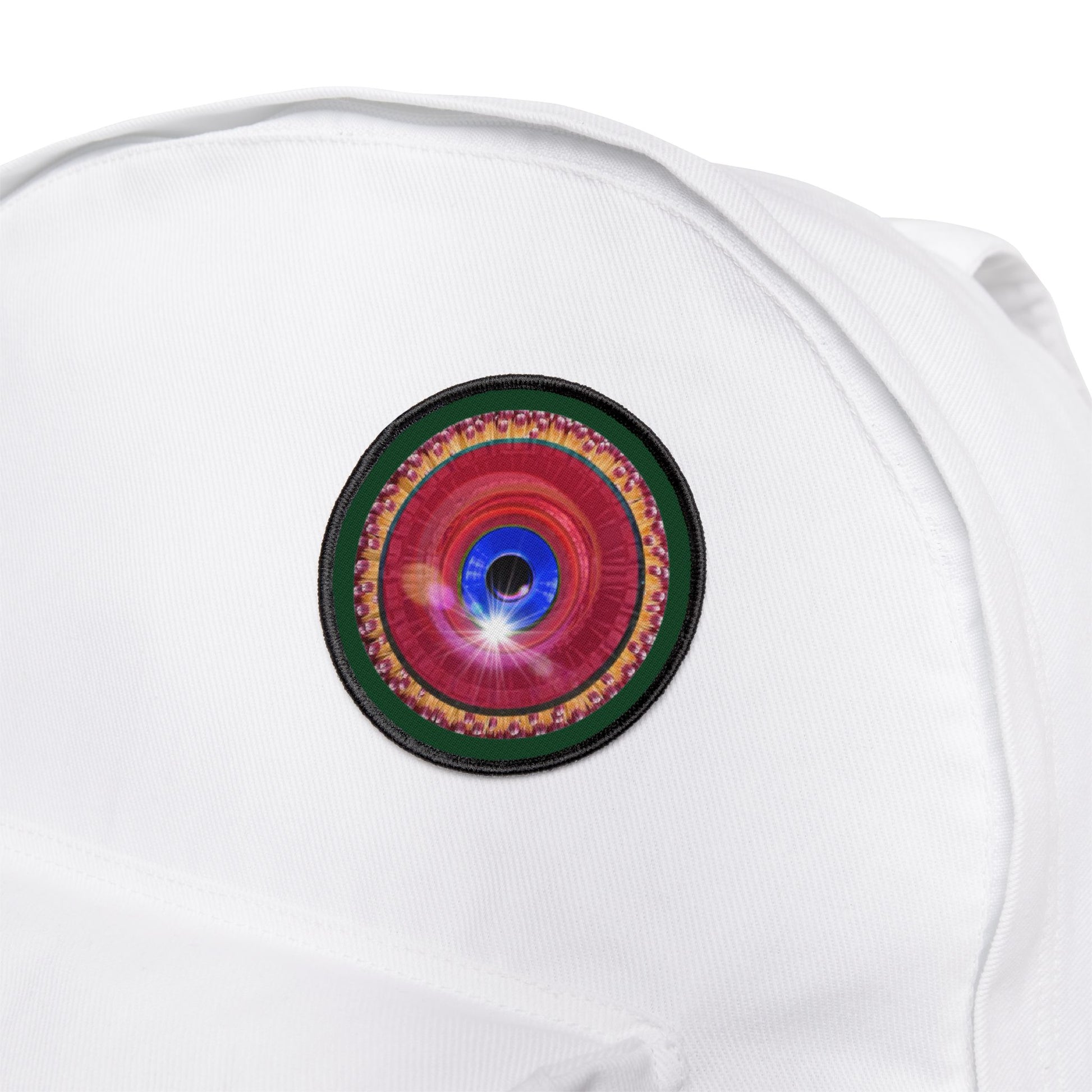 Iron-On Donut Patch - "Solitary Flour Donut Patch" - vivid red/blue flour donut
