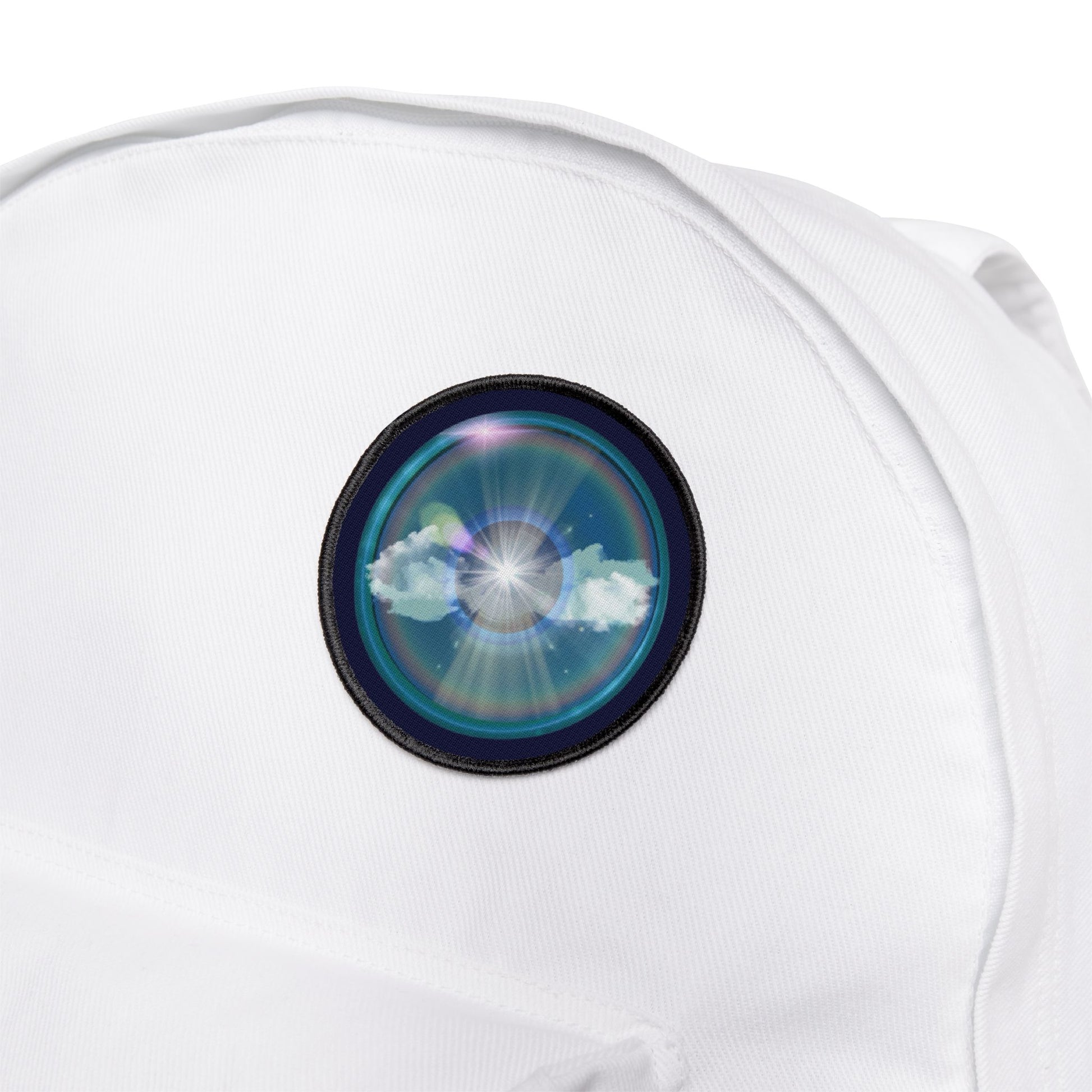 Iron-On Donut Patch - "The Divided Donut Patch" - vivid light blue sky donut - variant 1 - [*charitable donut]