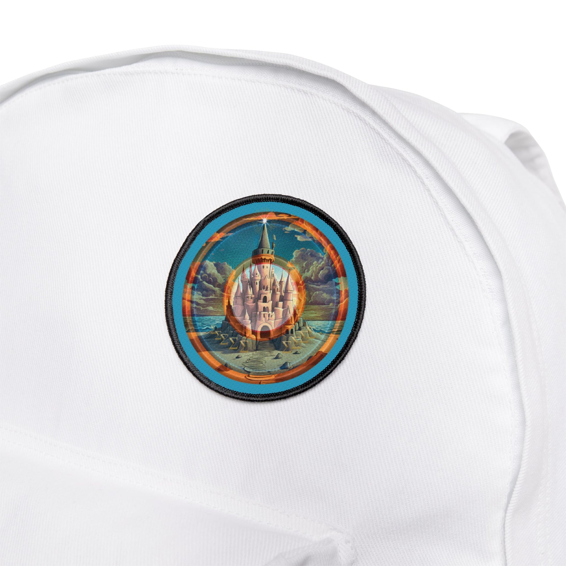 Iron-On Donut Patch - "The Donut Patch that Tides Never Reach" - rustic orange/blue pic donut - variant 1