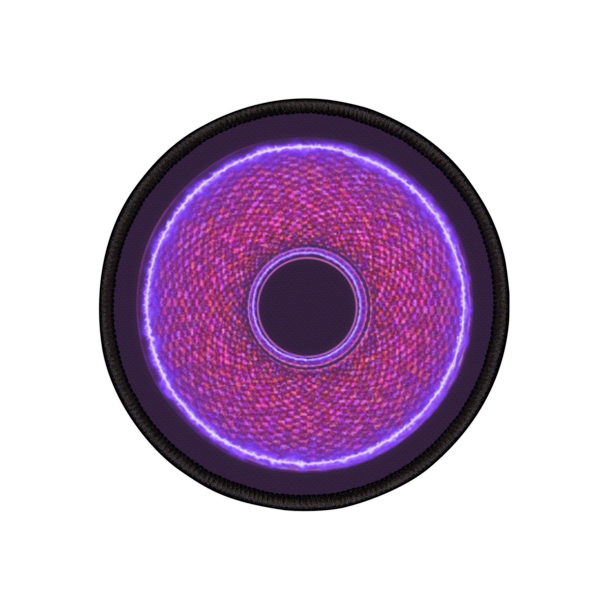 Iron-On Donut Patch - "The Frankenstein Donut Patch... It's Alive!" - purple pixilated donut
