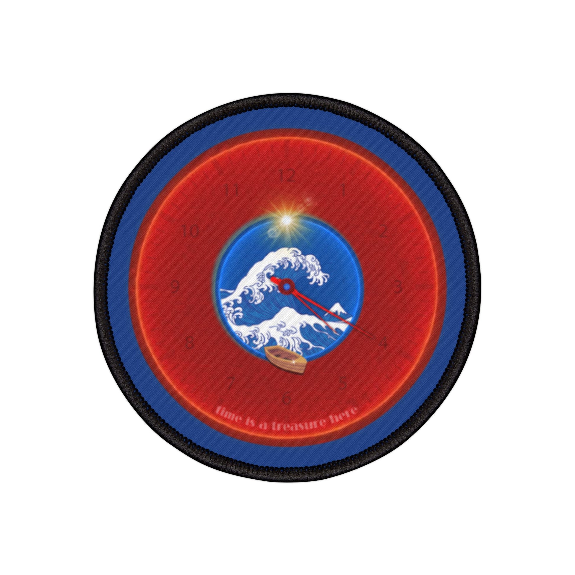 Iron-On Donut Patch - "Time Treasurer's Donut" - vivid red donut - variant 1