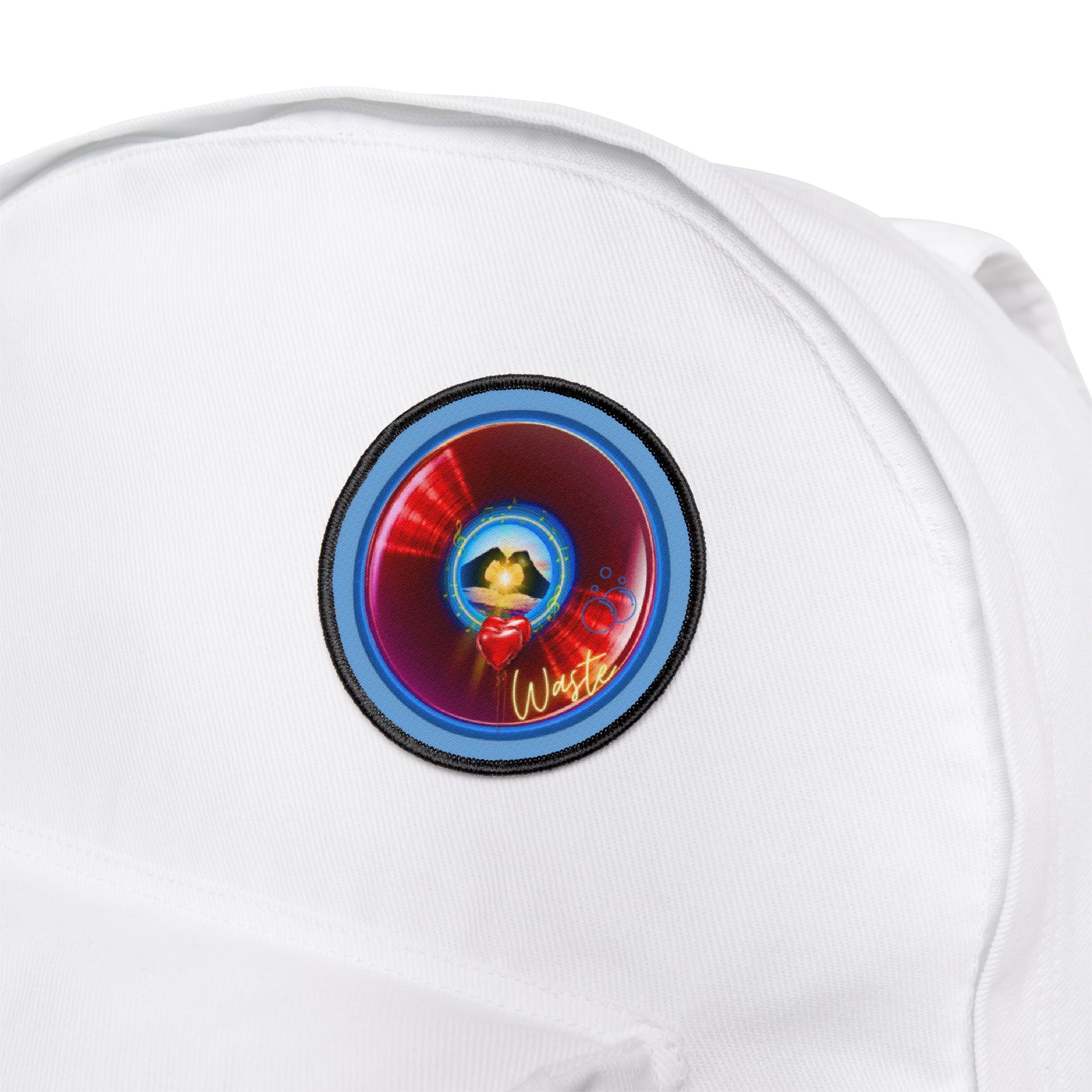 Iron-On Donut Patch - "Waste of a Perfectly Good Donut Patch" - vivid red record donut