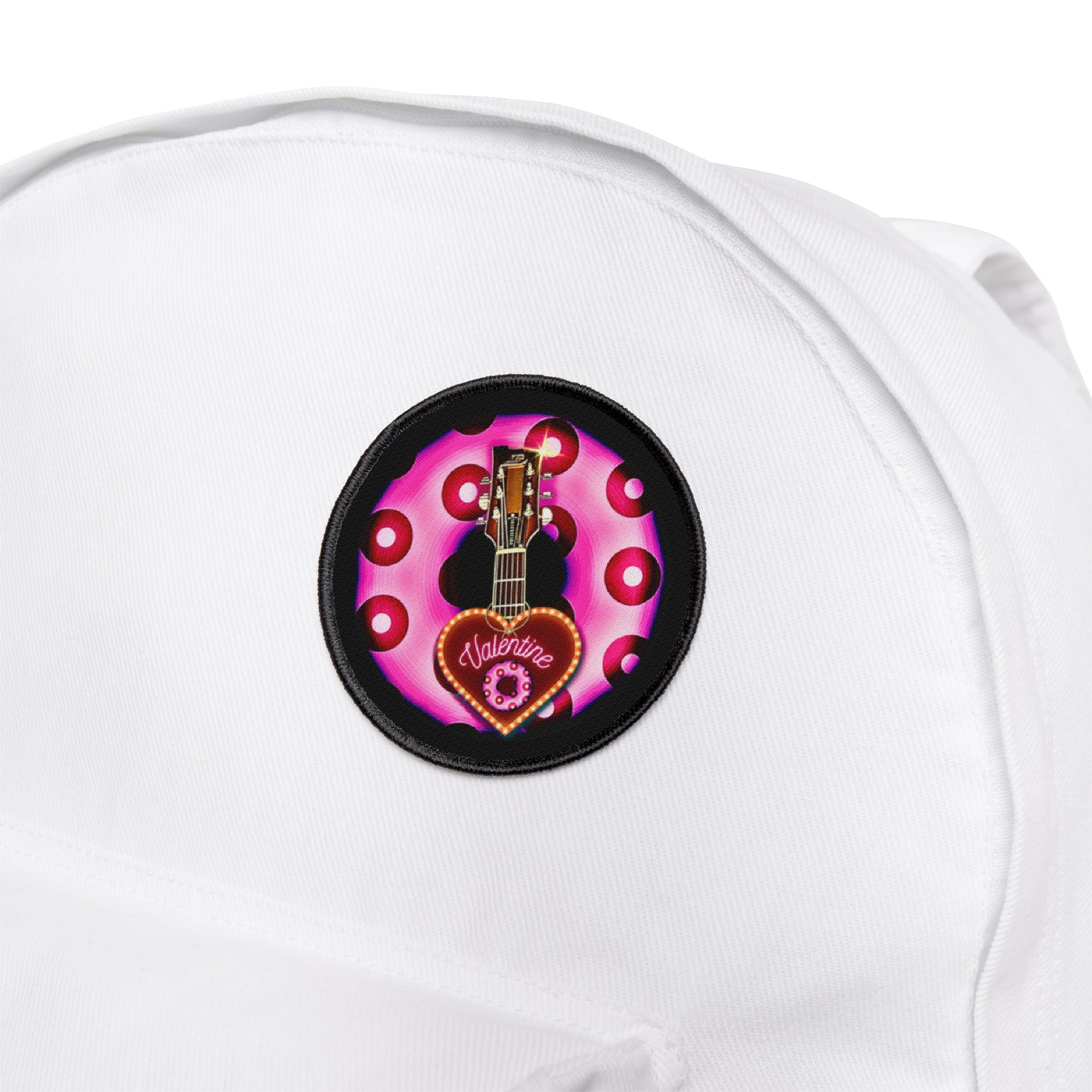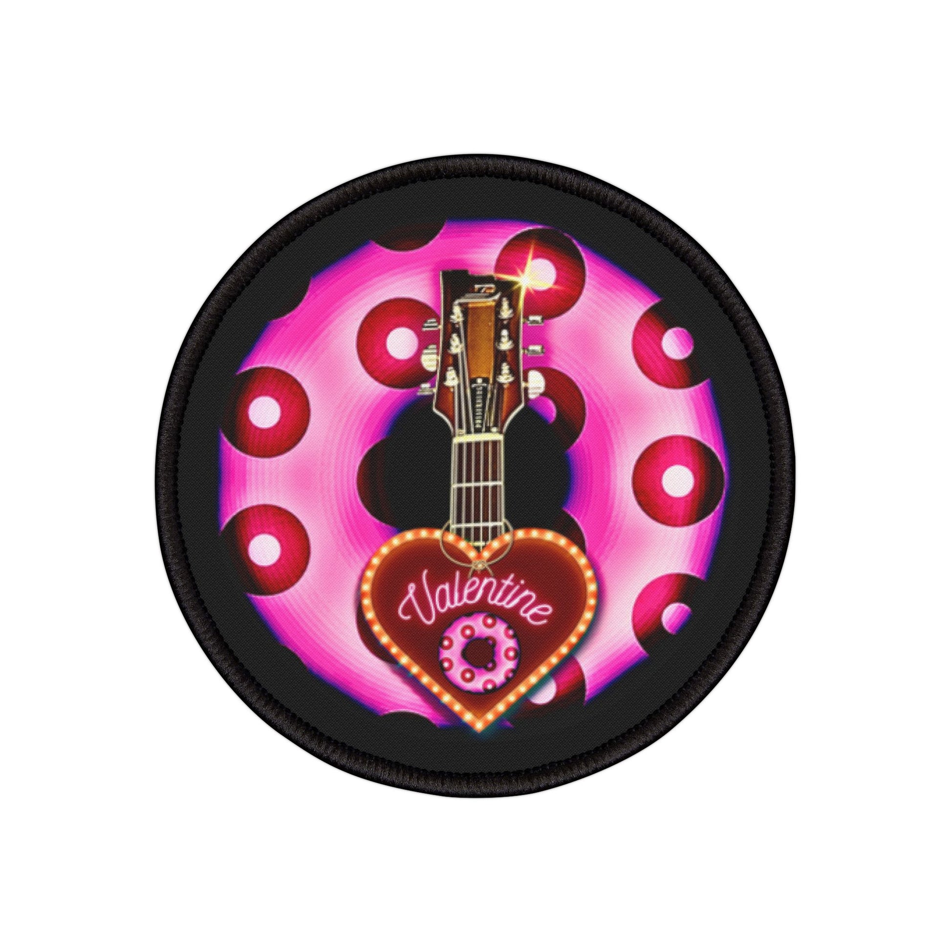 Iron-On Donut Patch - "Would You Be My Donut?" - magenta/red blimpy paradoxical donut - variant 2