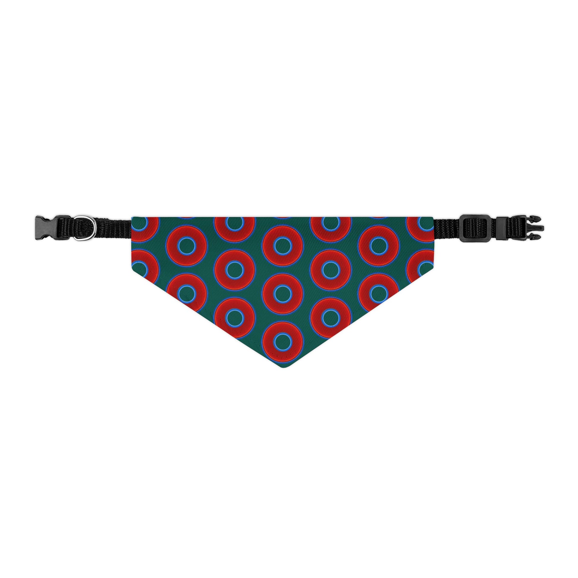 Jim's Lumpy Bandana Pet Collar - vivid red donuts w/dark Fenway green background