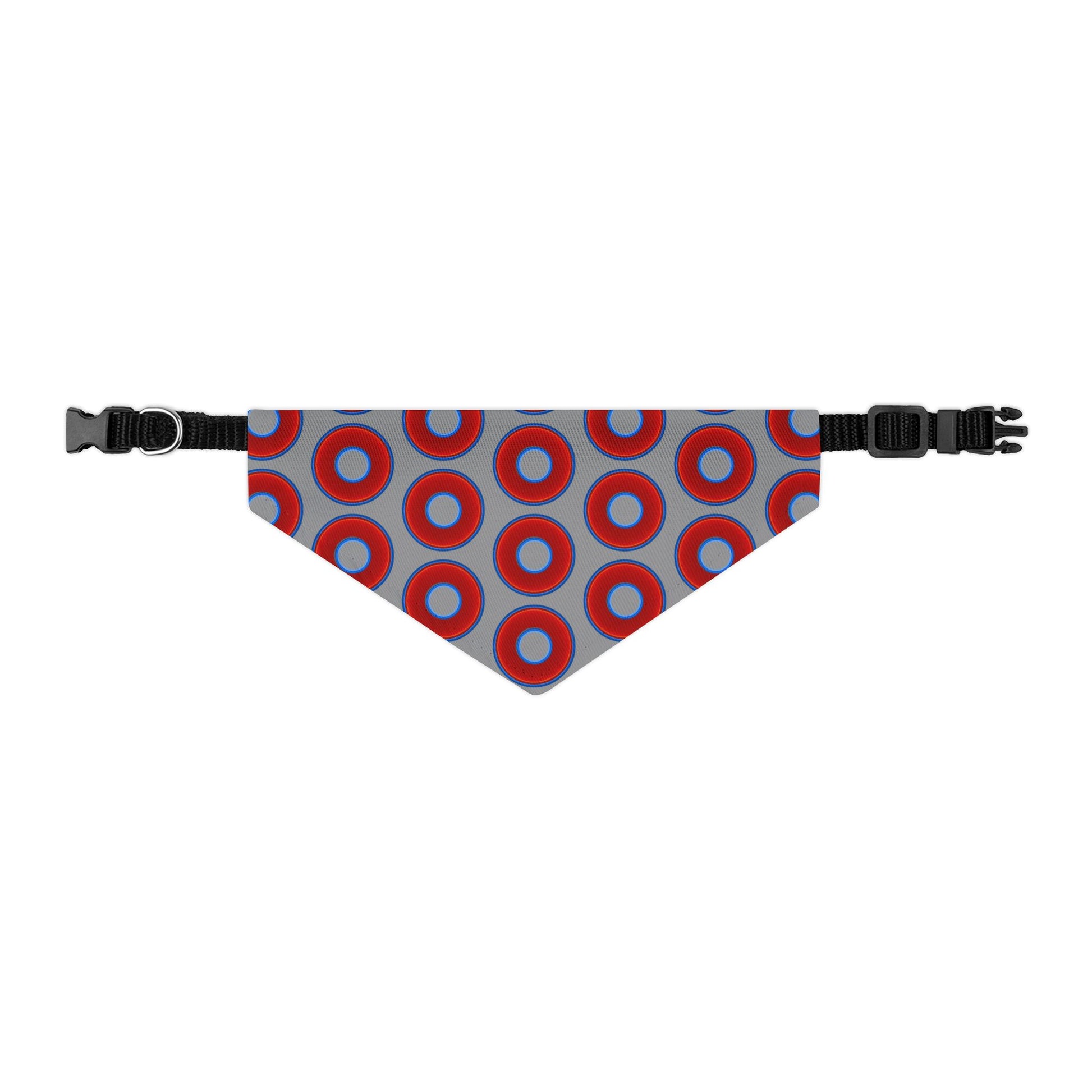 Jim's Lumpy Bandana Pet Collar - vivid red donuts w/gray background