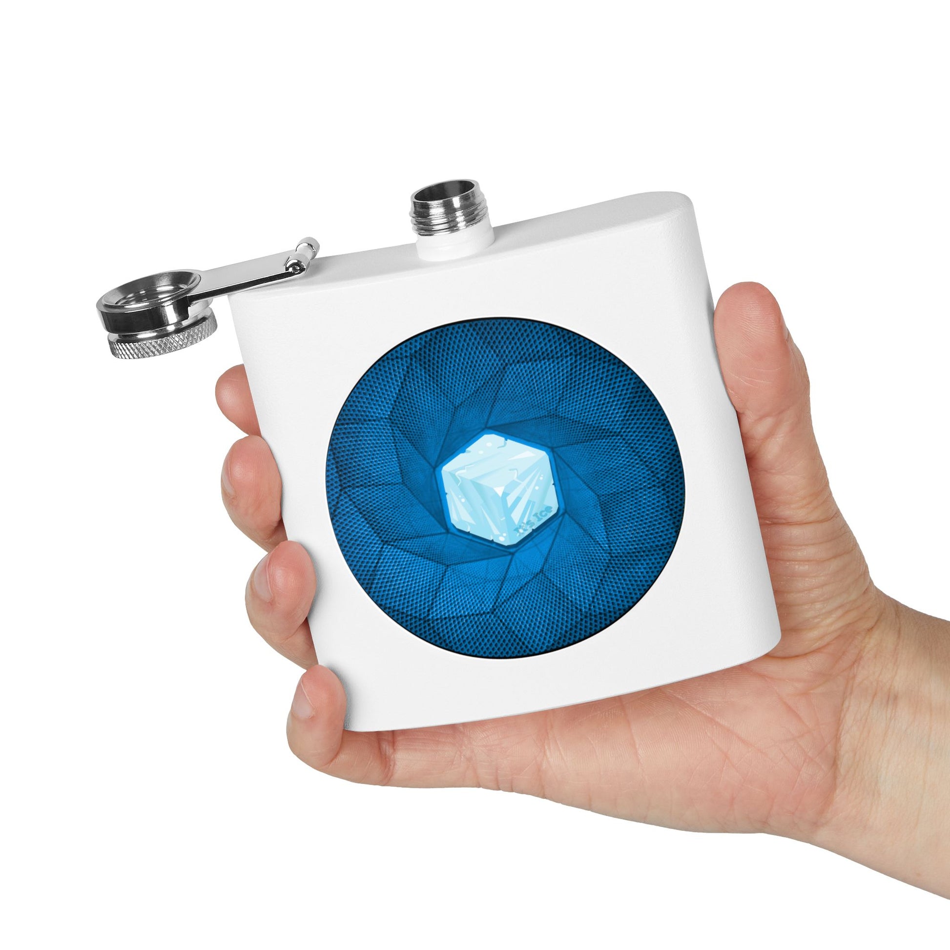 Lump's Donut Flask 6 oz - "It's Ice... Cube's Donut Flask" - blue cubed donut - [*w/your choice of 6 backgrounds]