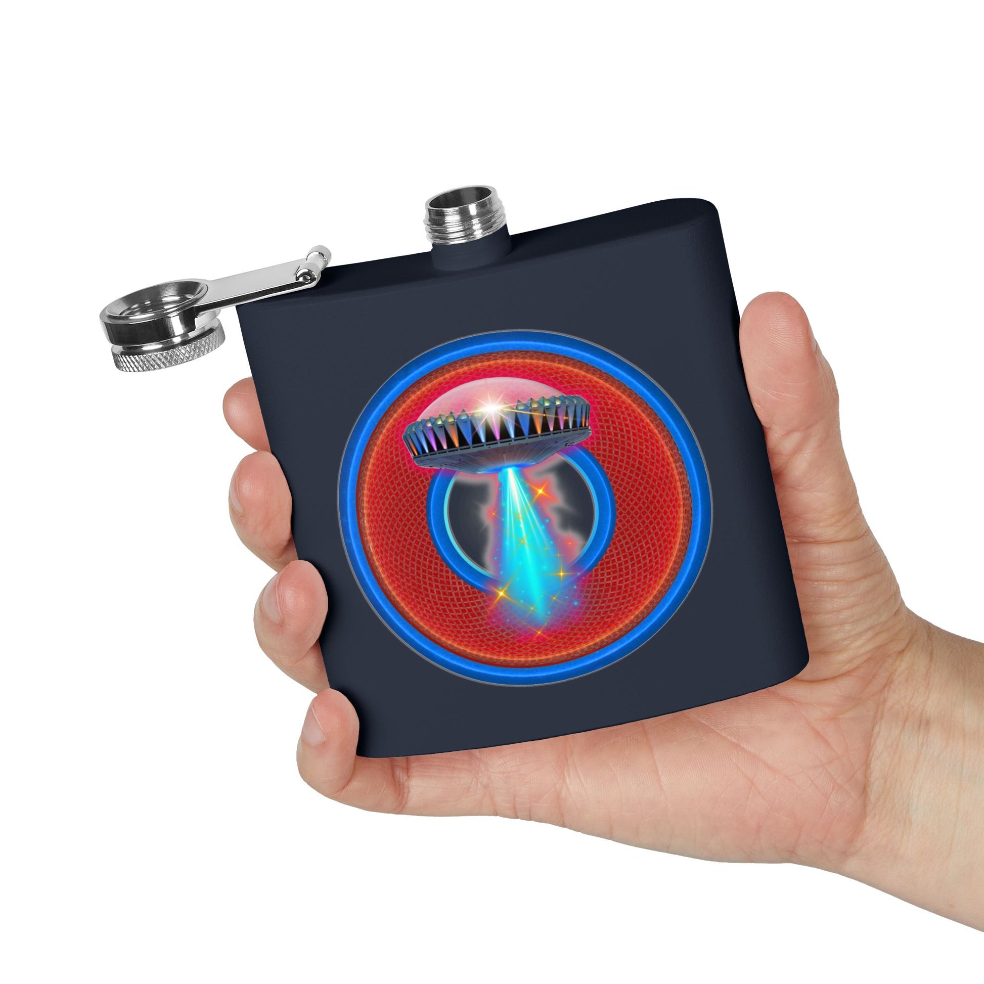 Lump's Donut Flask 6 oz - "The Mother of All Flasks" - red/blue rustic donut - [*w/your choice of 6 backgrounds]