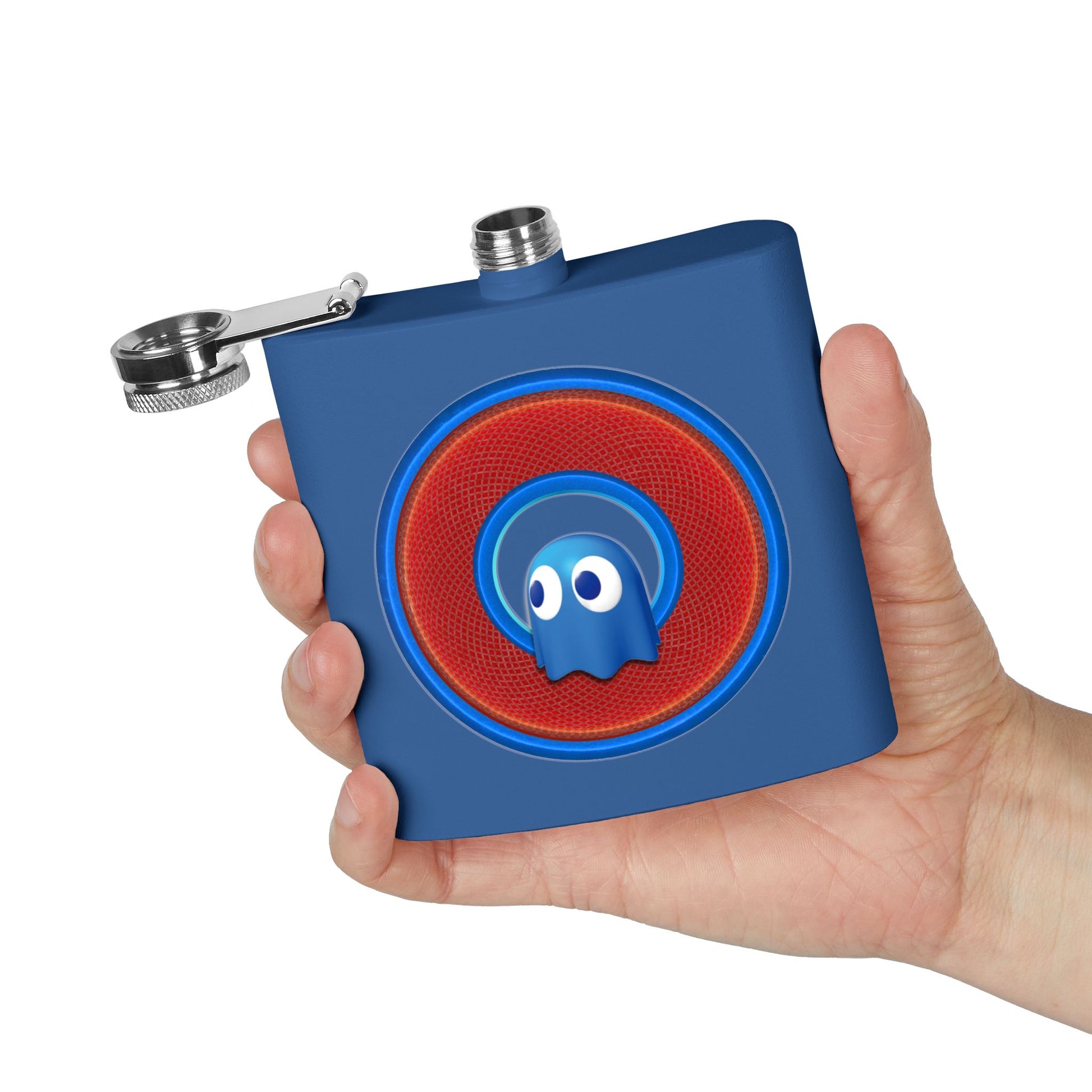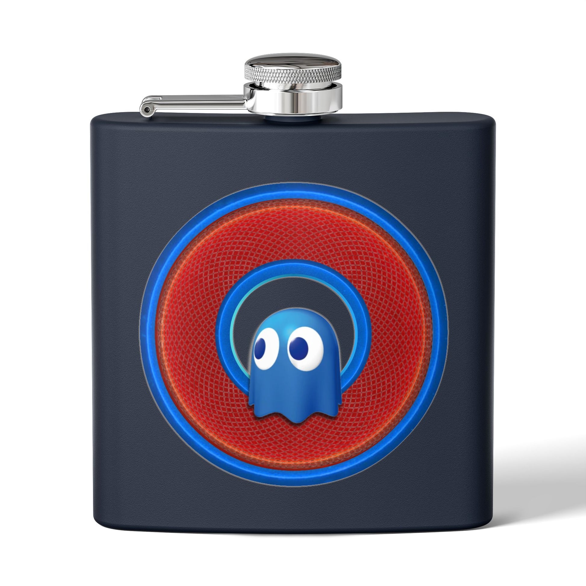 Lump's Donut Flask 6 oz - "The Storied Donut Flask" - variant 1 - red/blue rustic donut - [*w/your choice of 6 backgrounds]