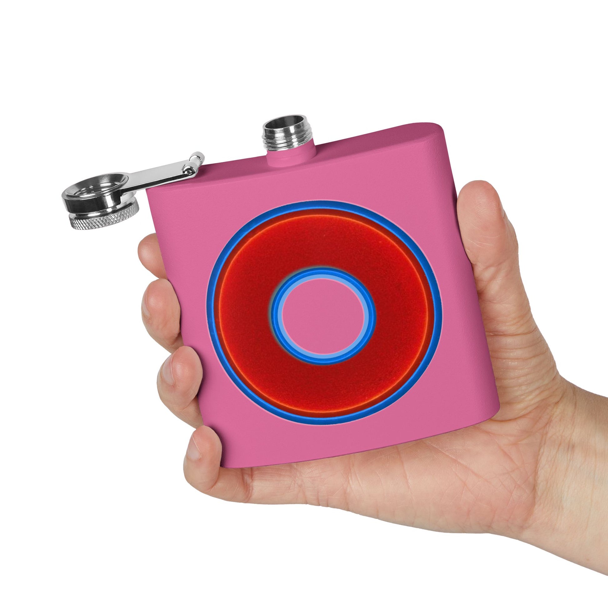 Lump's Donut Flask 6 oz - Vivid dark blue/red donut - [*w/your choice of 6 backgrounds]