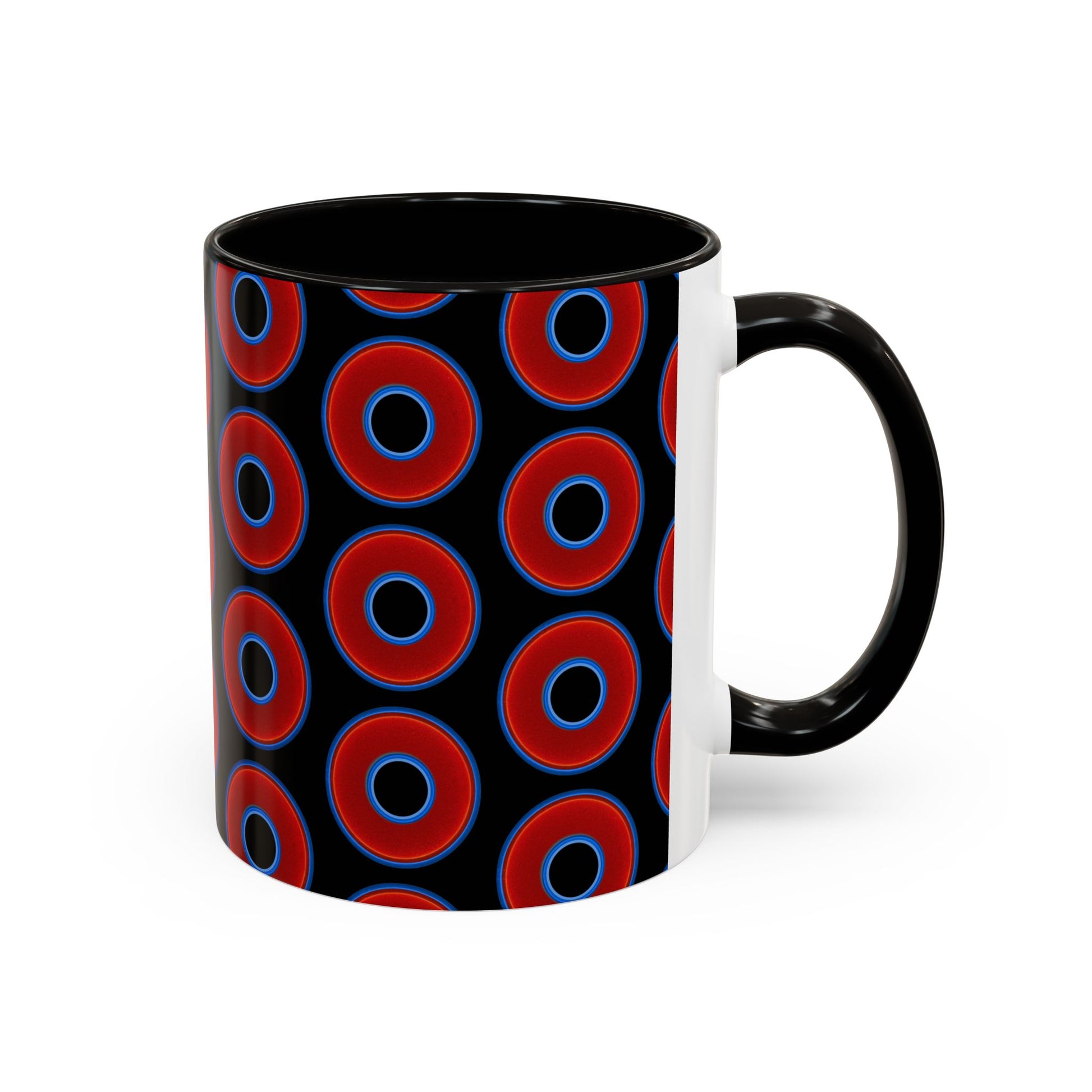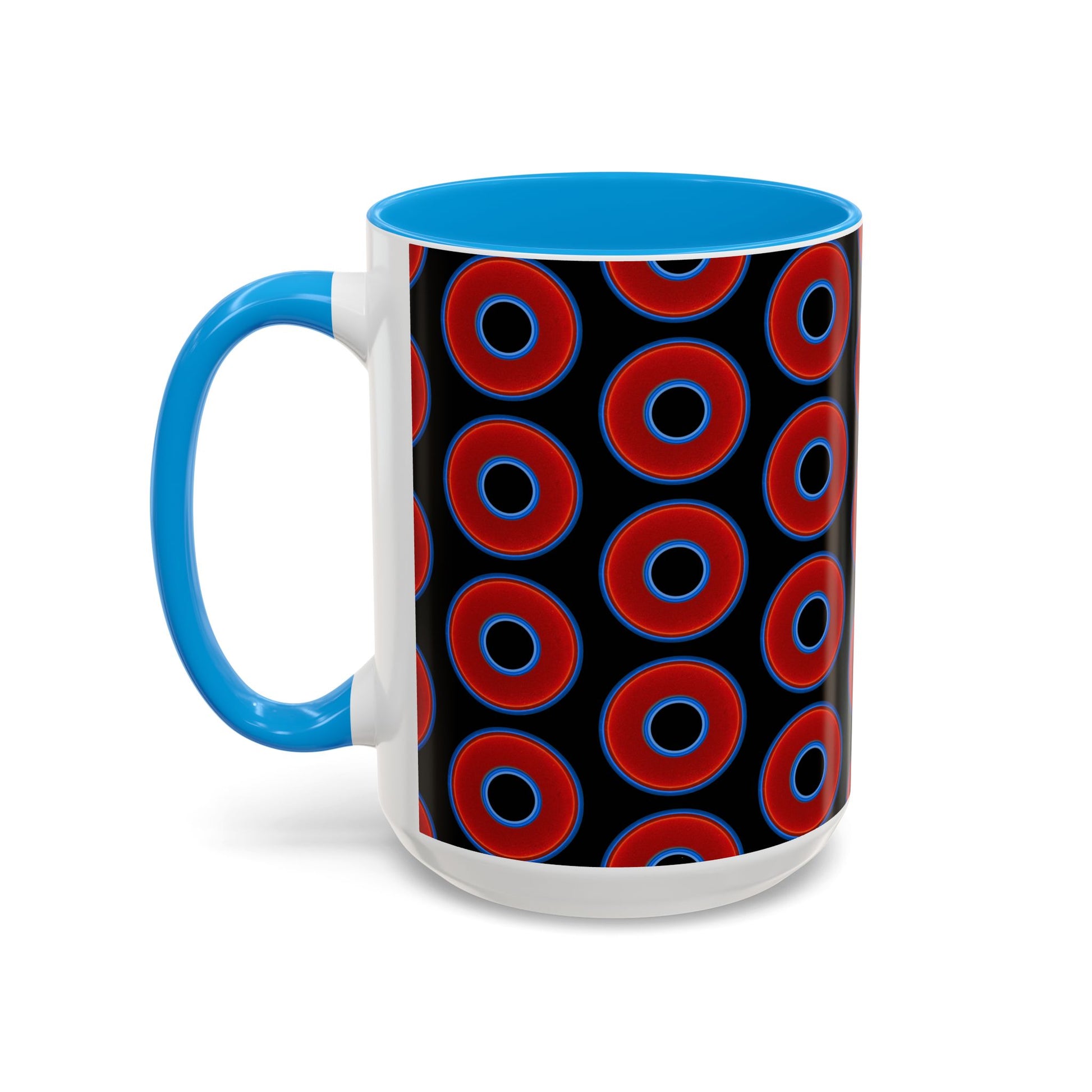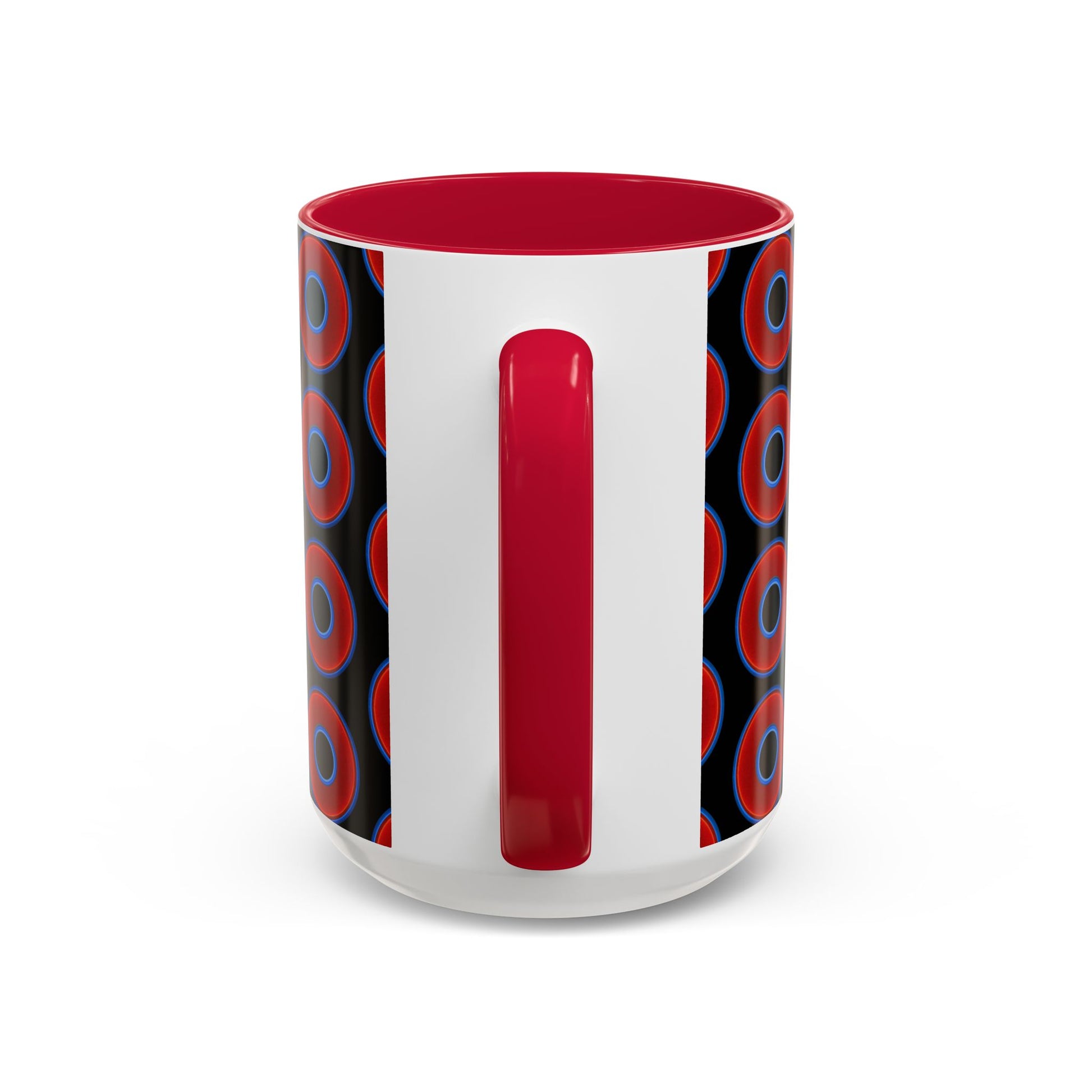 Lump's Grumpy Coffee Mug - vivid red donuts w/black background