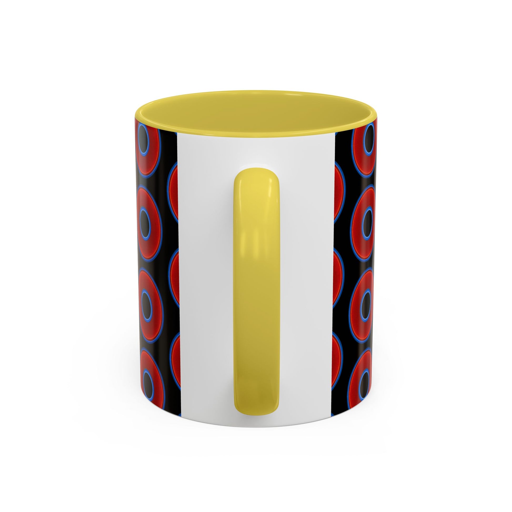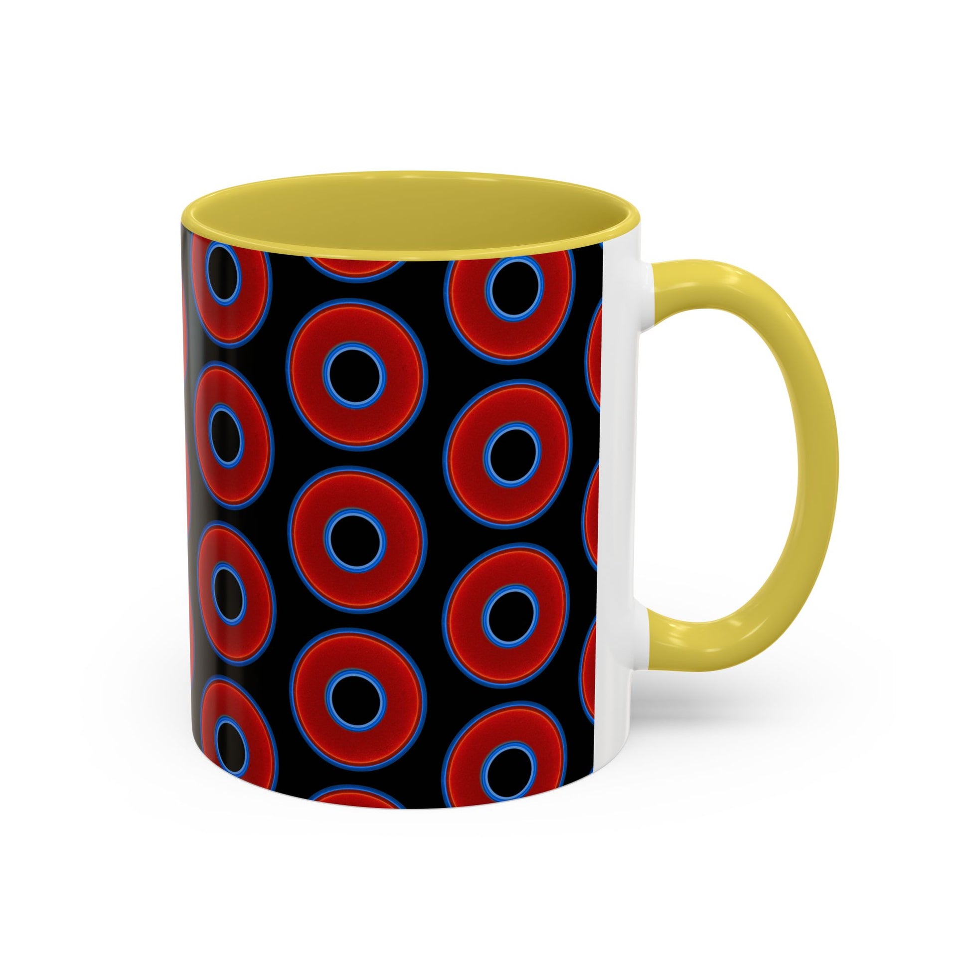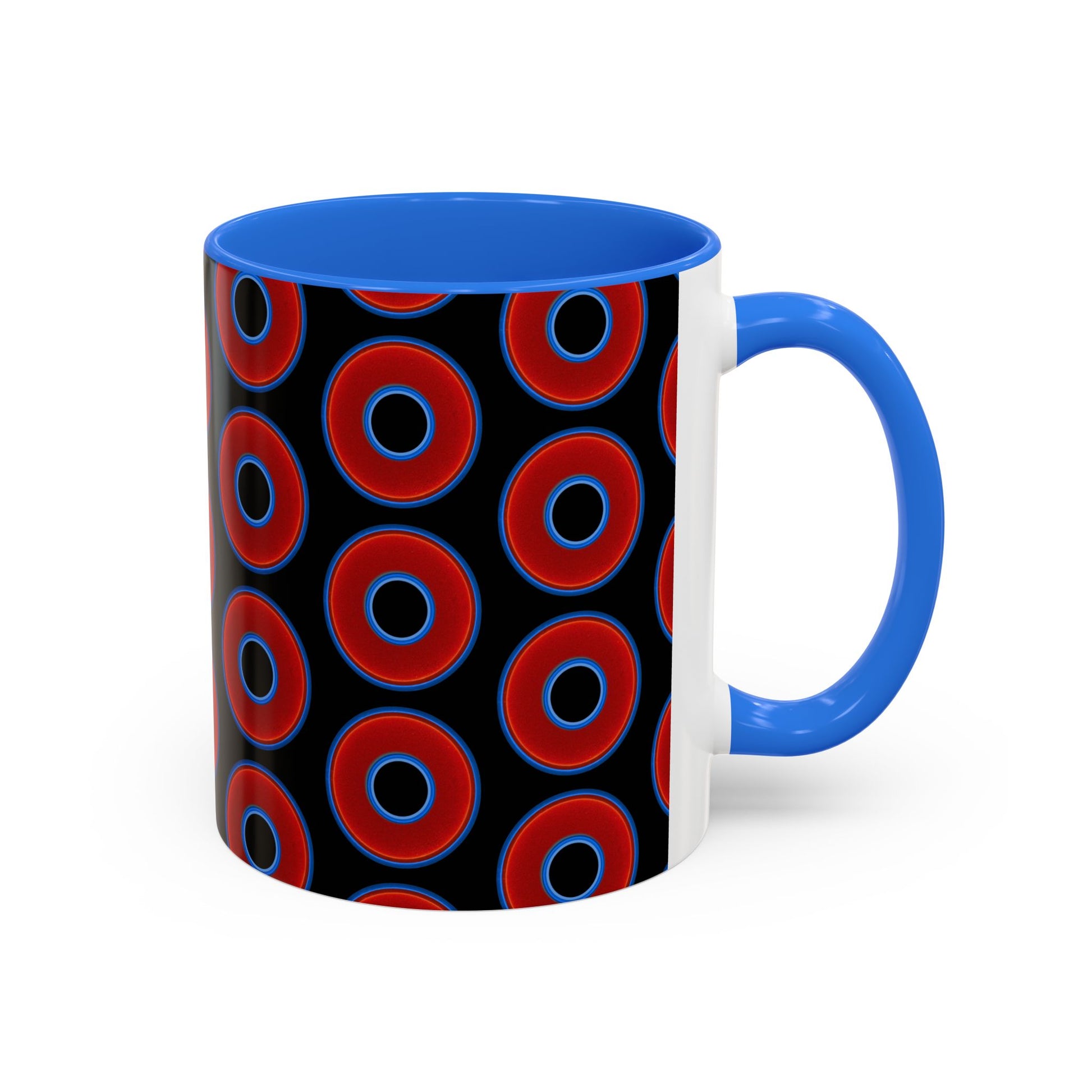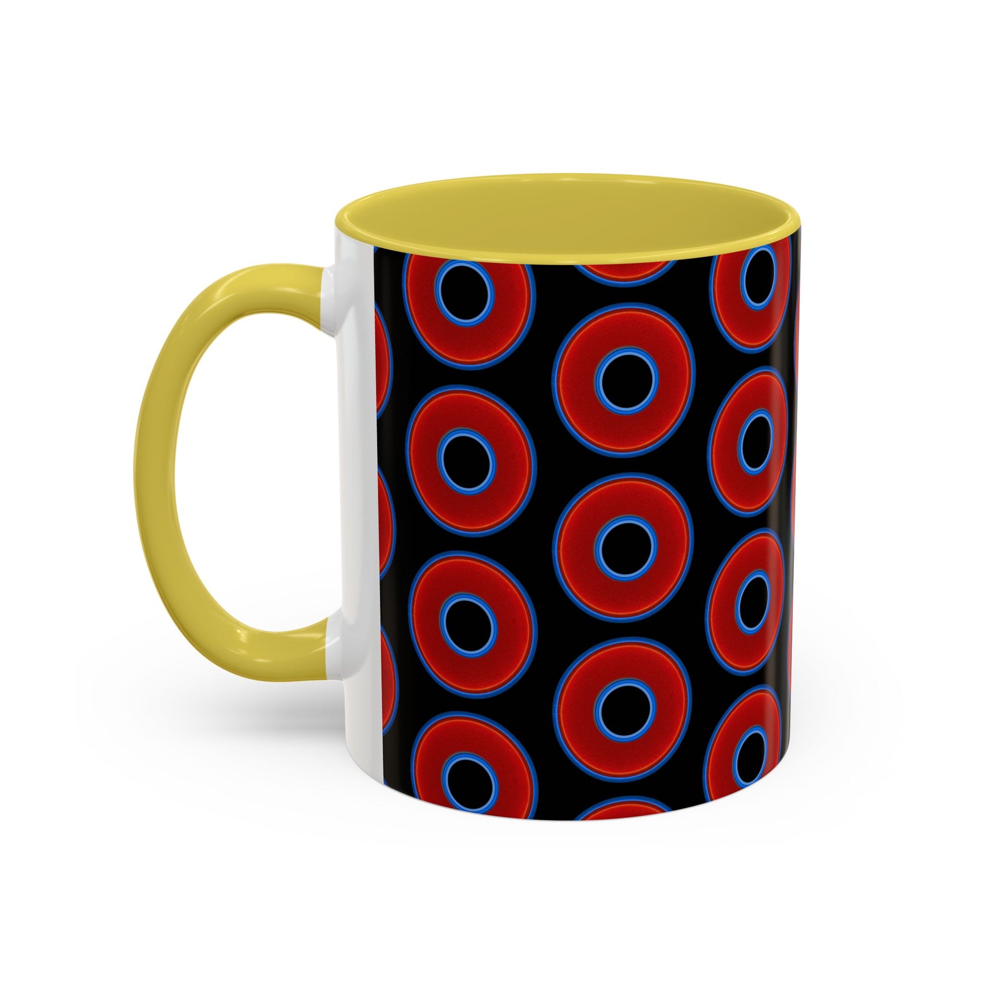 Lump's Grumpy Coffee Mug - vivid red donuts w/black background