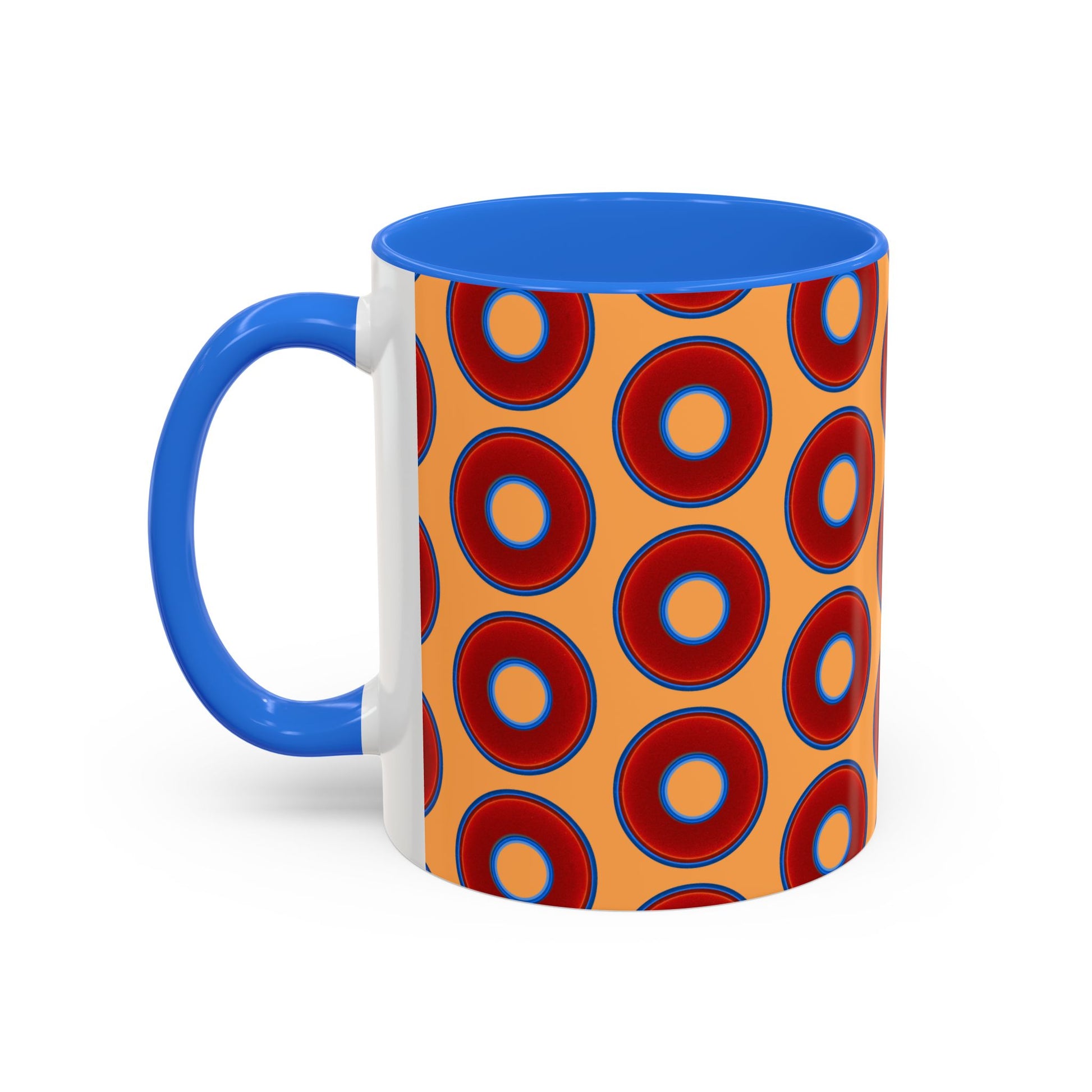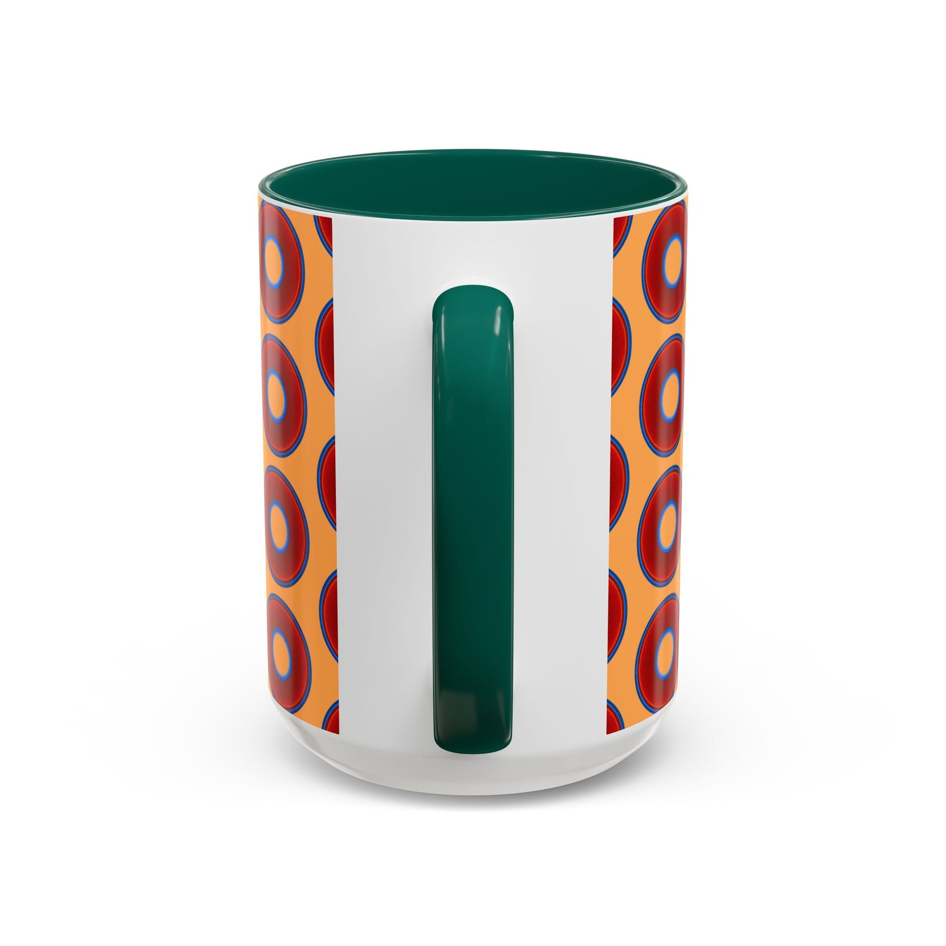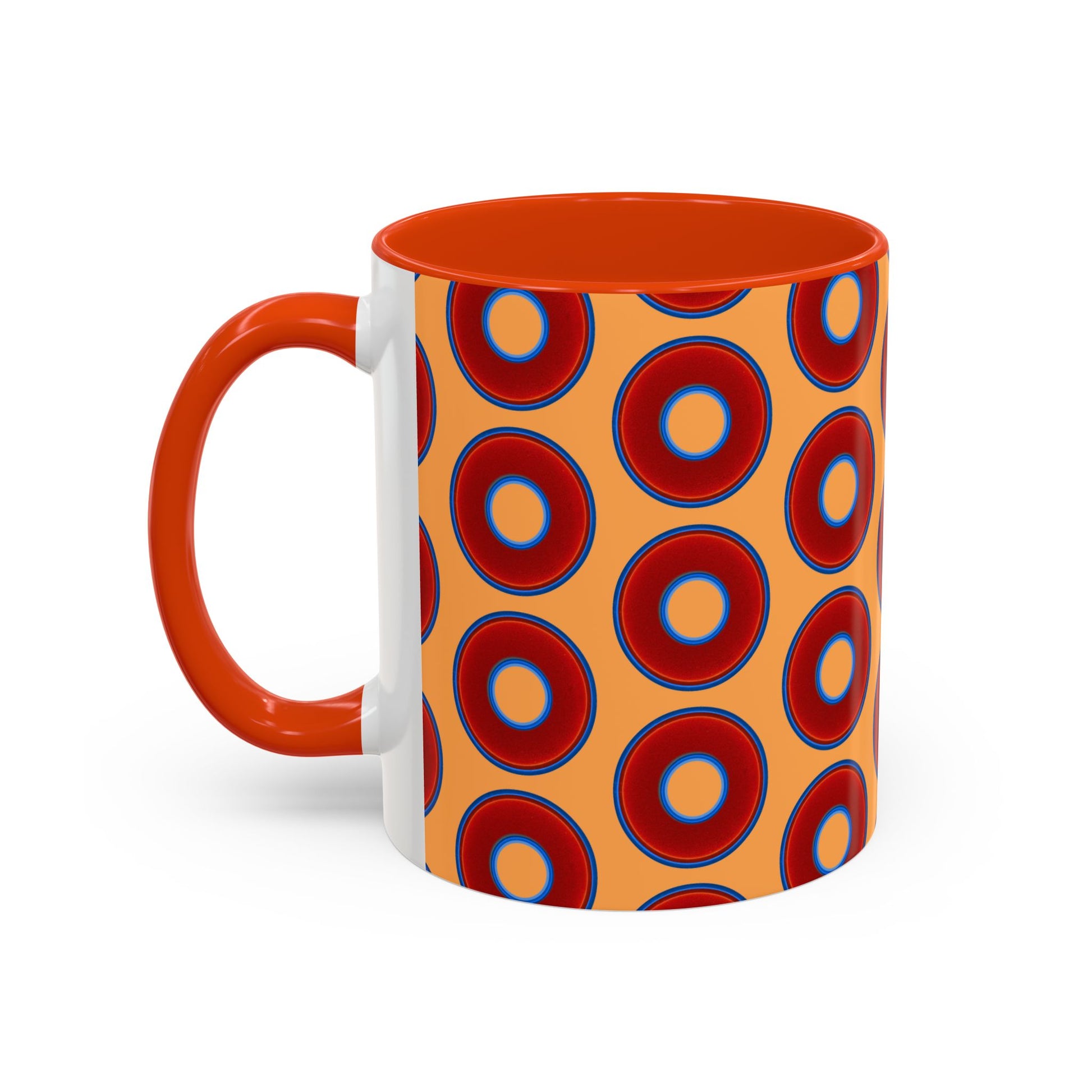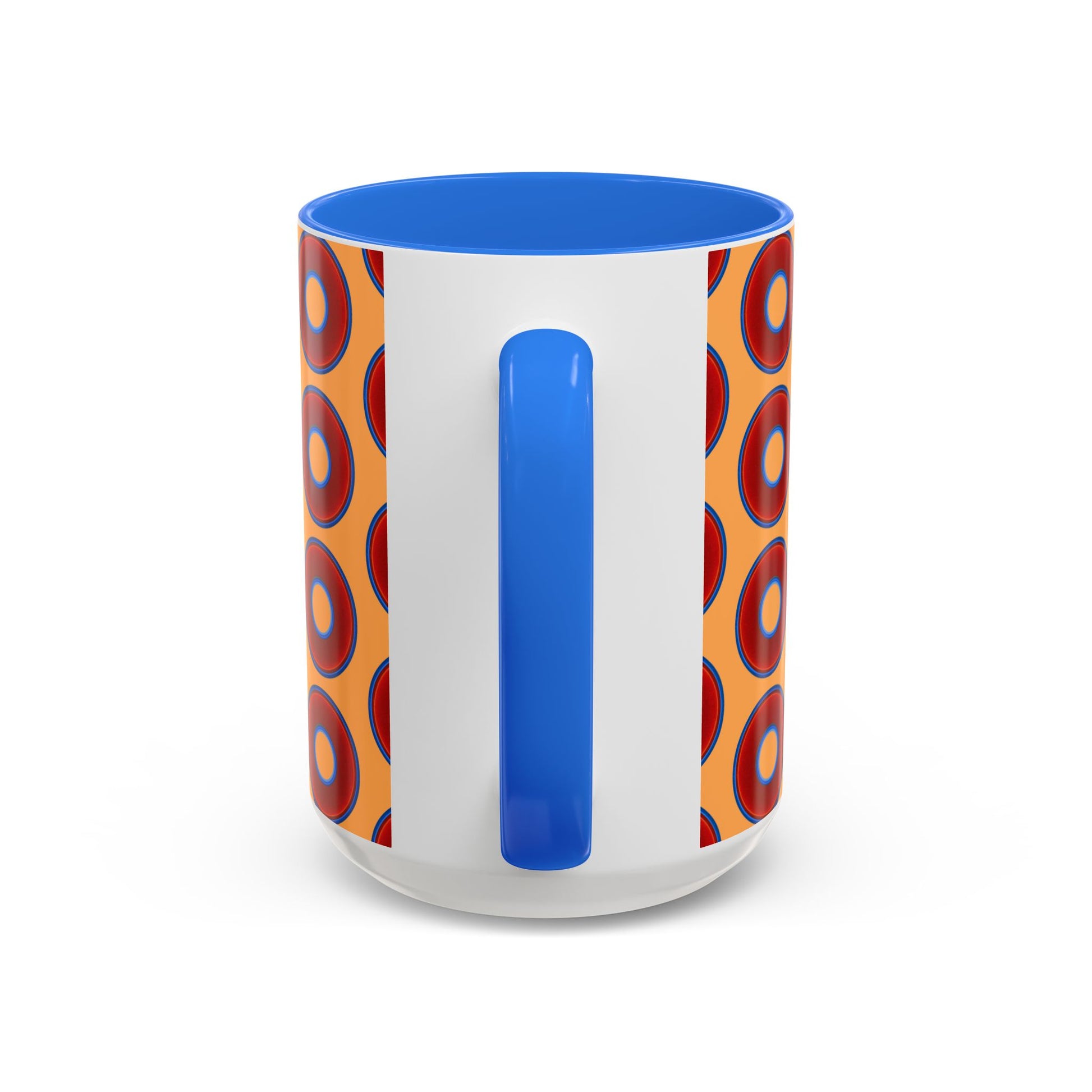 Lump's Grumpy Coffee Mug - vivid red donuts w/creamsicle orange background