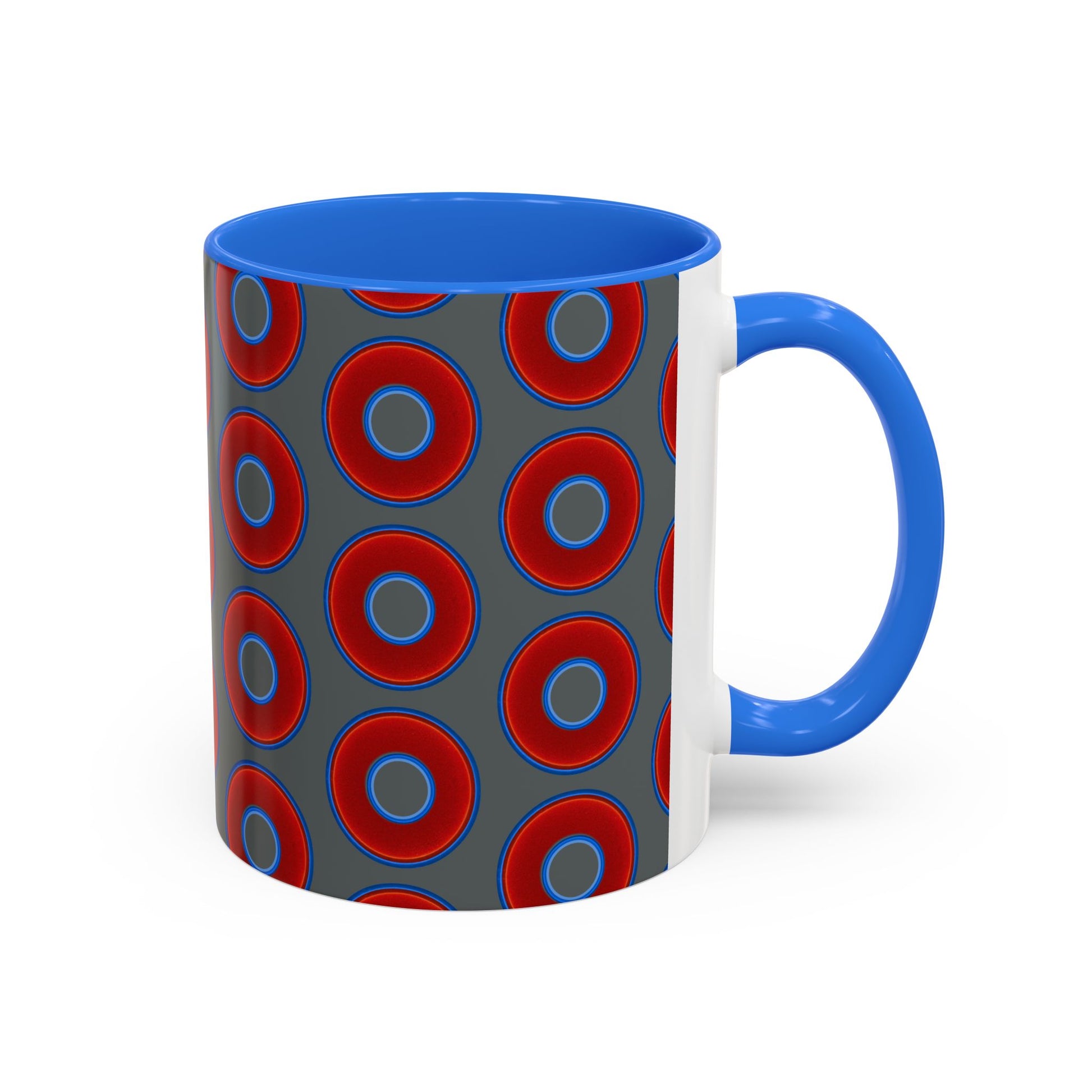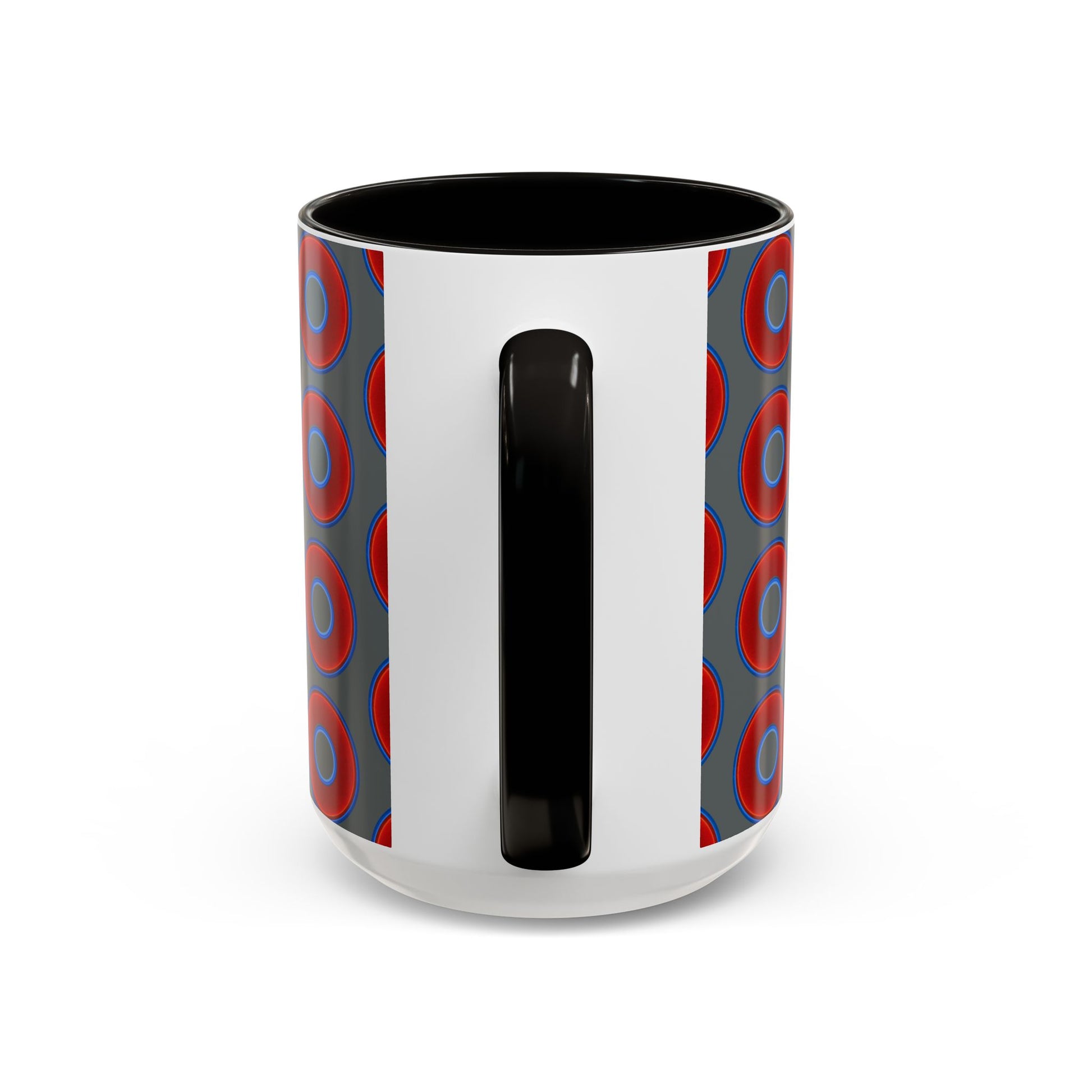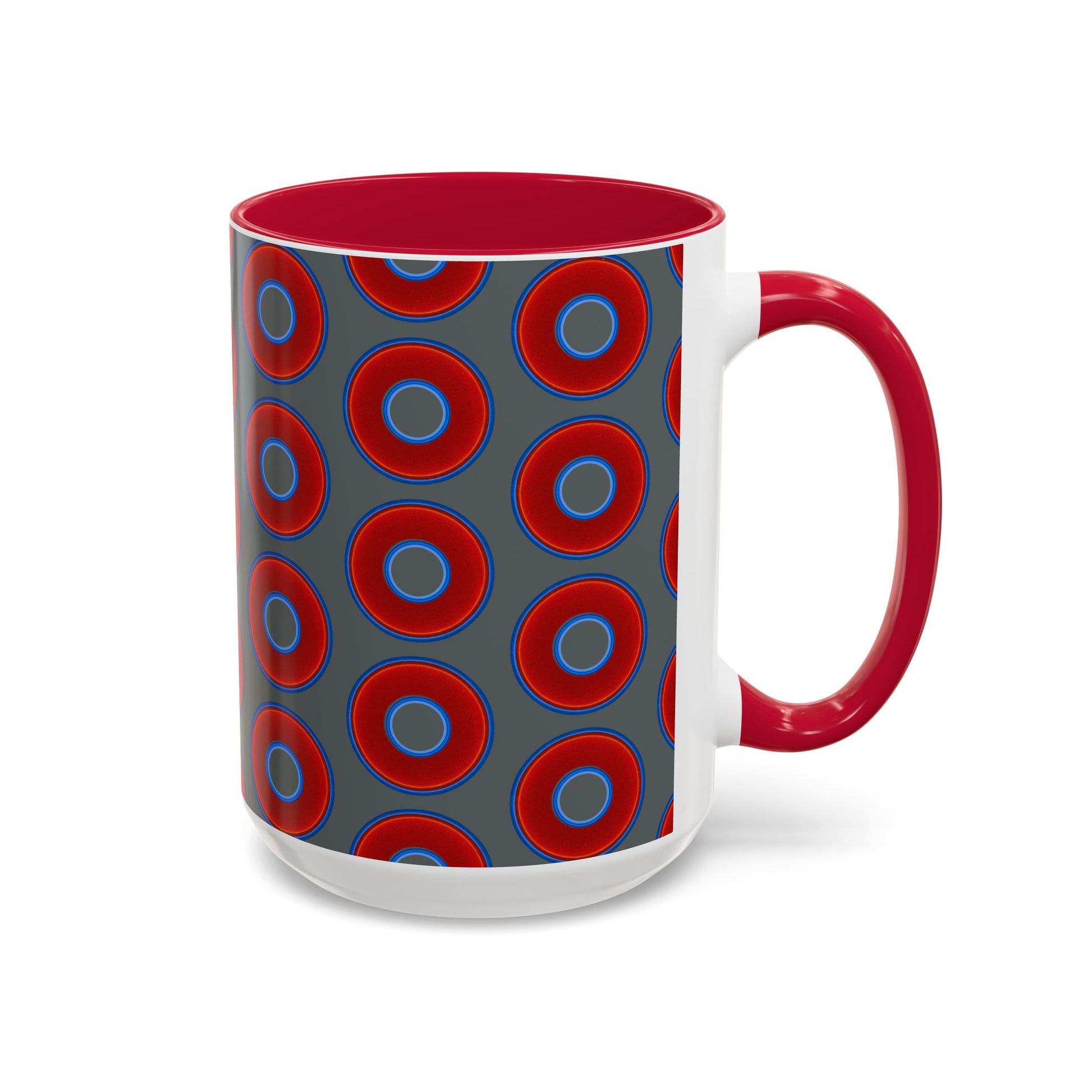Lump's Grumpy Coffee Mug - vivid red donuts w/dark gray background