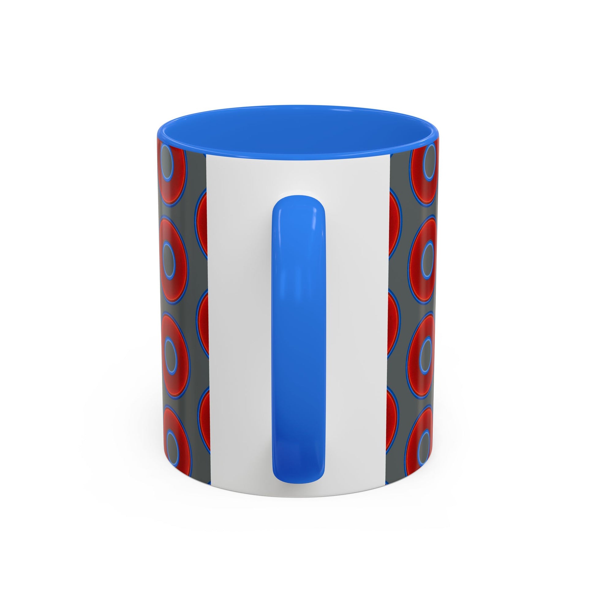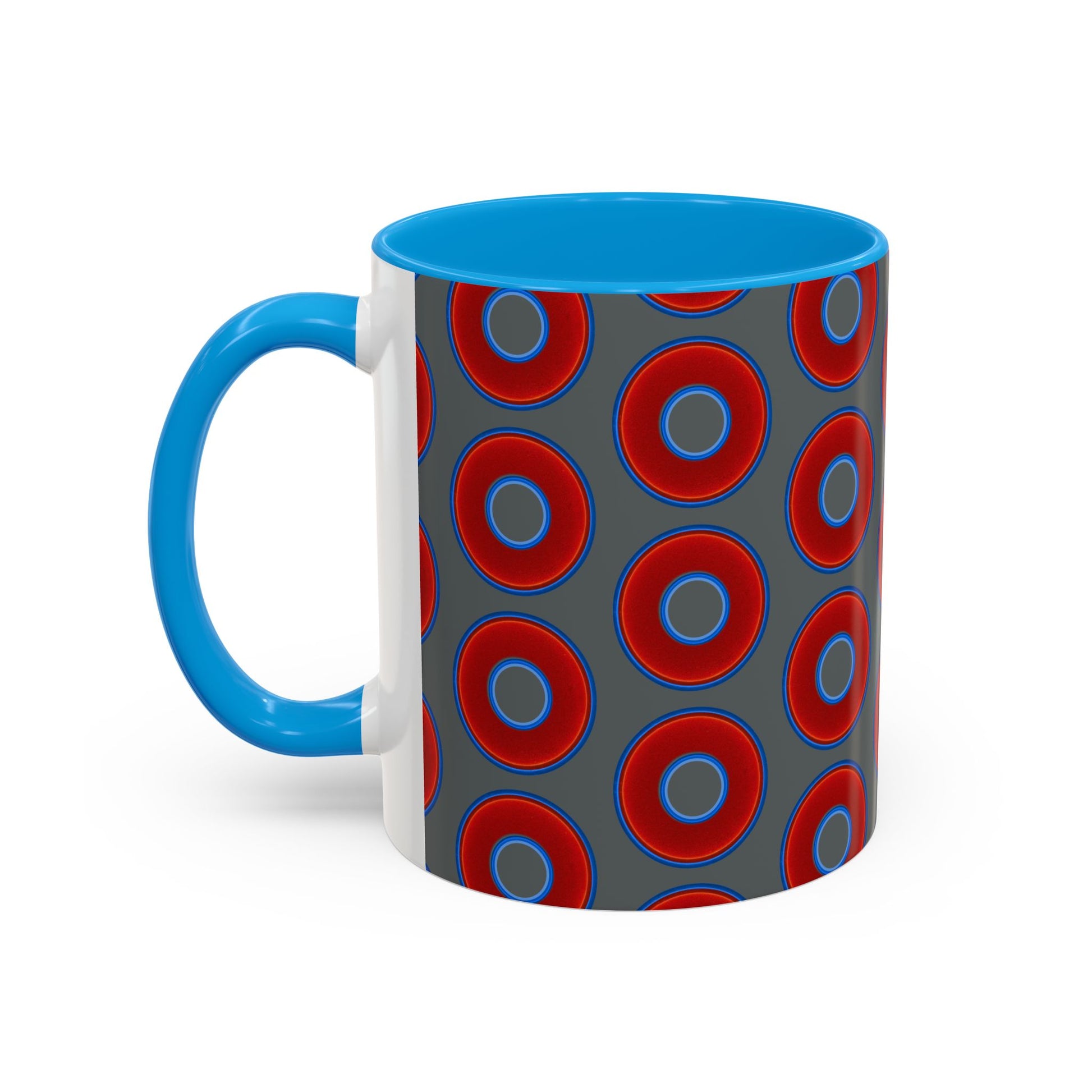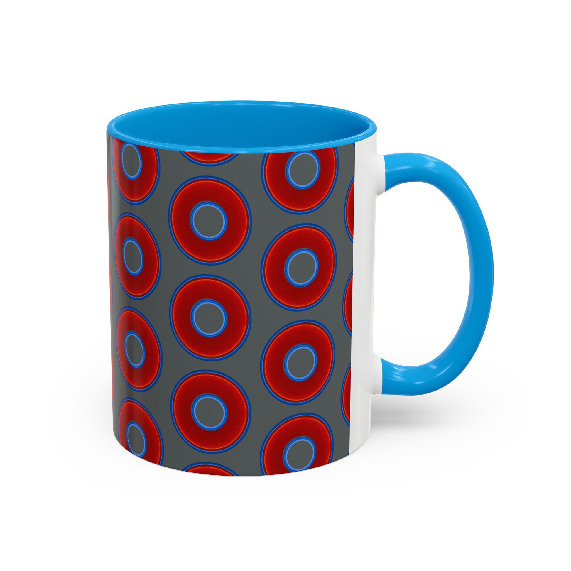 Lump's Grumpy Coffee Mug - vivid red donuts w/dark gray background