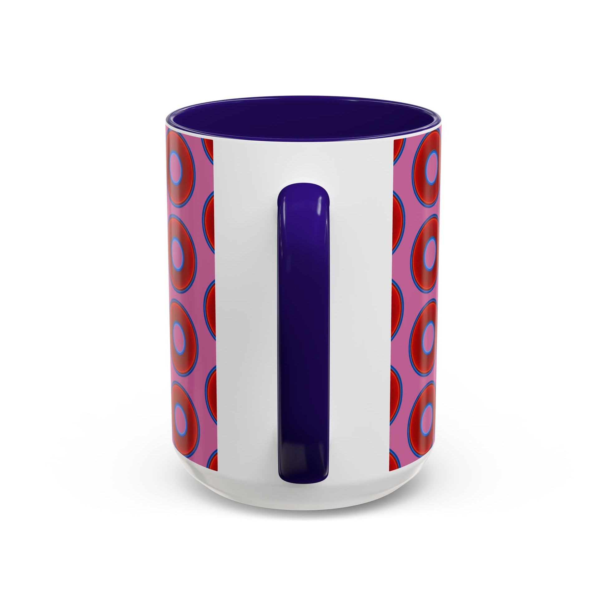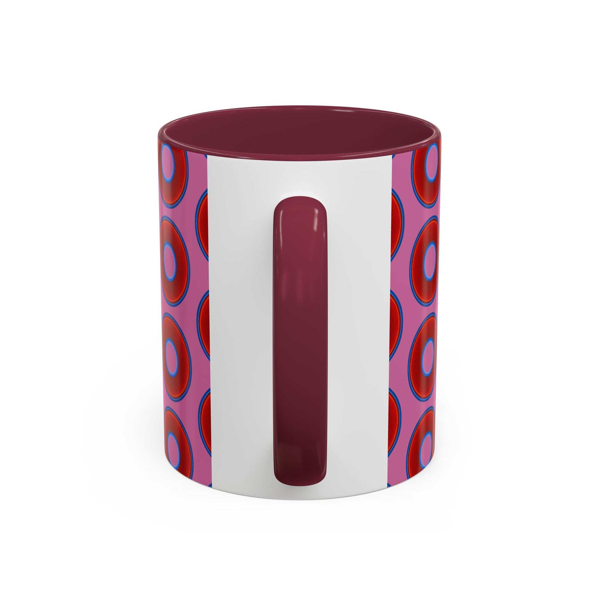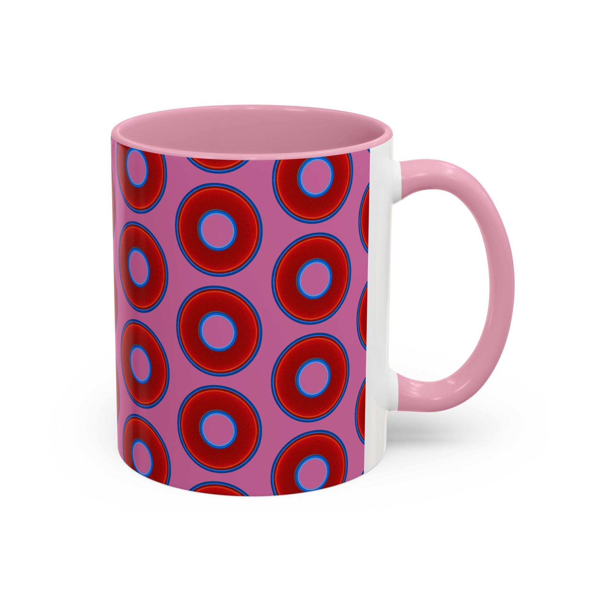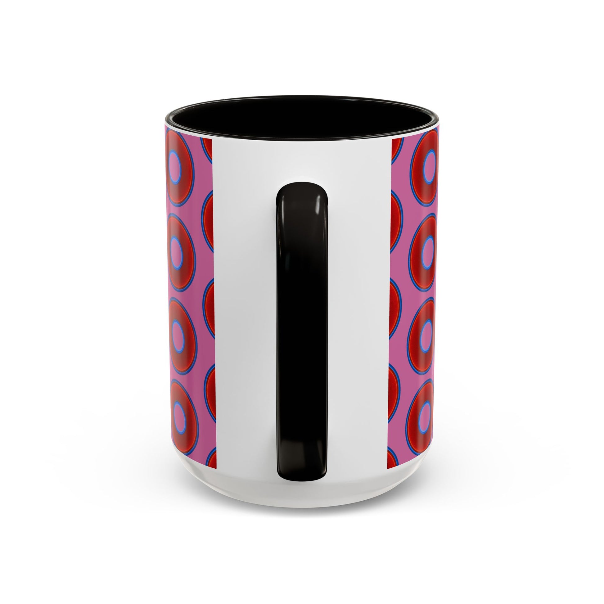 Lump's Grumpy Coffee Mug - vivid red donuts w/pink background