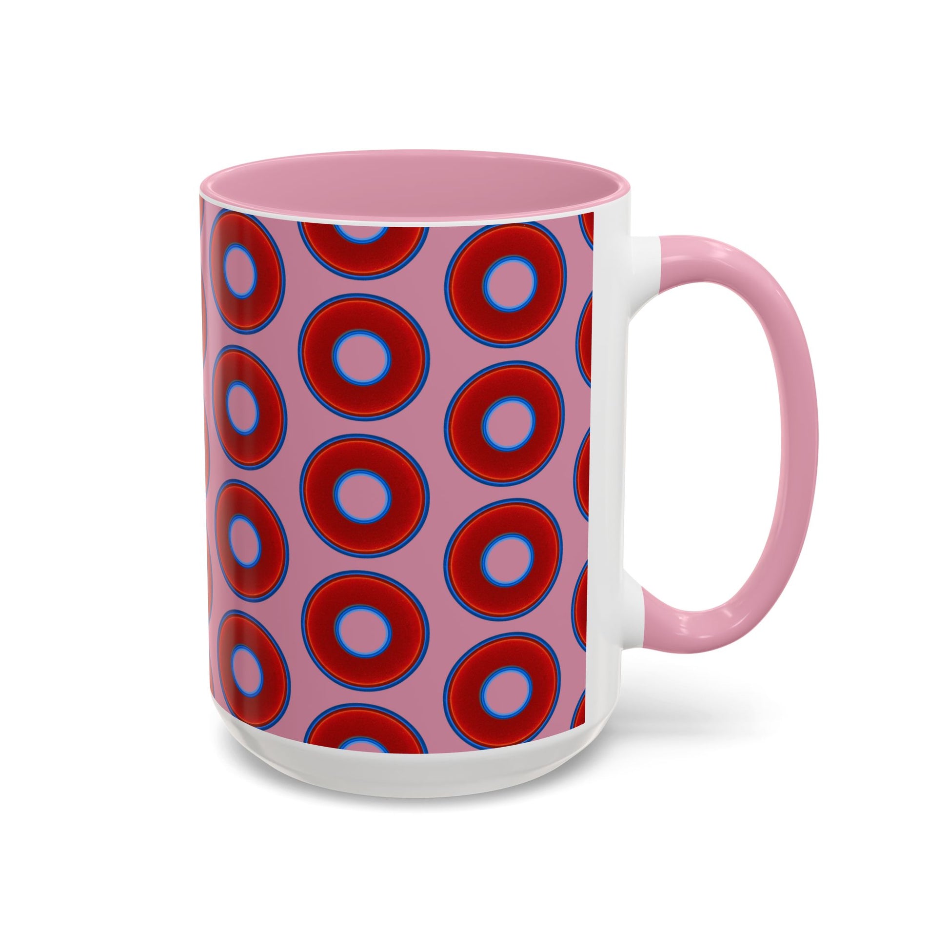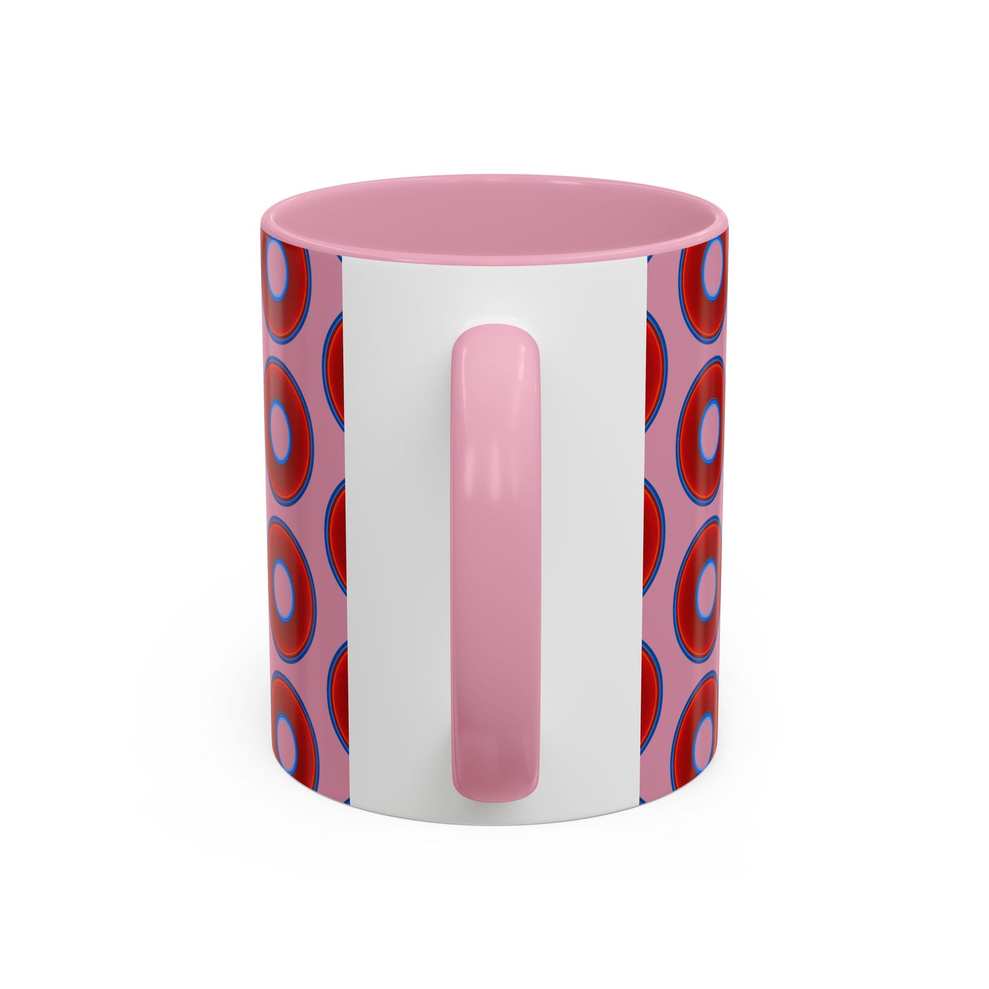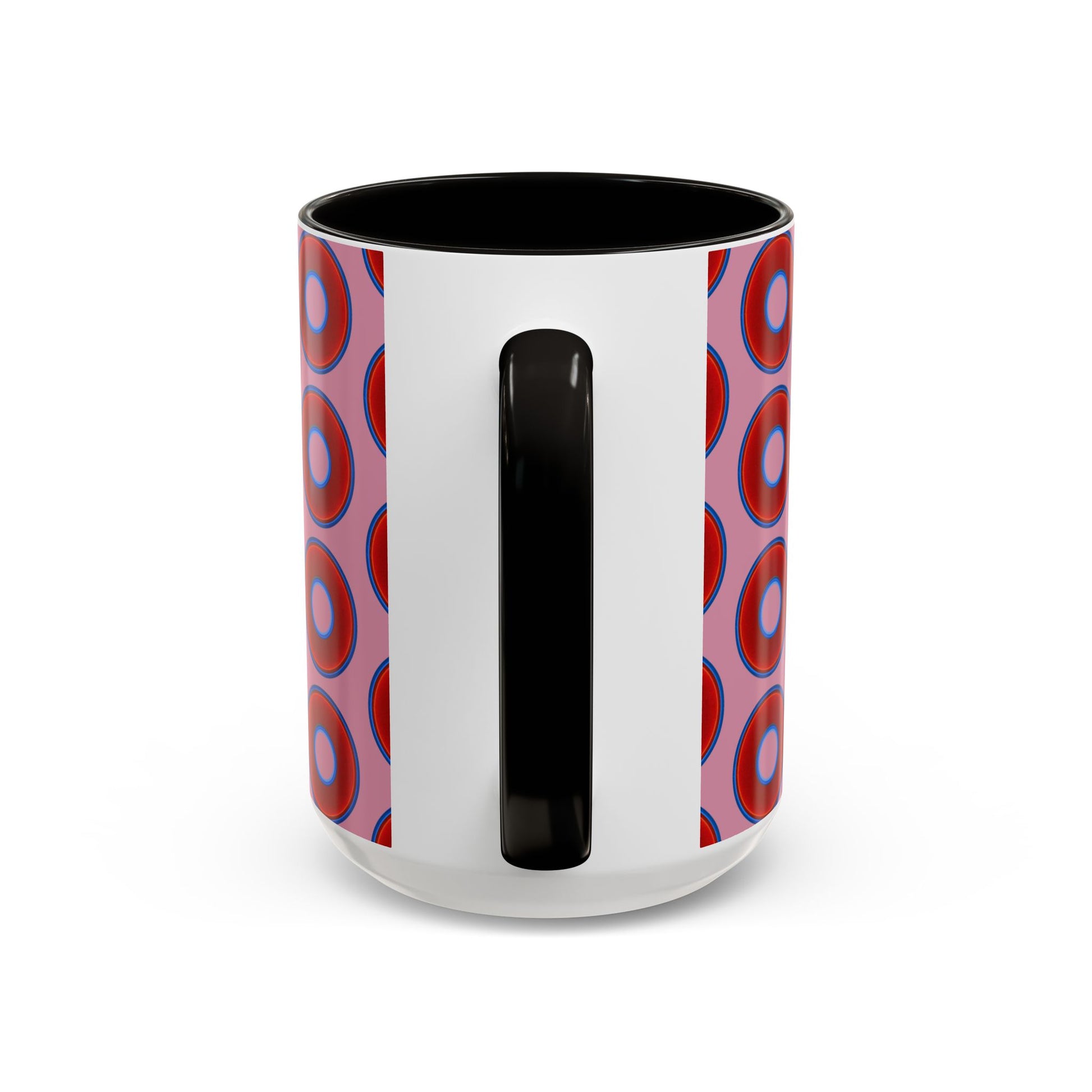 Lump's Grumpy Coffee Mug - vivid red donuts w/pink background