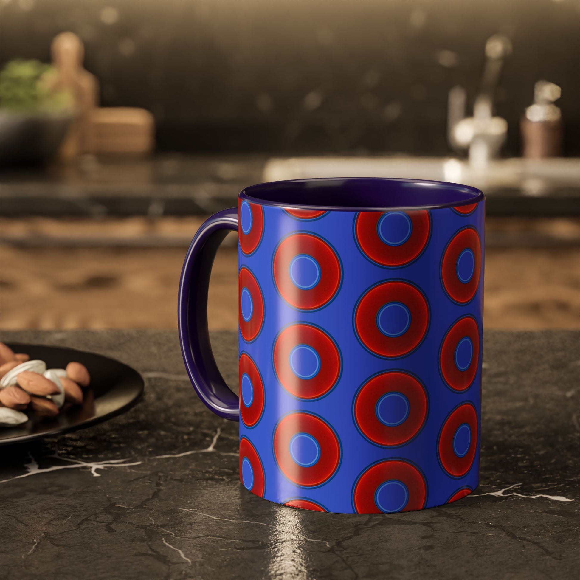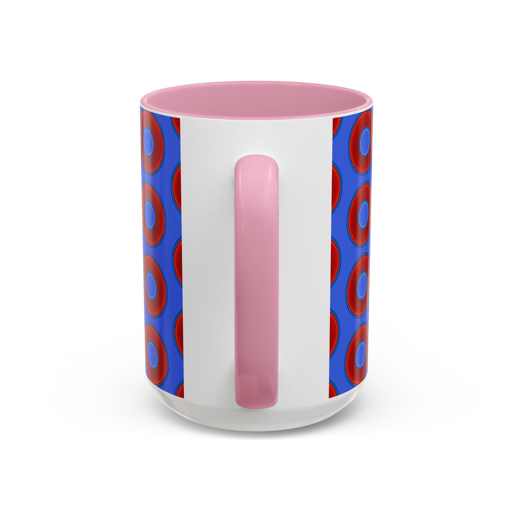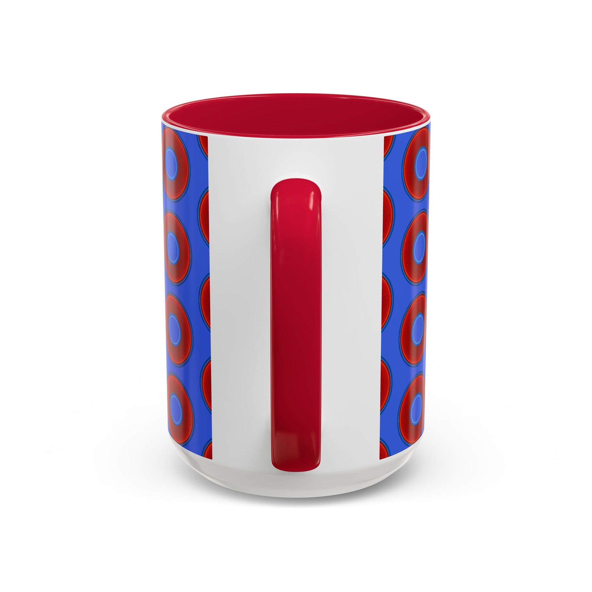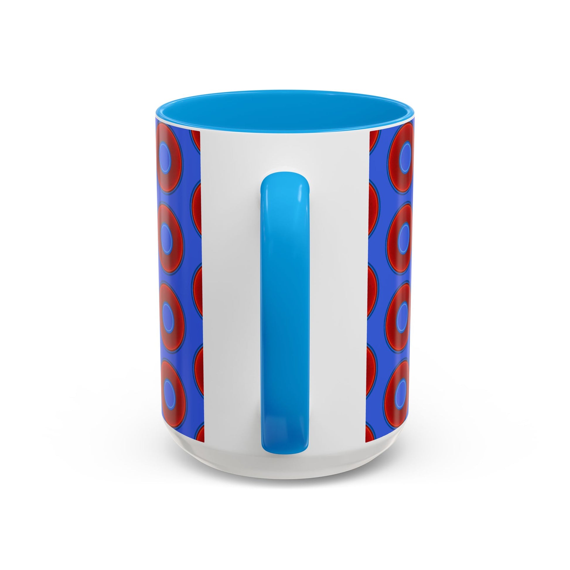 Lump's Grumpy Coffee Mug - vivid red donuts w/royal blue background