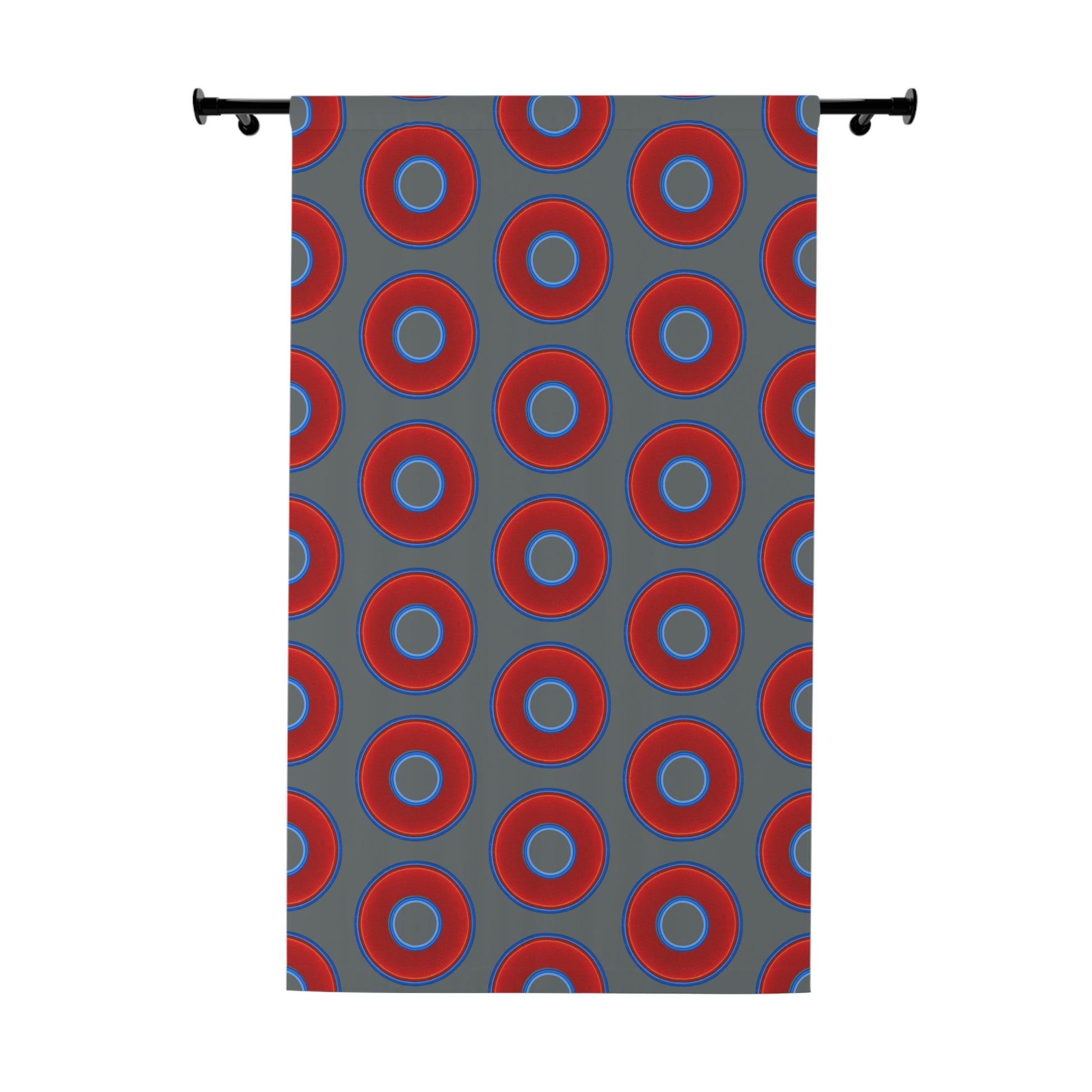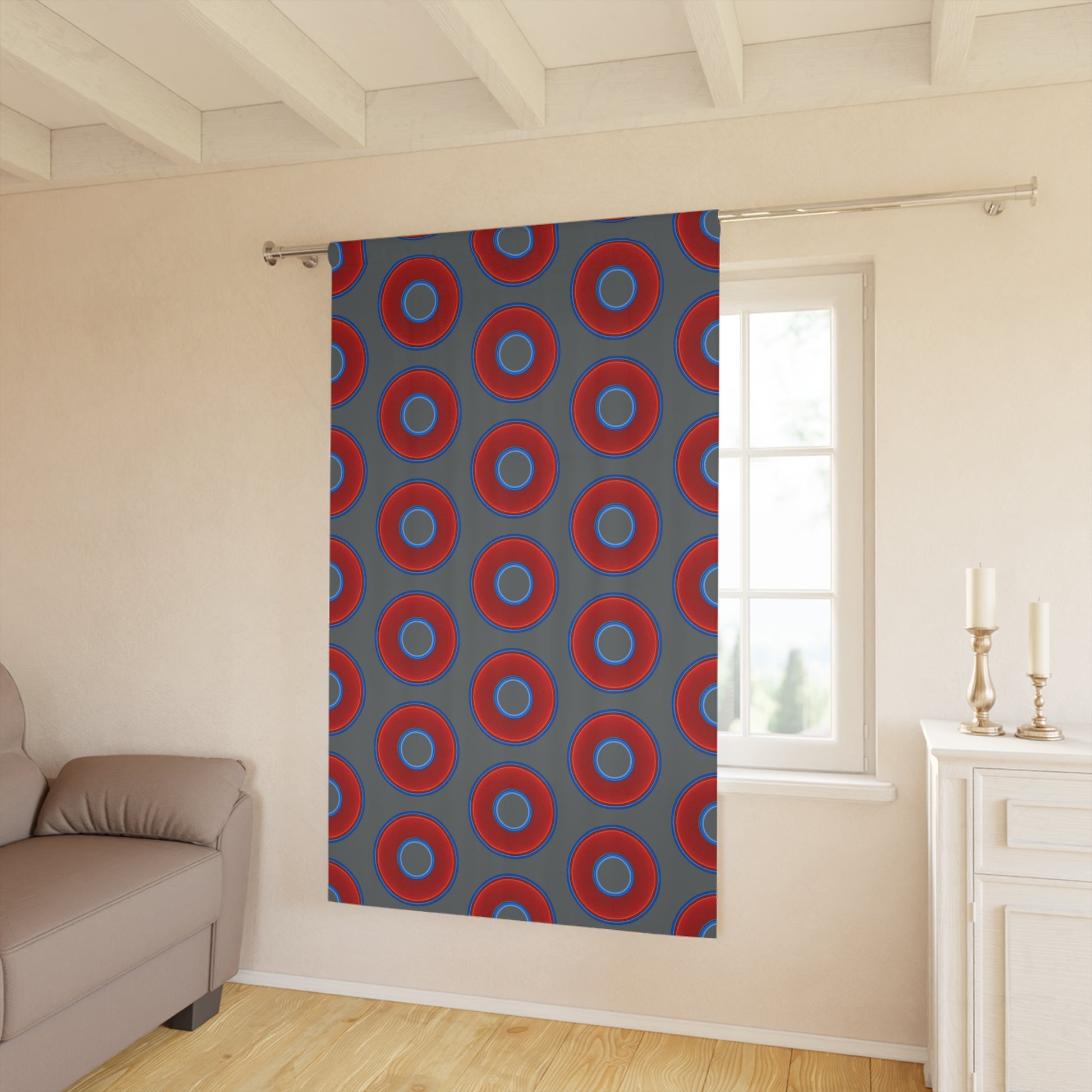 Lump's Heady Curtain w/Donuts - vivid red donut print - w/dark gray background - [*1 Piece / 50" x 84"]