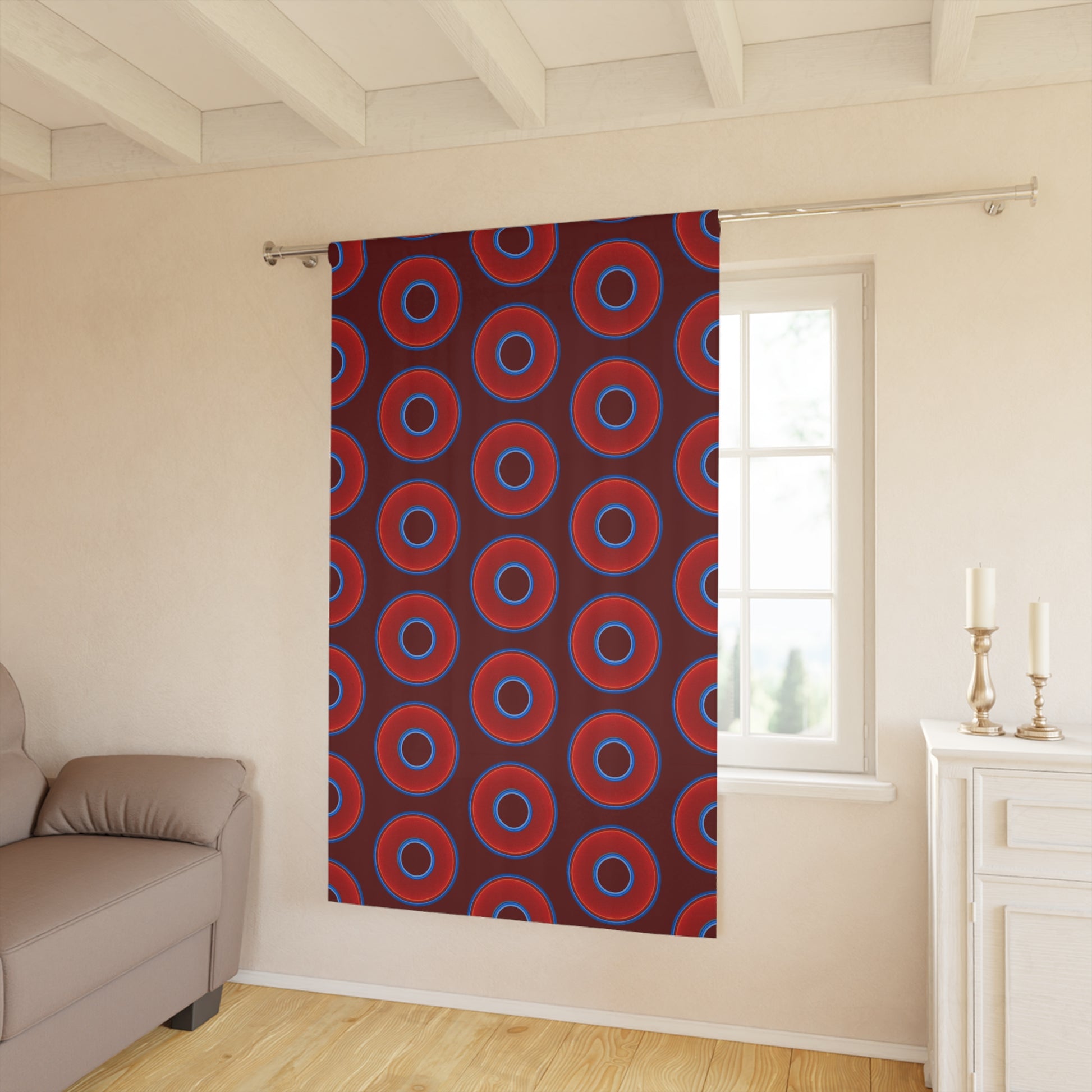 Lump's Heady Curtain w/Donuts - vivid red donut print - w/dark red background - [*1 Piece / 50" x 84"]