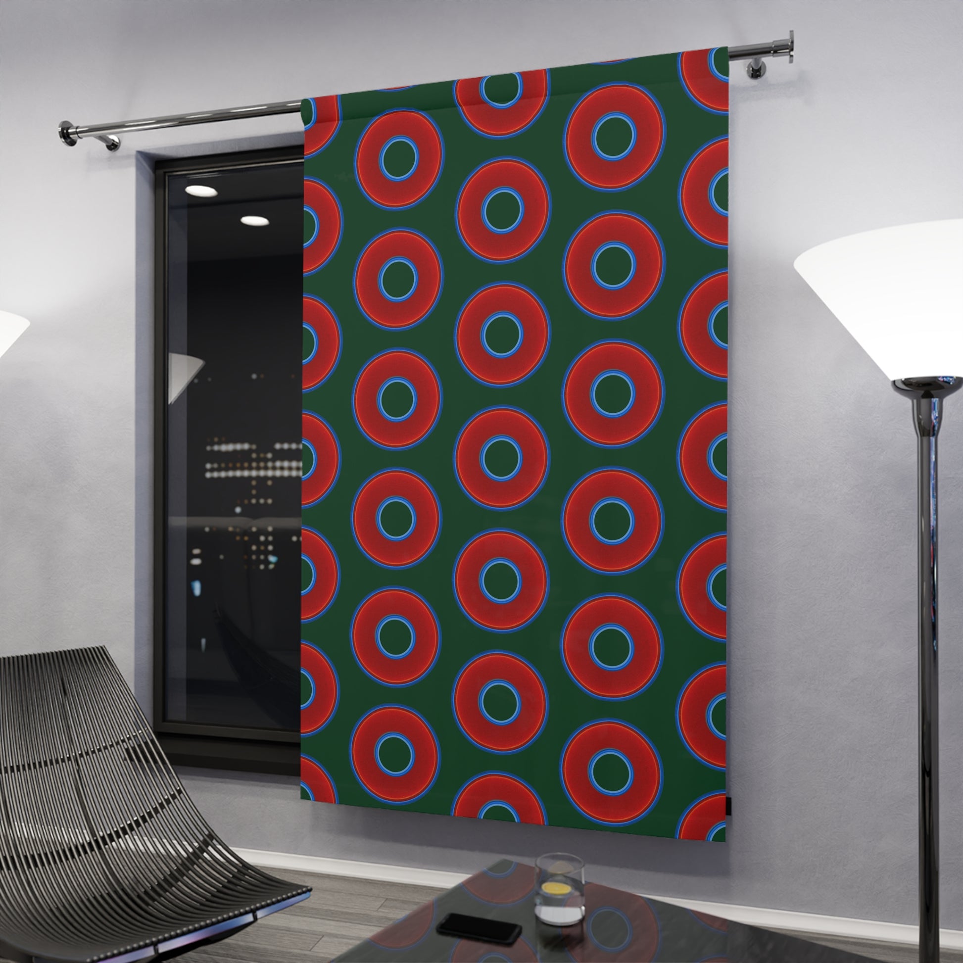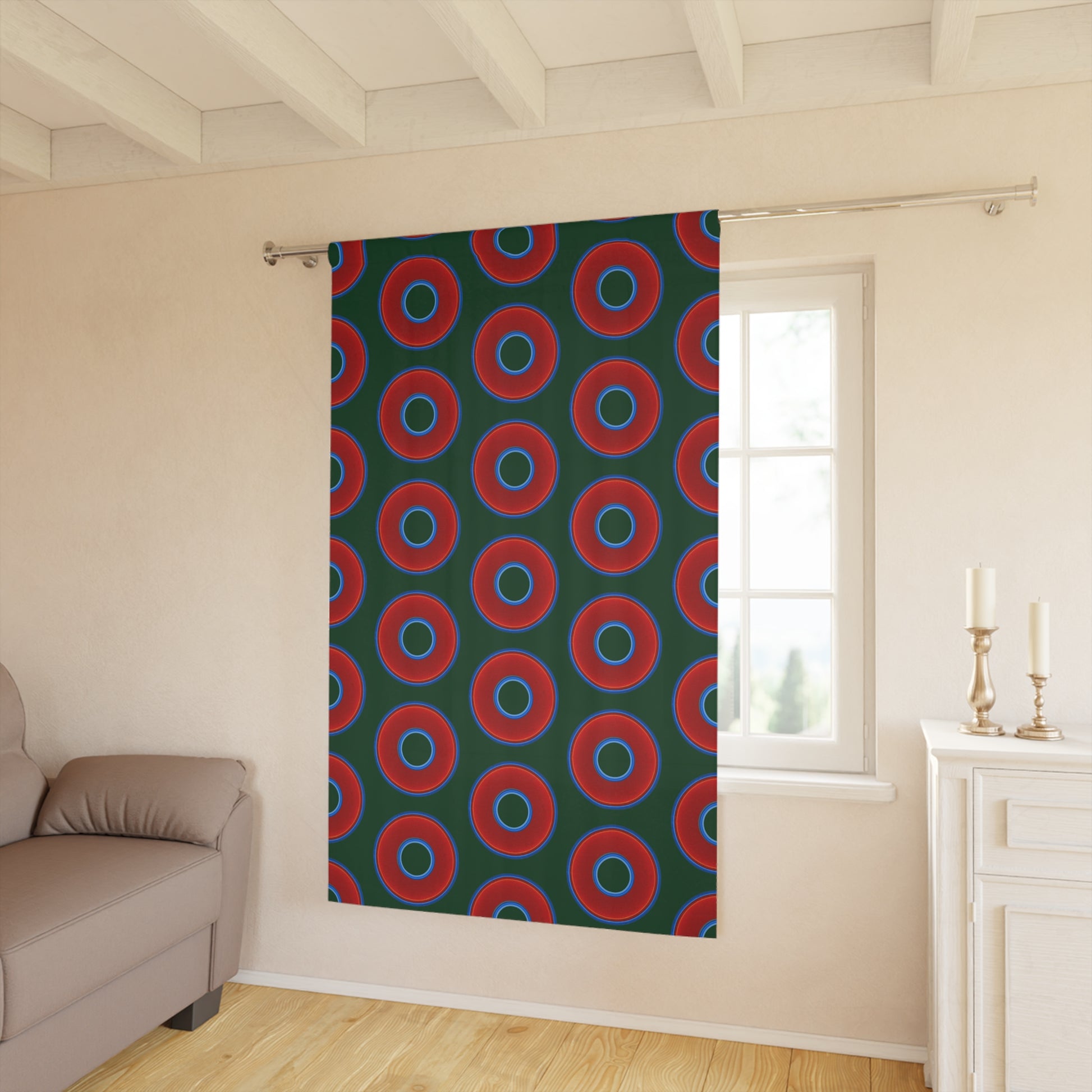Lump's Heady Curtain w/Donuts - vivid red donut print - w/deep pond green background - [*1 Piece / 50" x 84"]