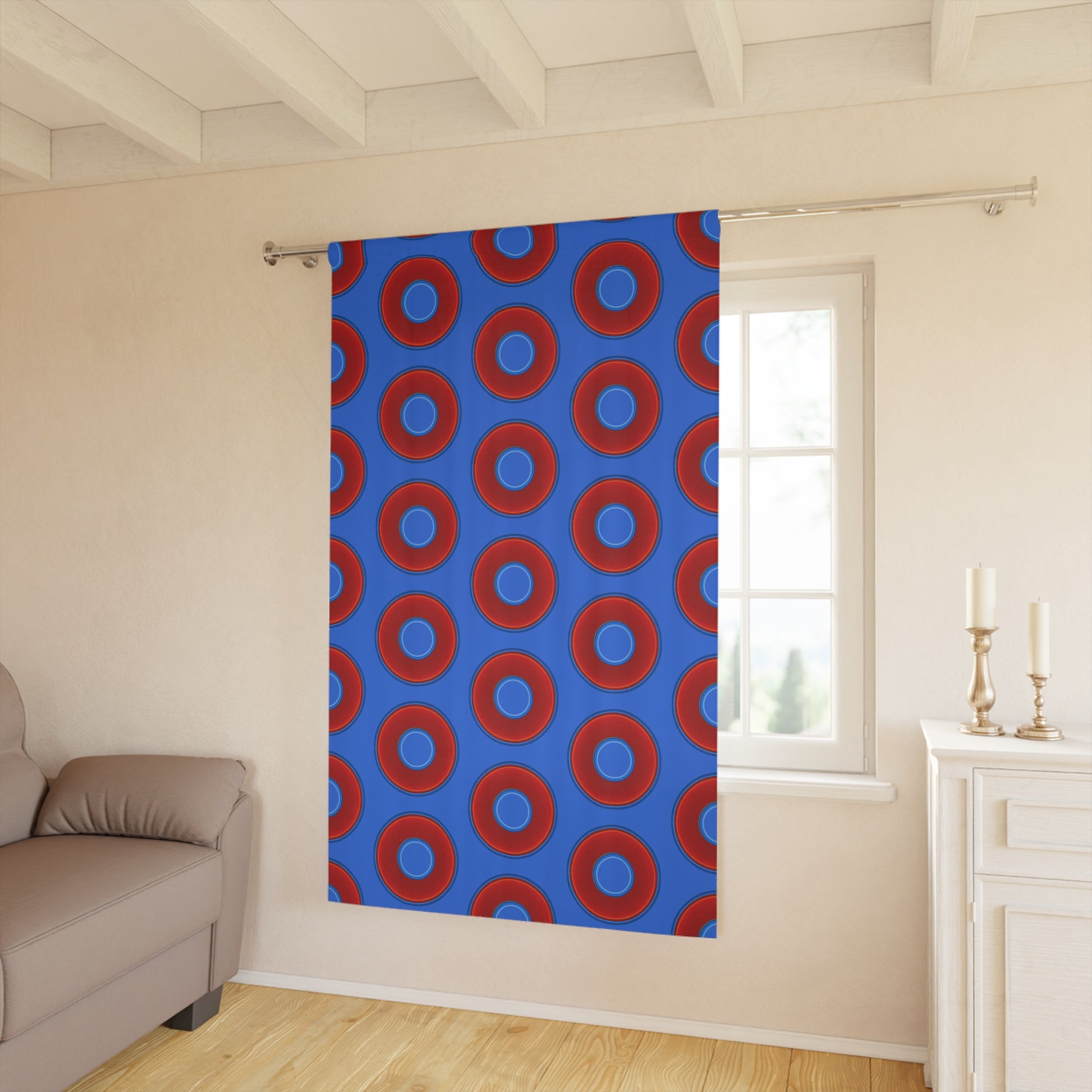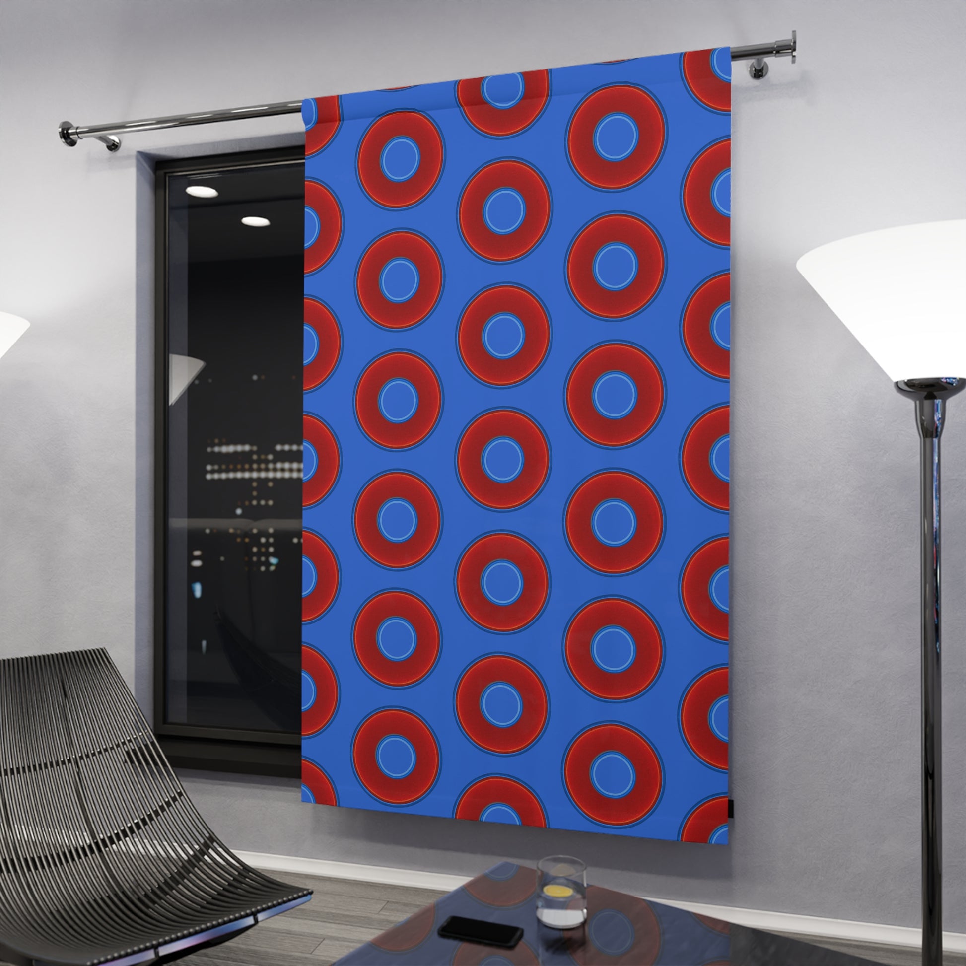 Lump's Heady Curtain w/Donuts - vivid red donut print - w/medium royal blue background - [*1 Piece / 50" x 84"]
