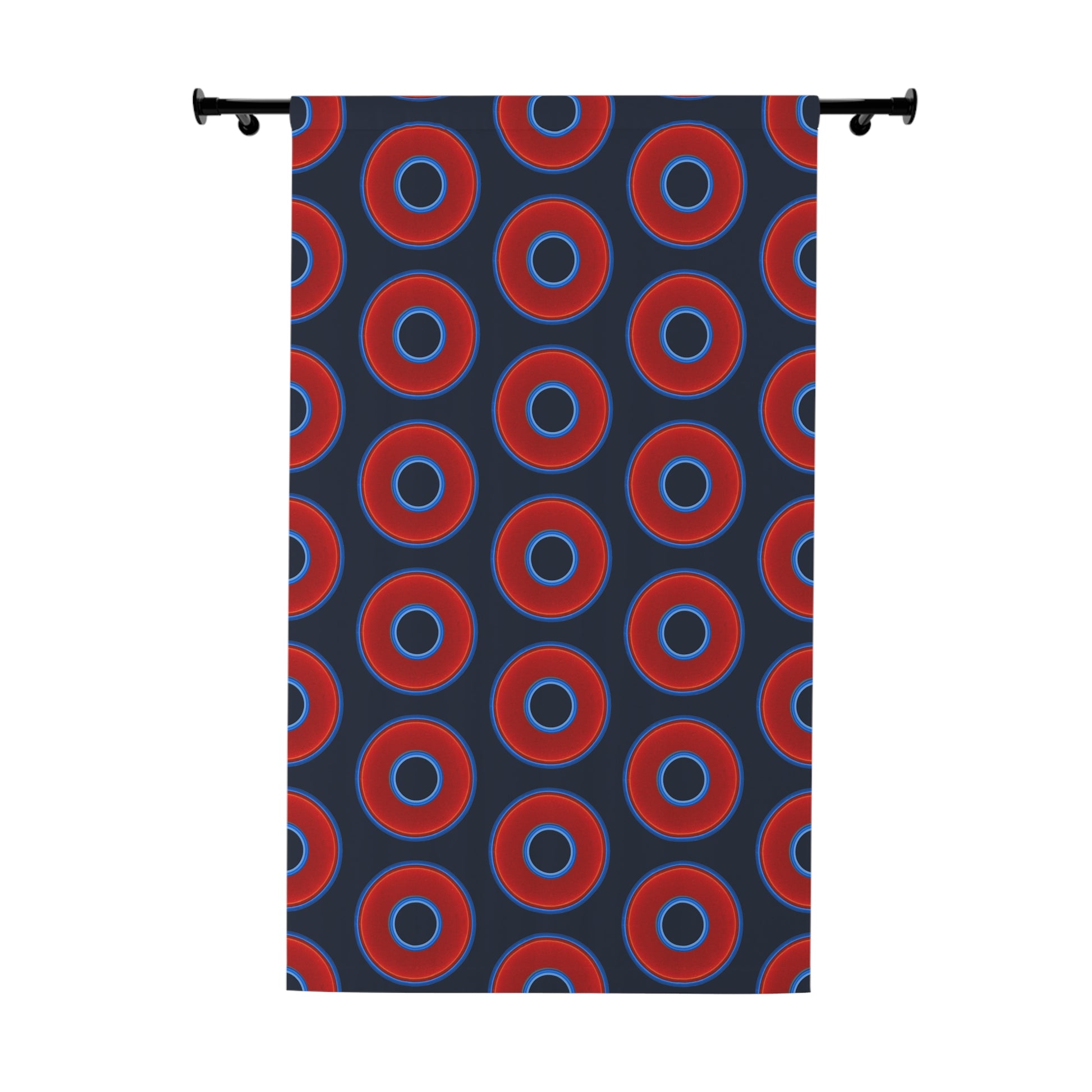 Lump's Heady Curtain w/Donuts - vivid red donut print - w/midnight teal blue background - [*1 Piece / 50" x 84"]