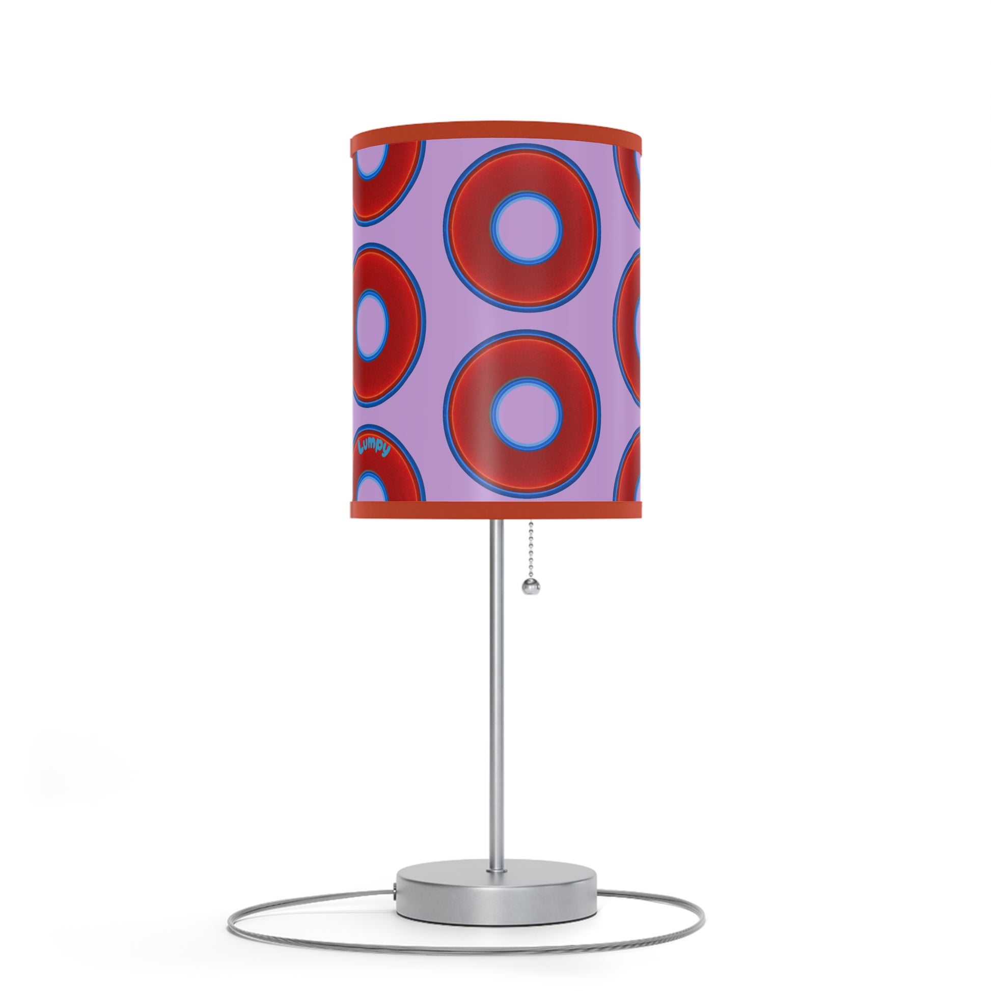 Lumpy Accent Lamps - red vivid donuts w/wisteria purple background