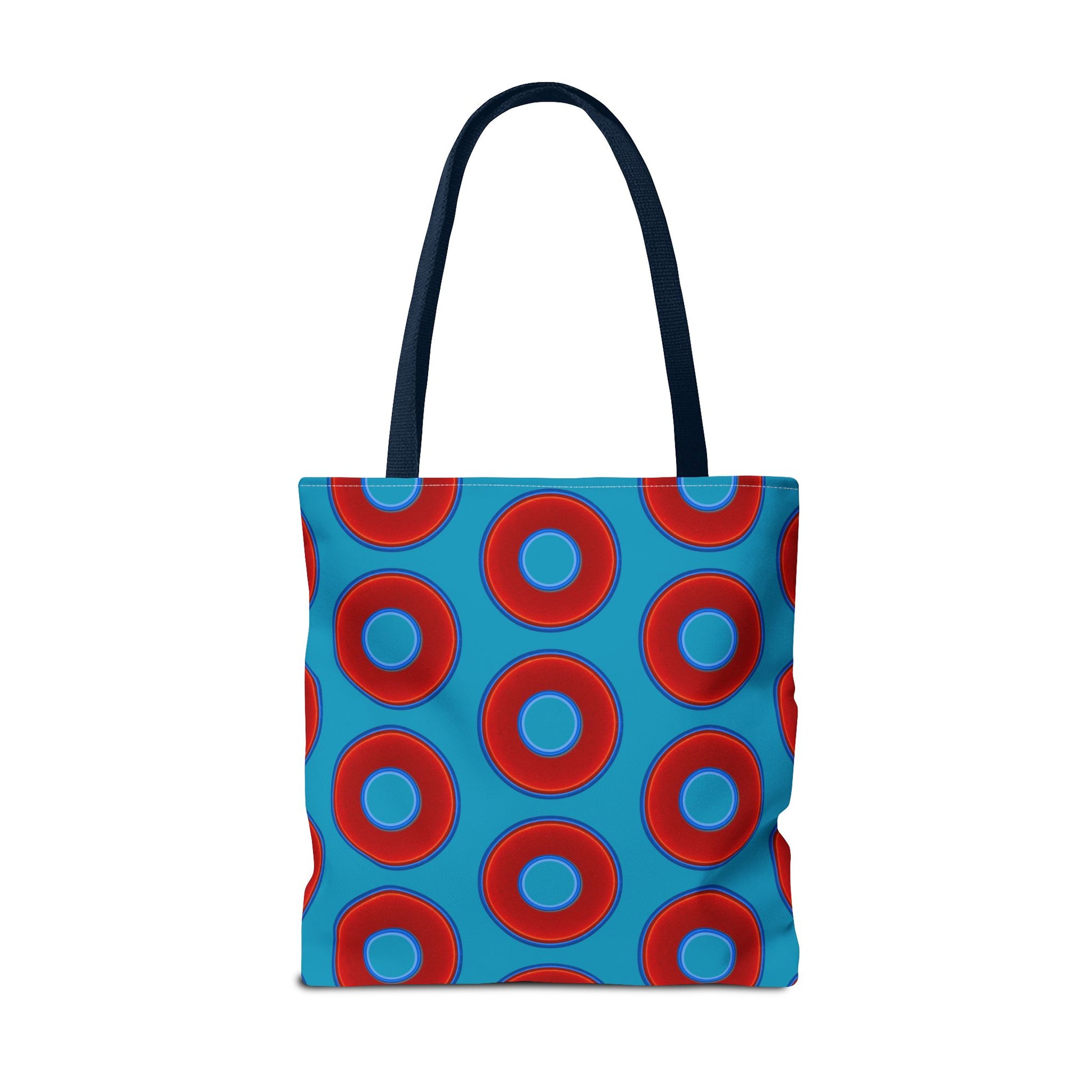 Lumpy Beach/Tote Bag - red vivid donuts w/aquamarine blue background