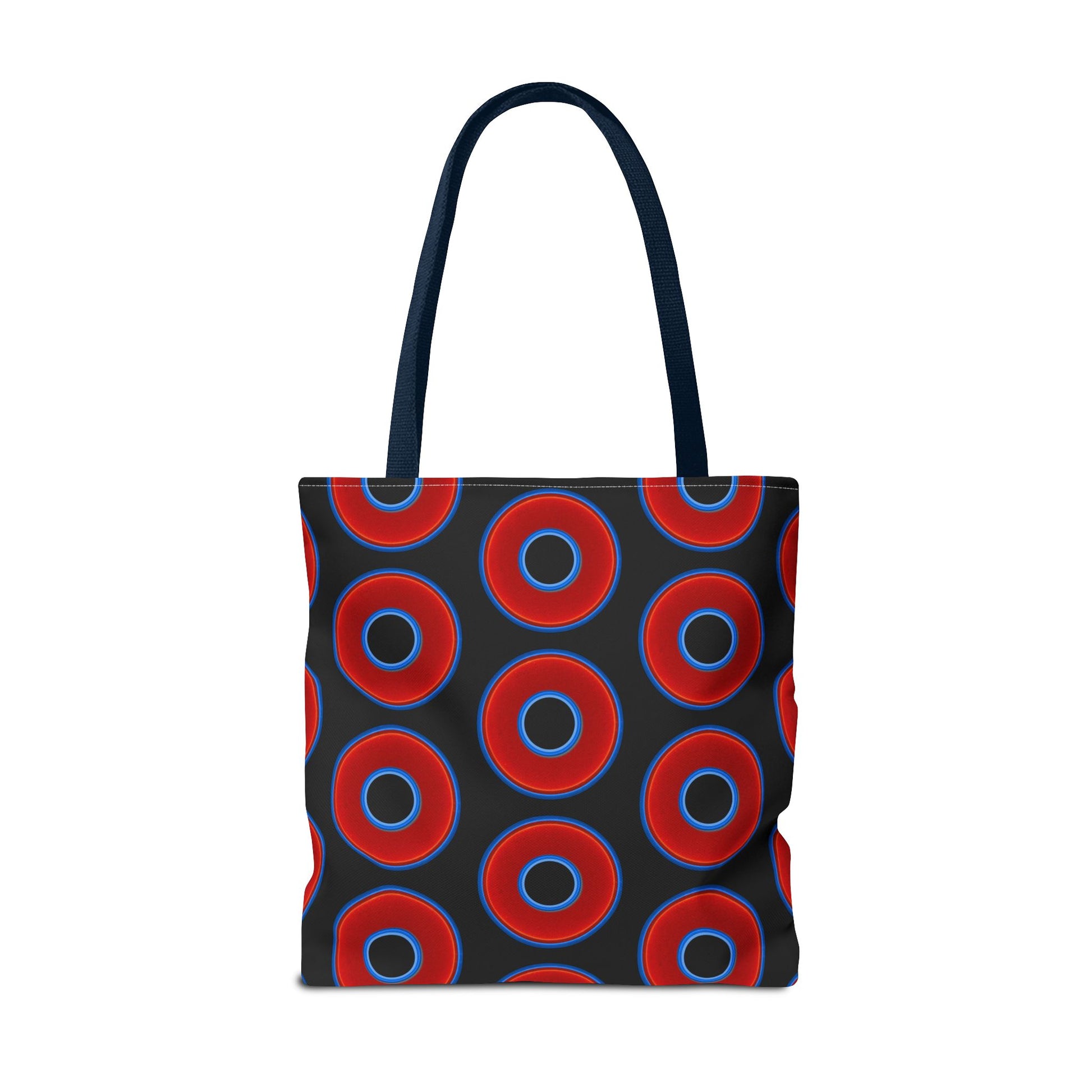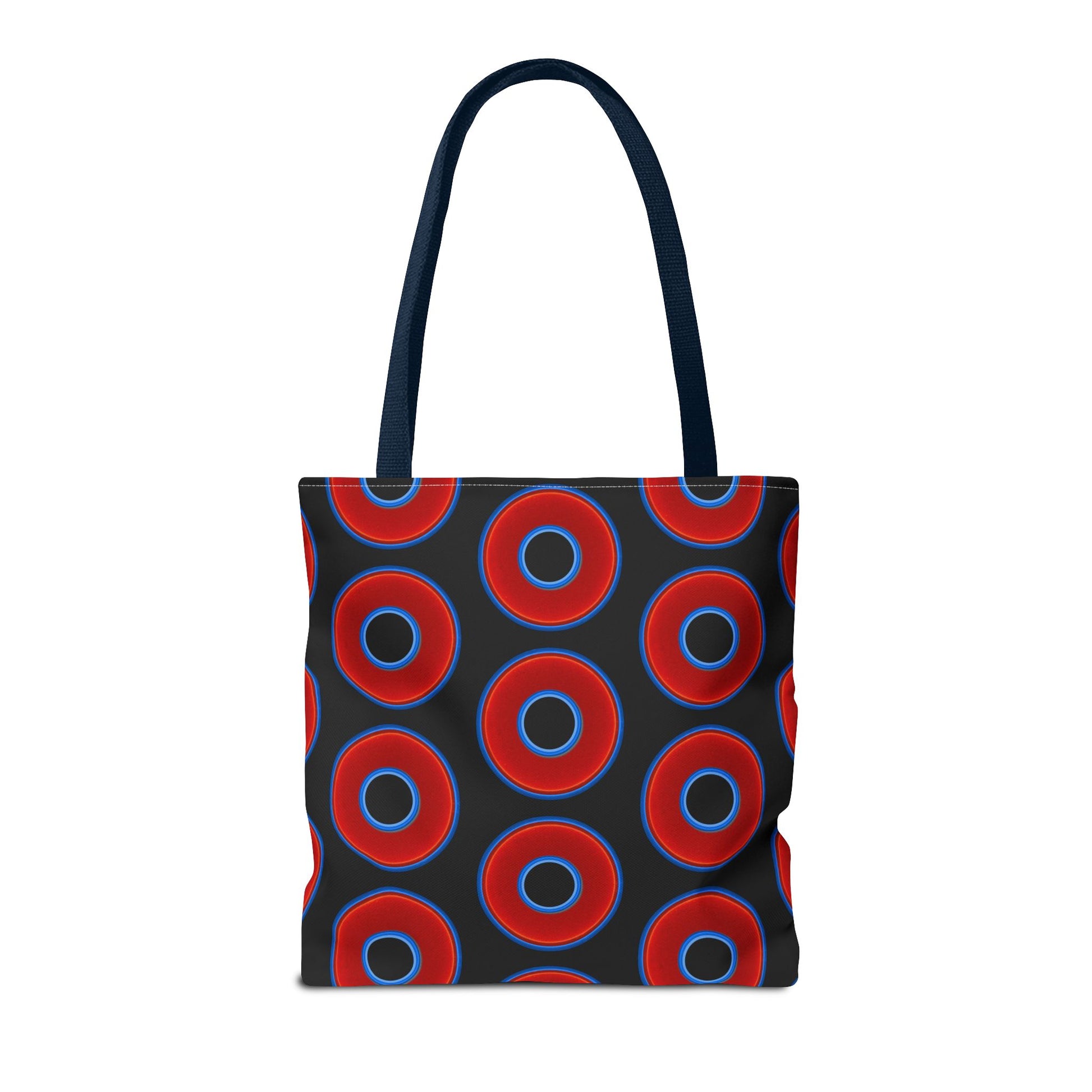 Lumpy Beach/Tote Bag - red vivid donuts w/black background
