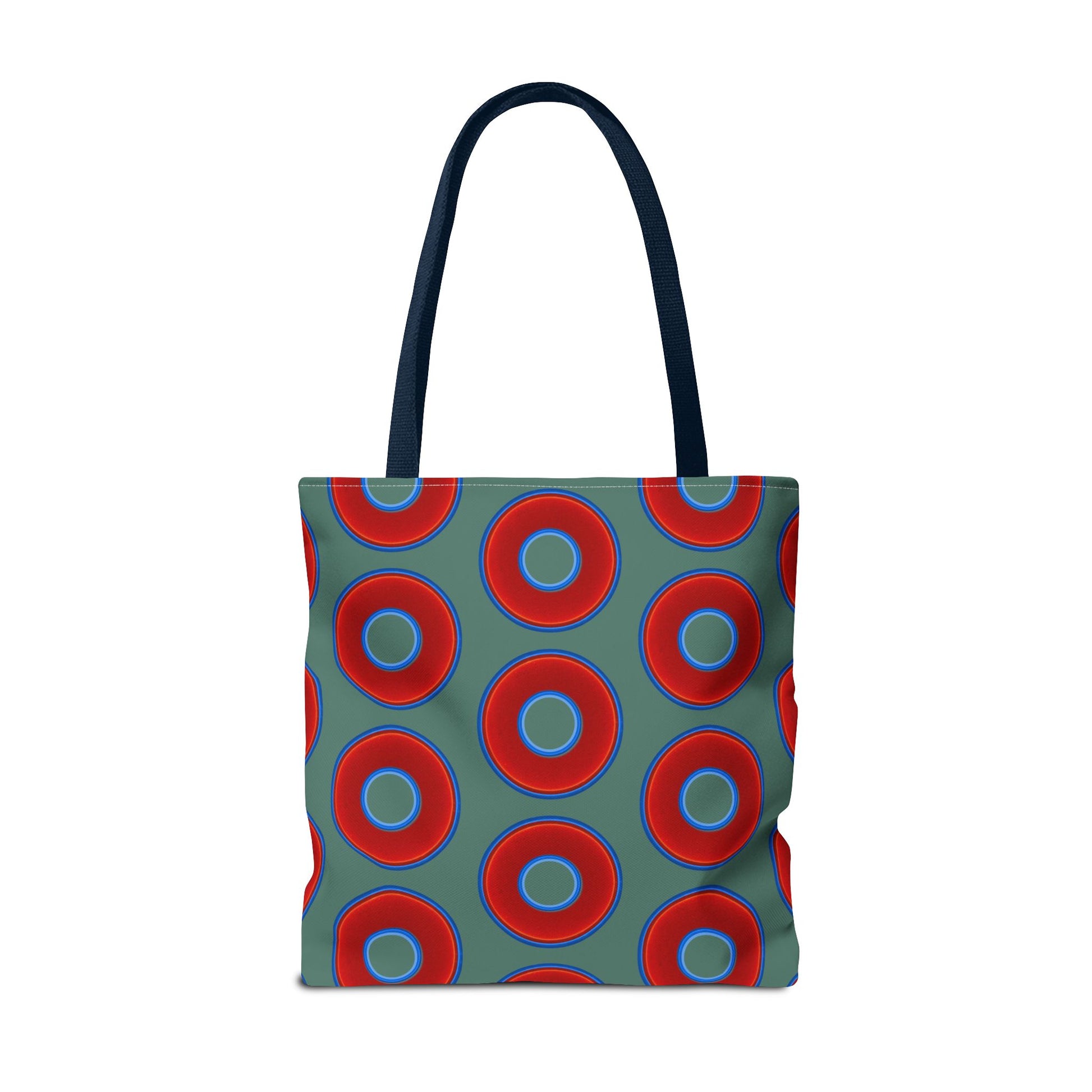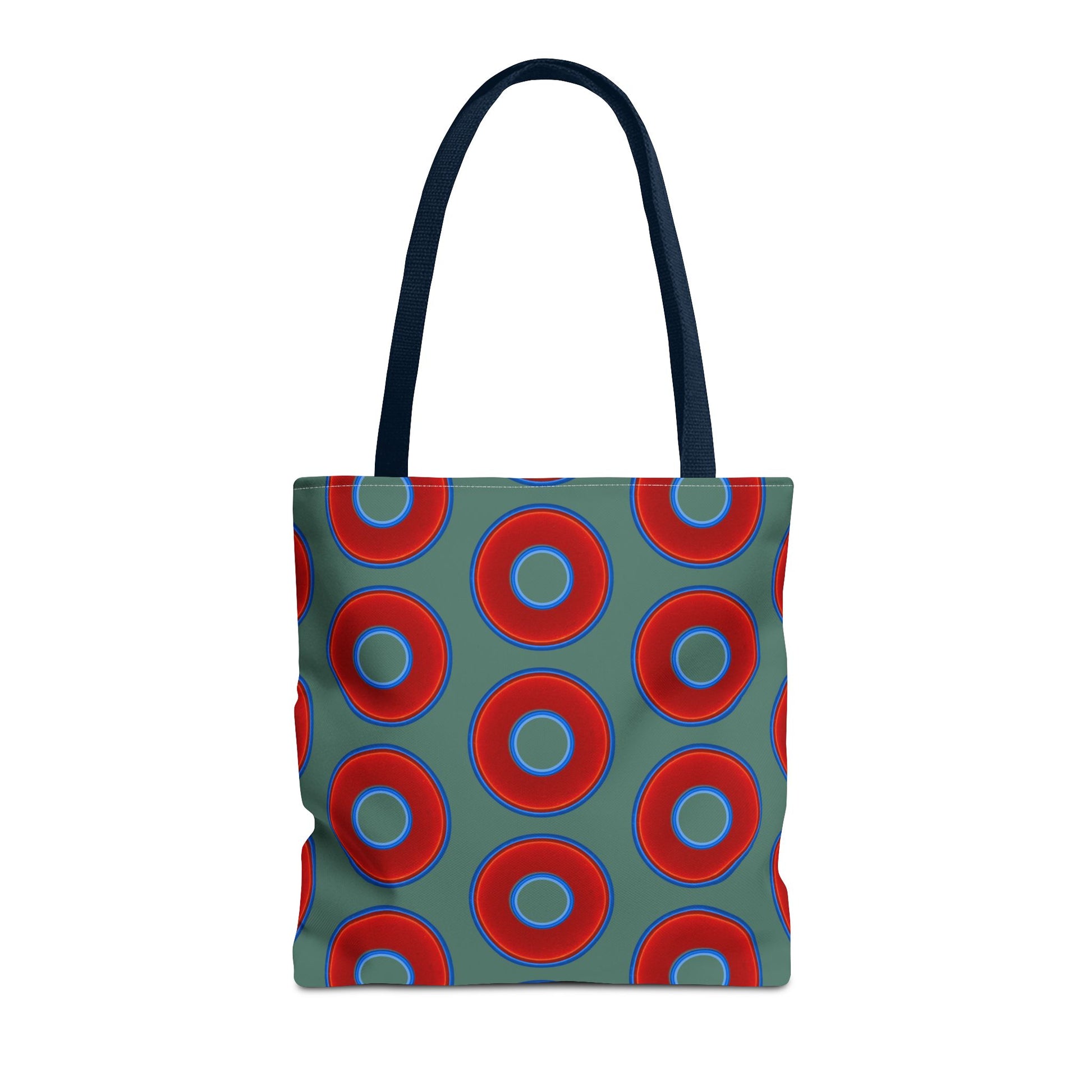 Lumpy Beach/Tote Bag - red vivid donuts w/Fenway green background