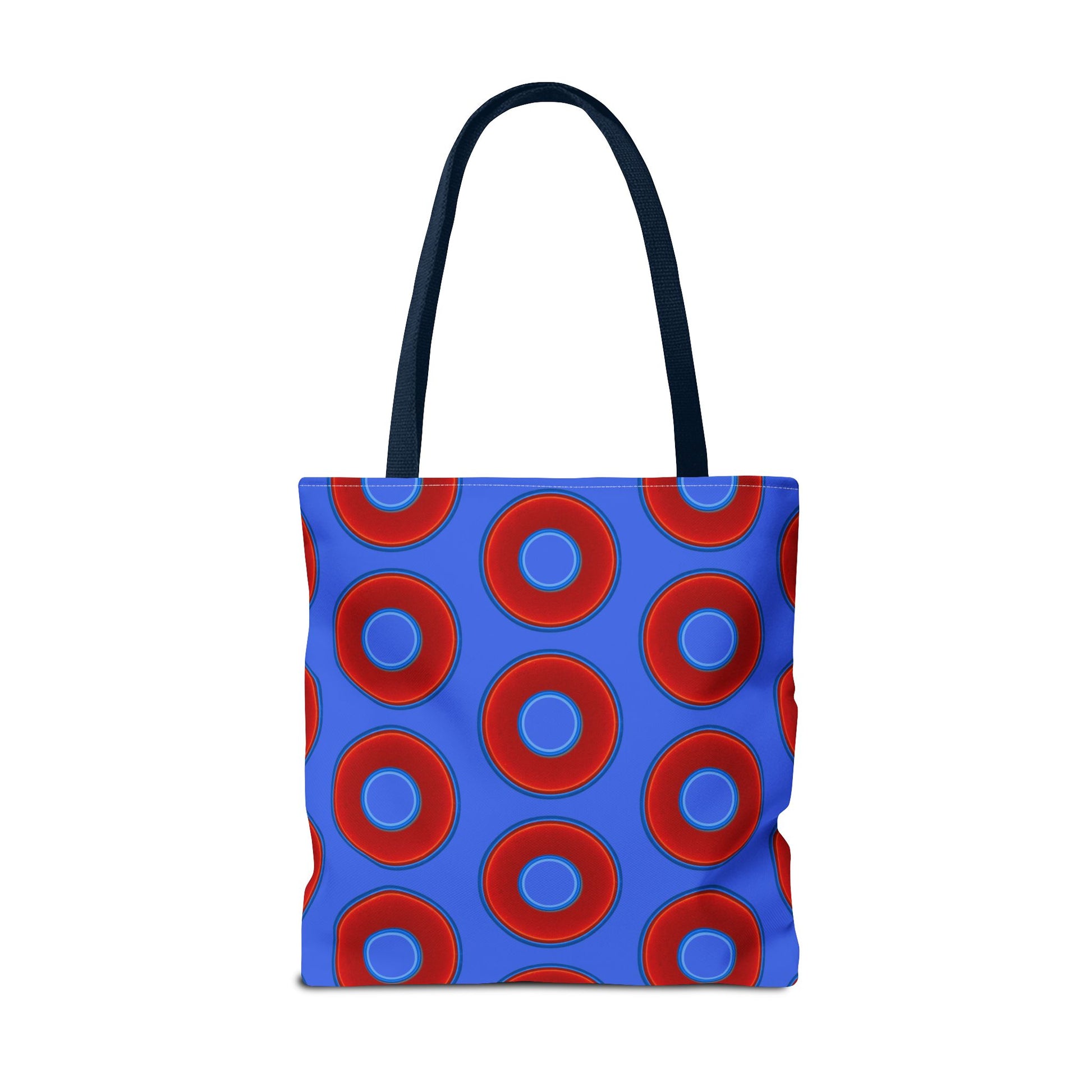 Lumpy Beach/Tote Bag - red vivid donuts w/royal blue background