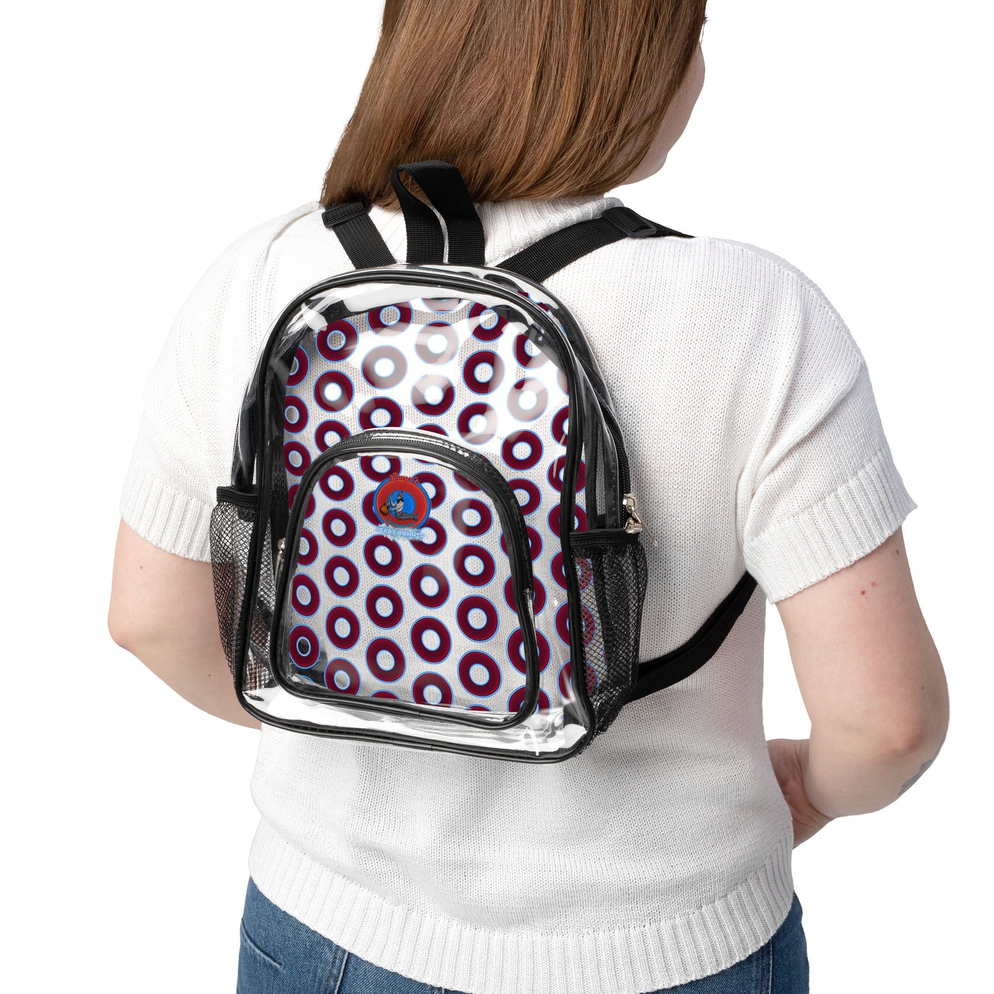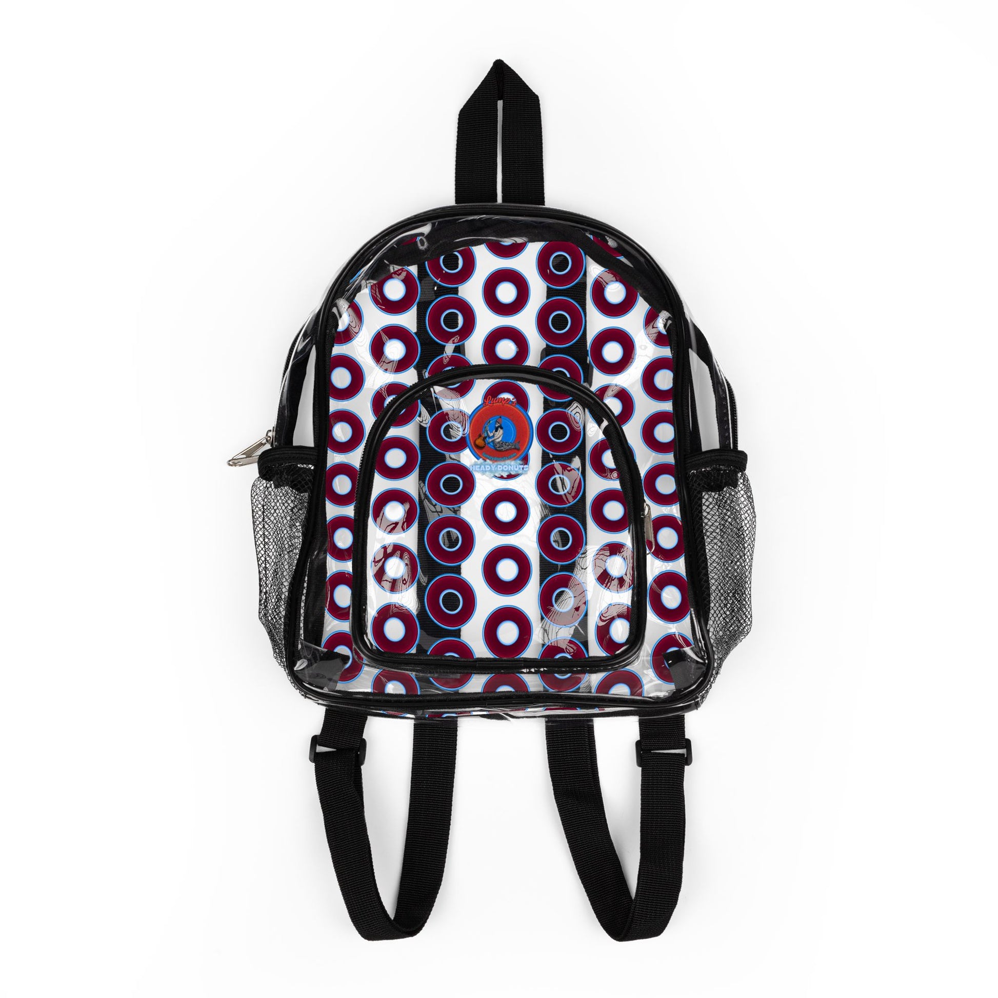This heady donut backpack is made from PVC & is suitable for concerts, travel, and long-term use. With its roomy interior and sturdy straps, it's not just a backpack – it’s ready to hold your snacks, tickets, and other "essentials," while keeping you compliant with event regulations.