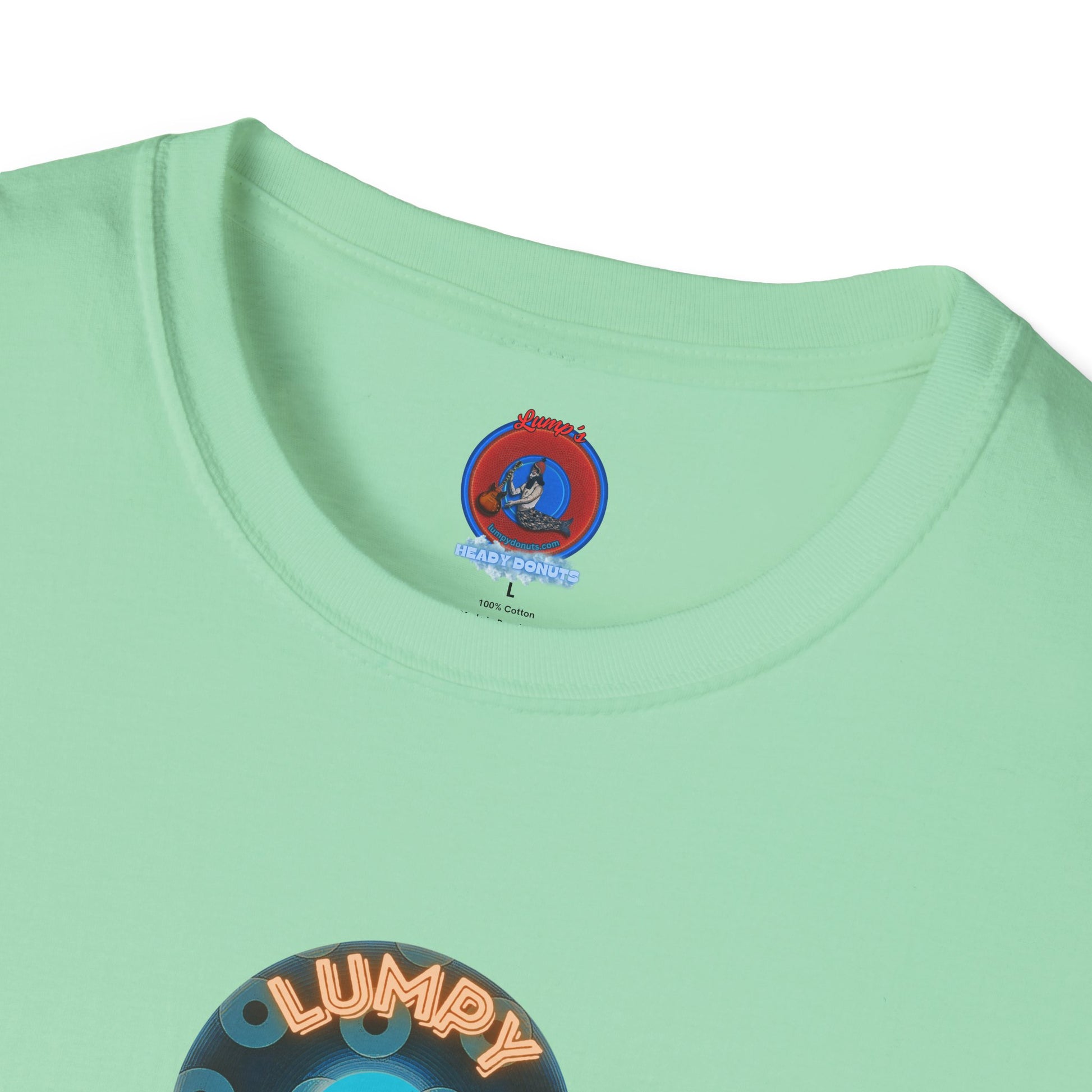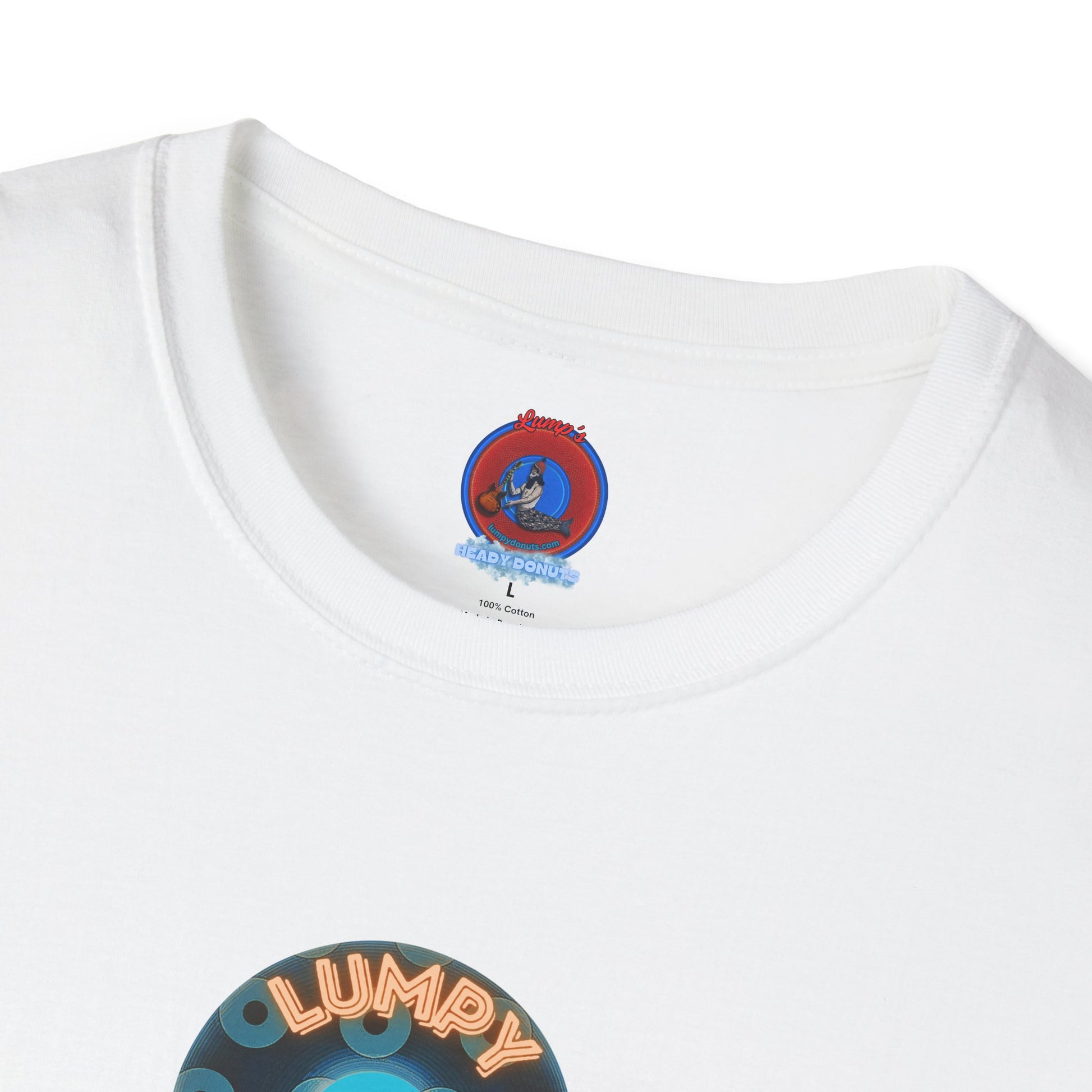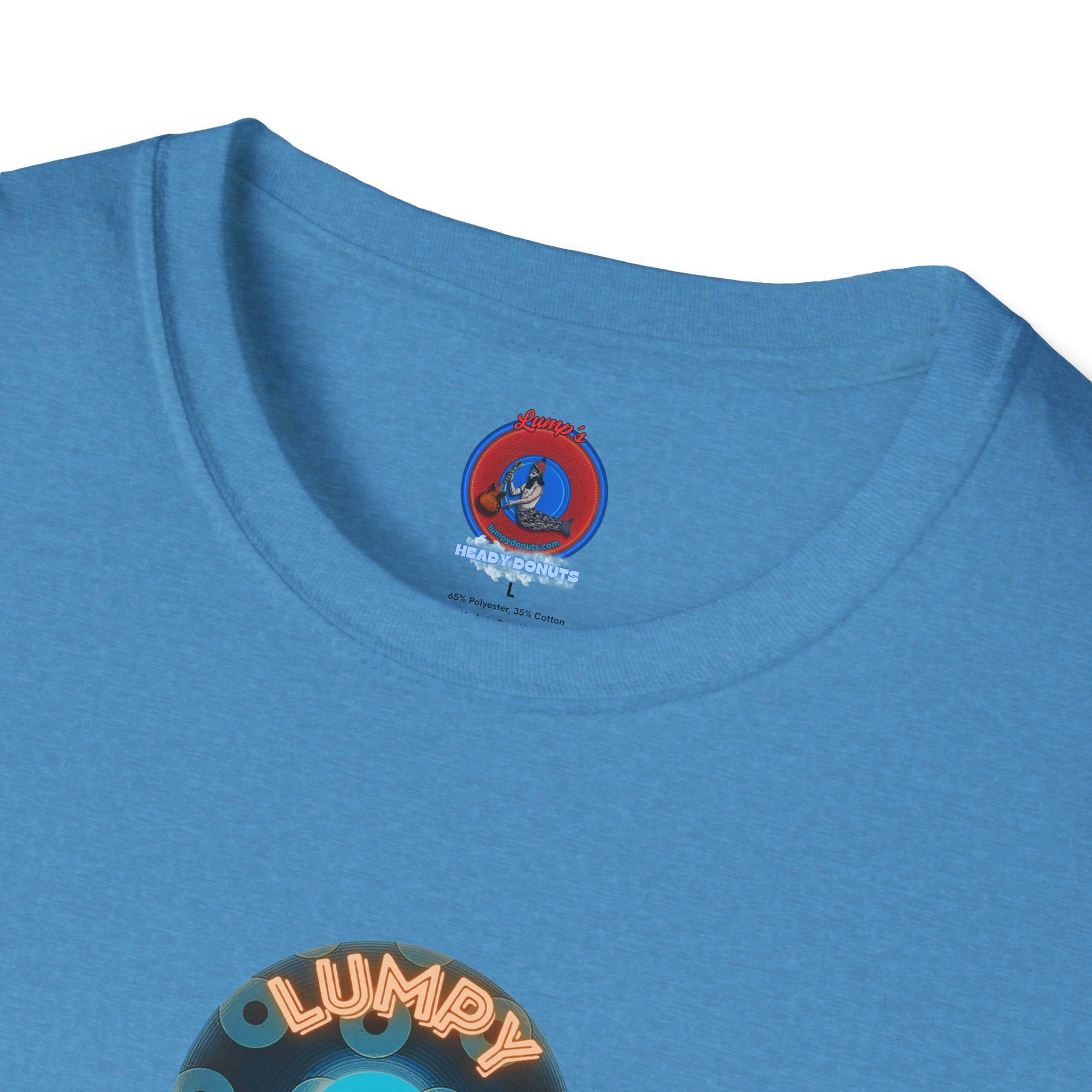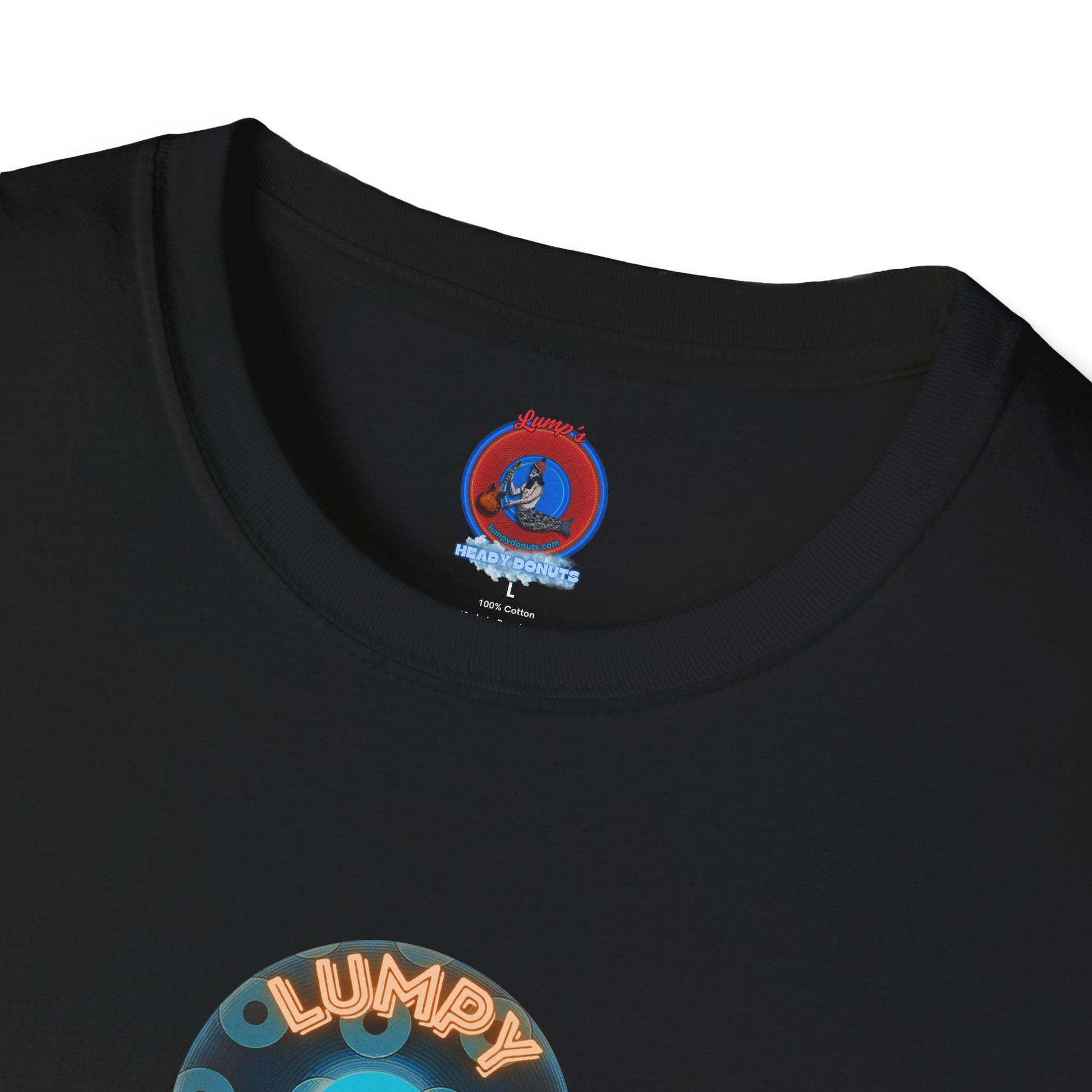 Lumpy Coffee Traders Tee - Unisex Soft-Style - "Good to Last Leaky Drop" - paradoxical ocean donut - variant 1 - logo front/coffee back