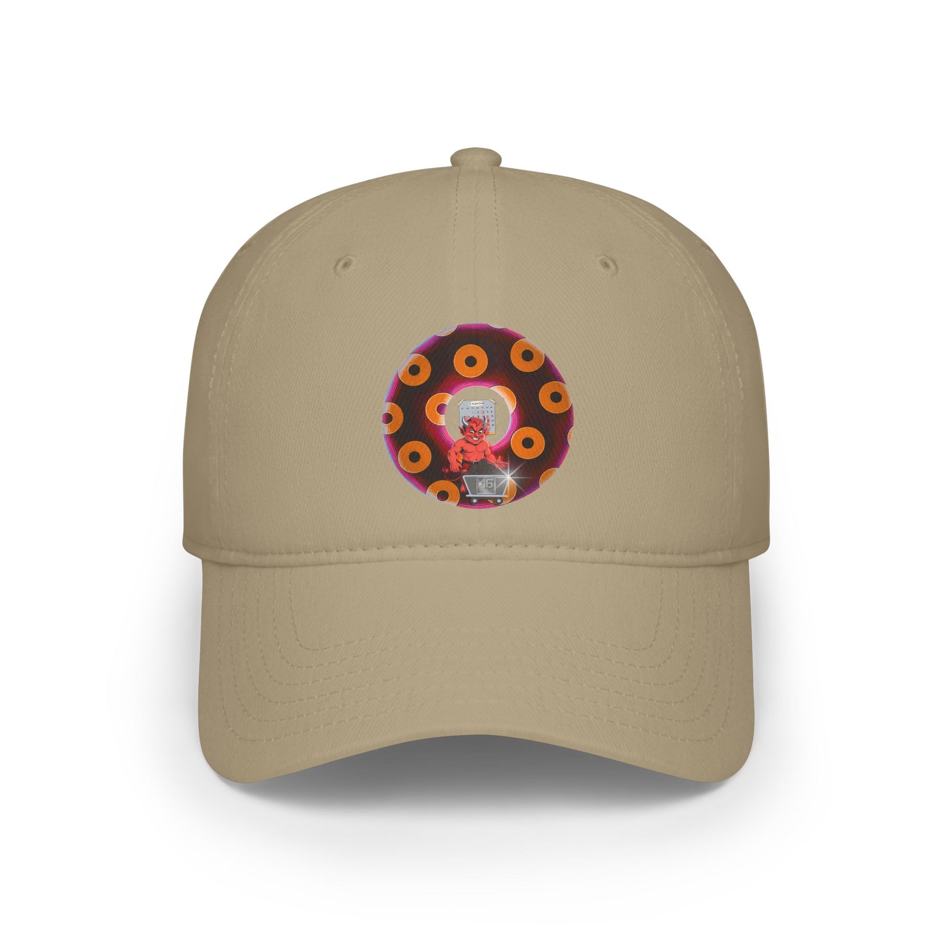 Lumpy Donut Baseball Cap - "46 Donuts Taste The Fear" - paradoxical dark magenta/orange blimpy donut w/