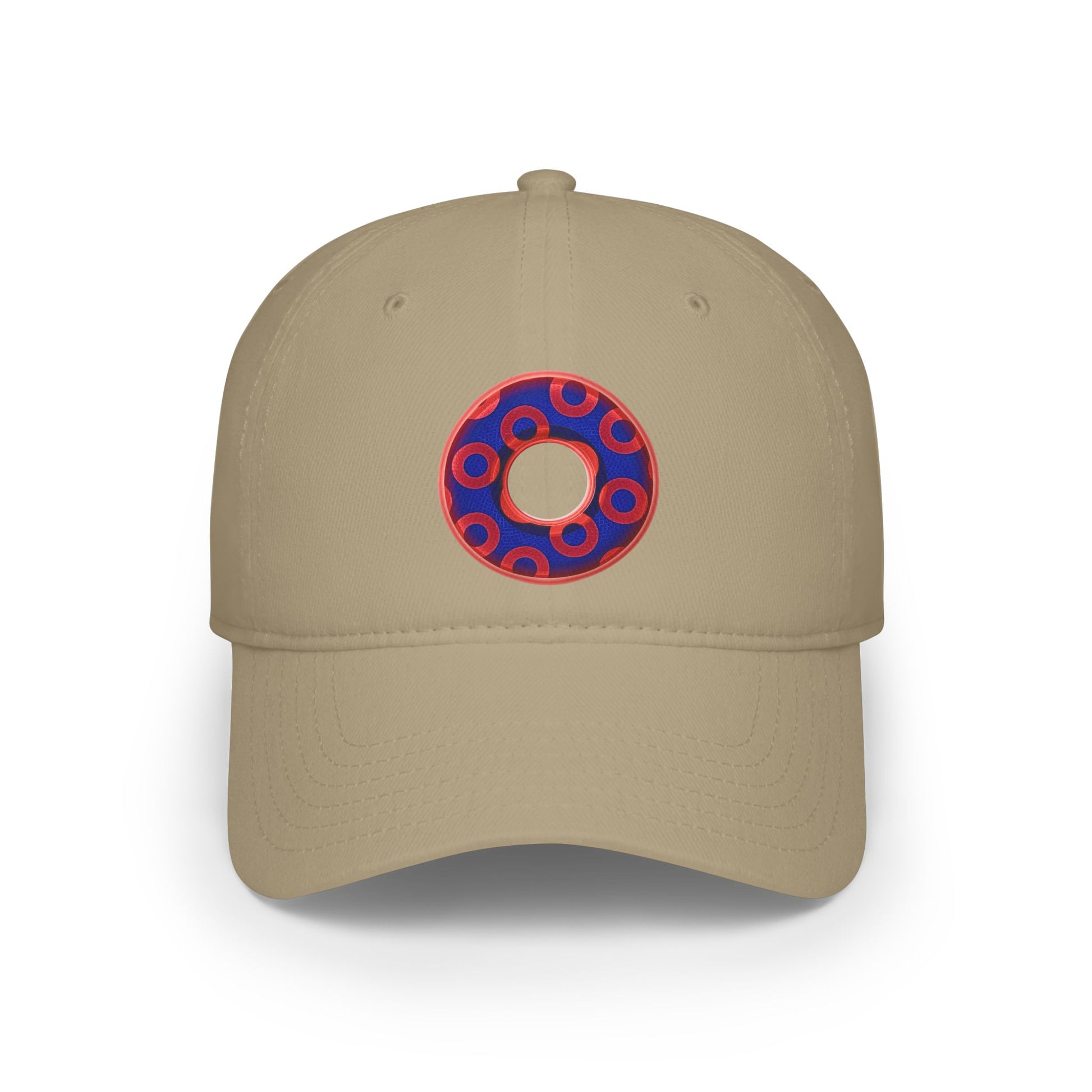 Lumpy Donut Baseball Cap - "Paradoxical Weathered Donut" - variant 1 - red/blue donuts donut w/
