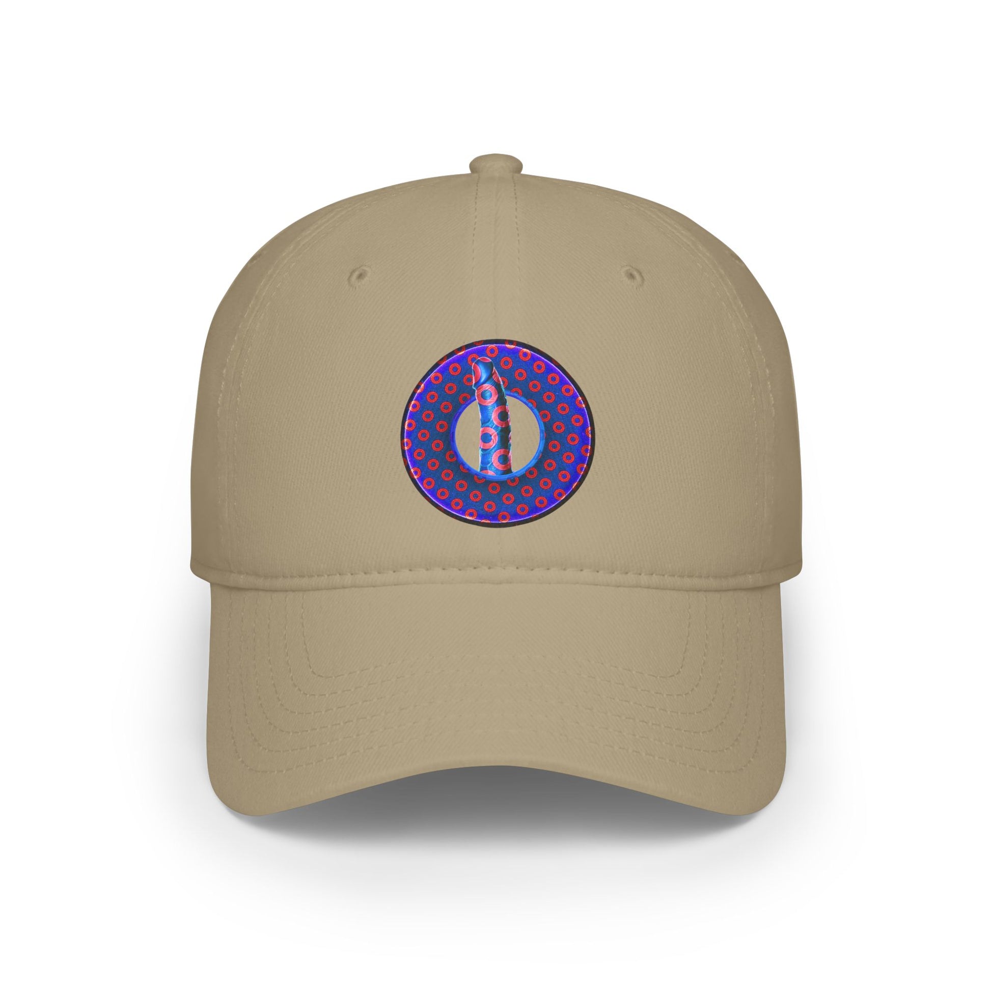 Lumpy Donut Baseball Cap - "Sir Richard's Phamous Donut" - variant 3 - red/blue weathered paradoxical donut donut w/