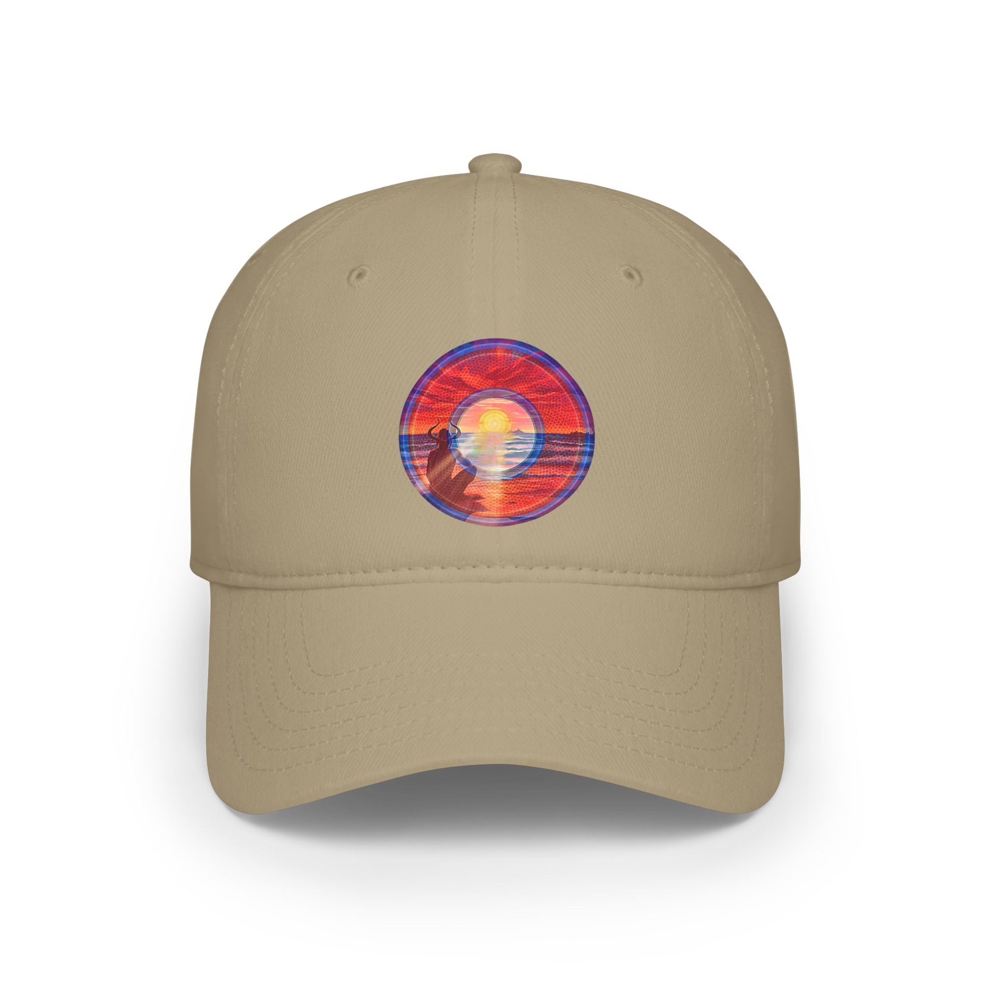 Lumpy Donut Baseball Cap - "Squirming Donut Cap of Sunset" - red rustic pic donut w/