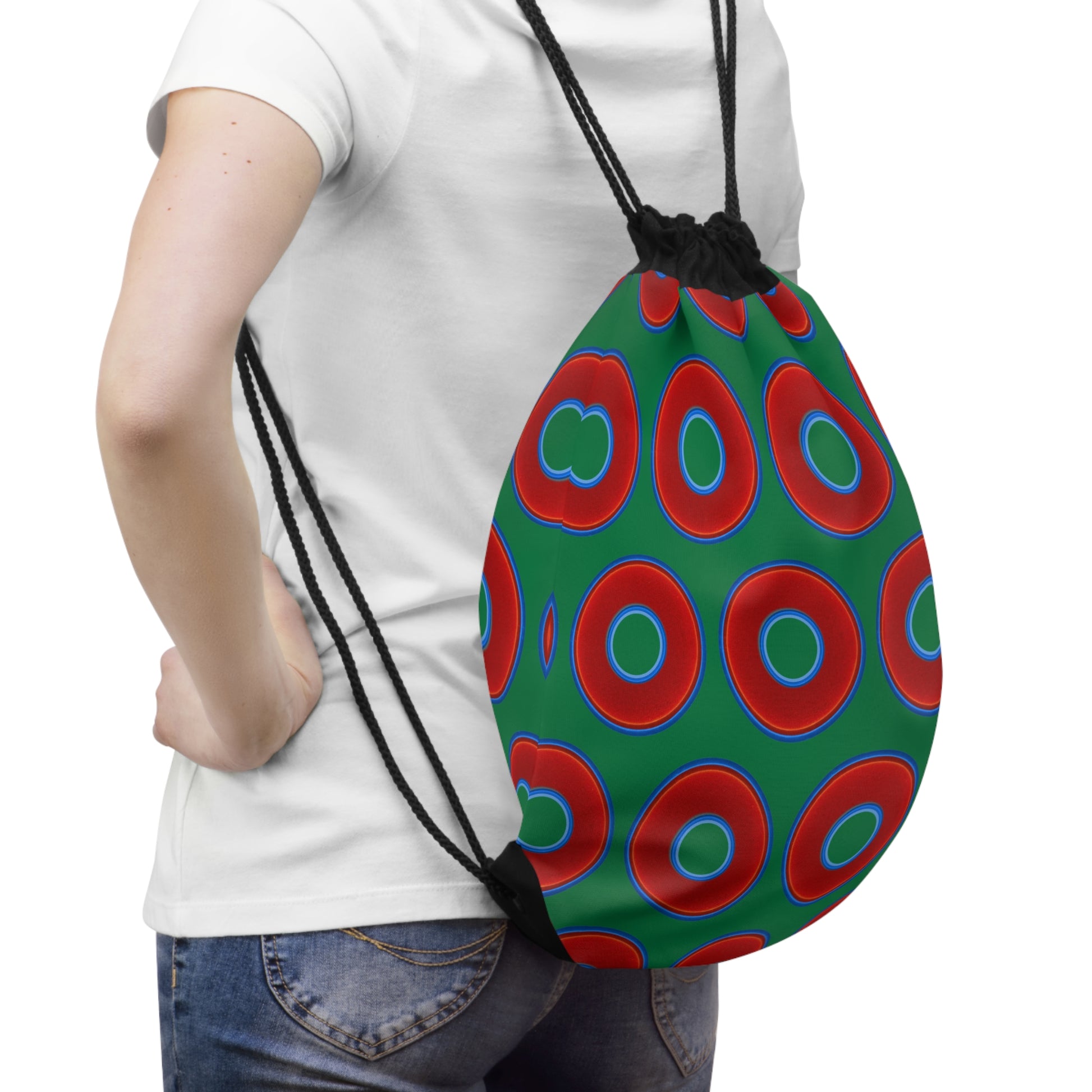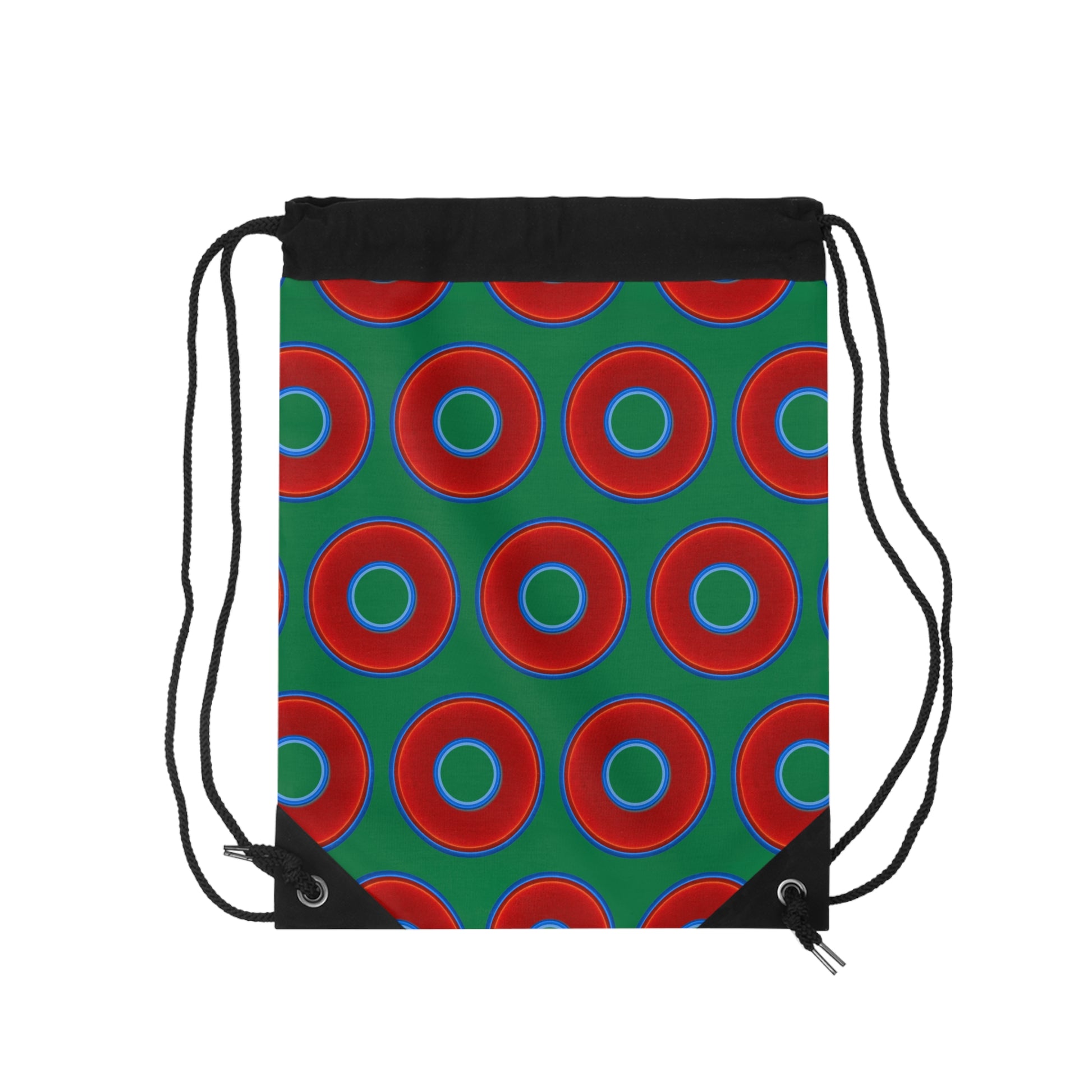 Lumpy Donut Drawstring Bag - red vivid donuts print w/green background