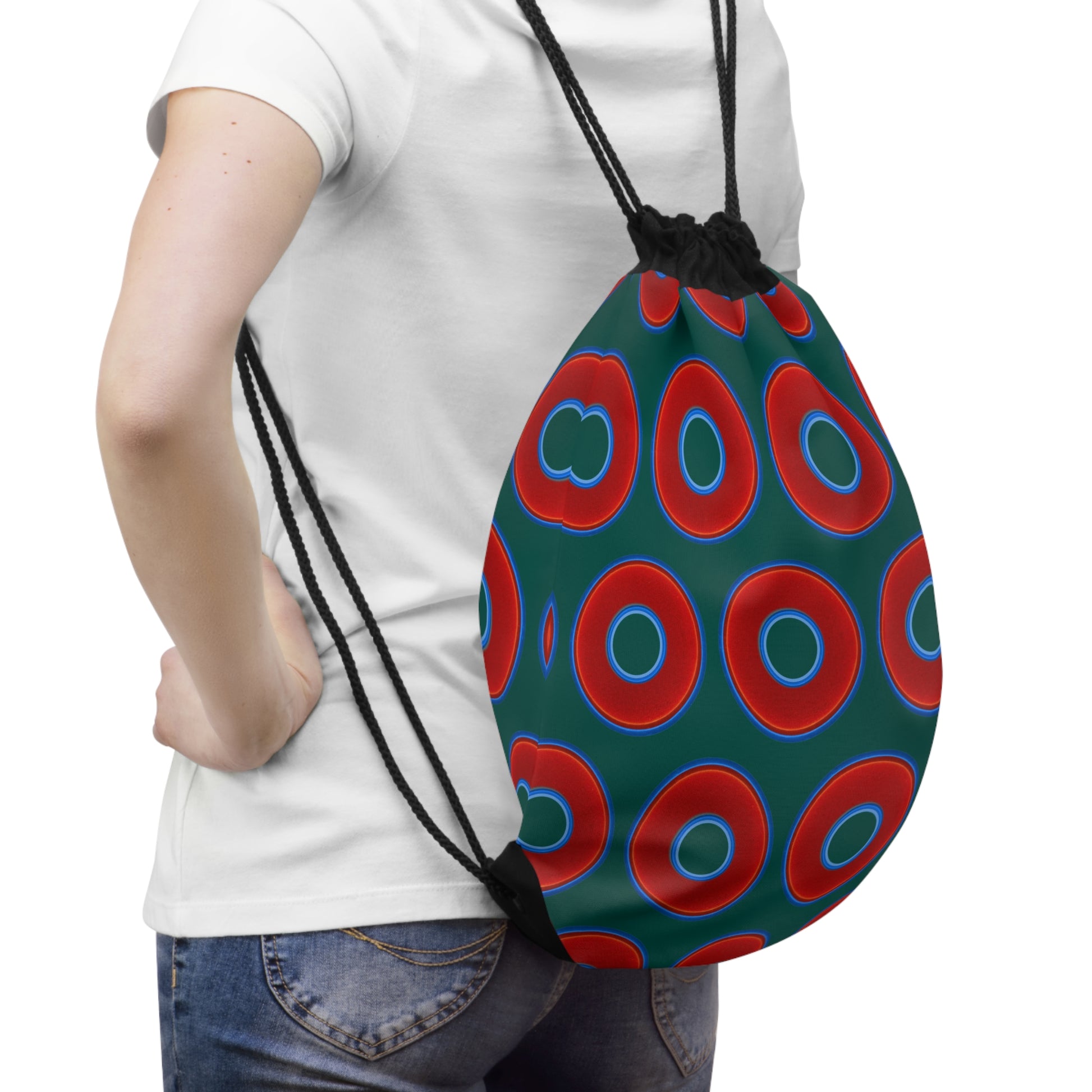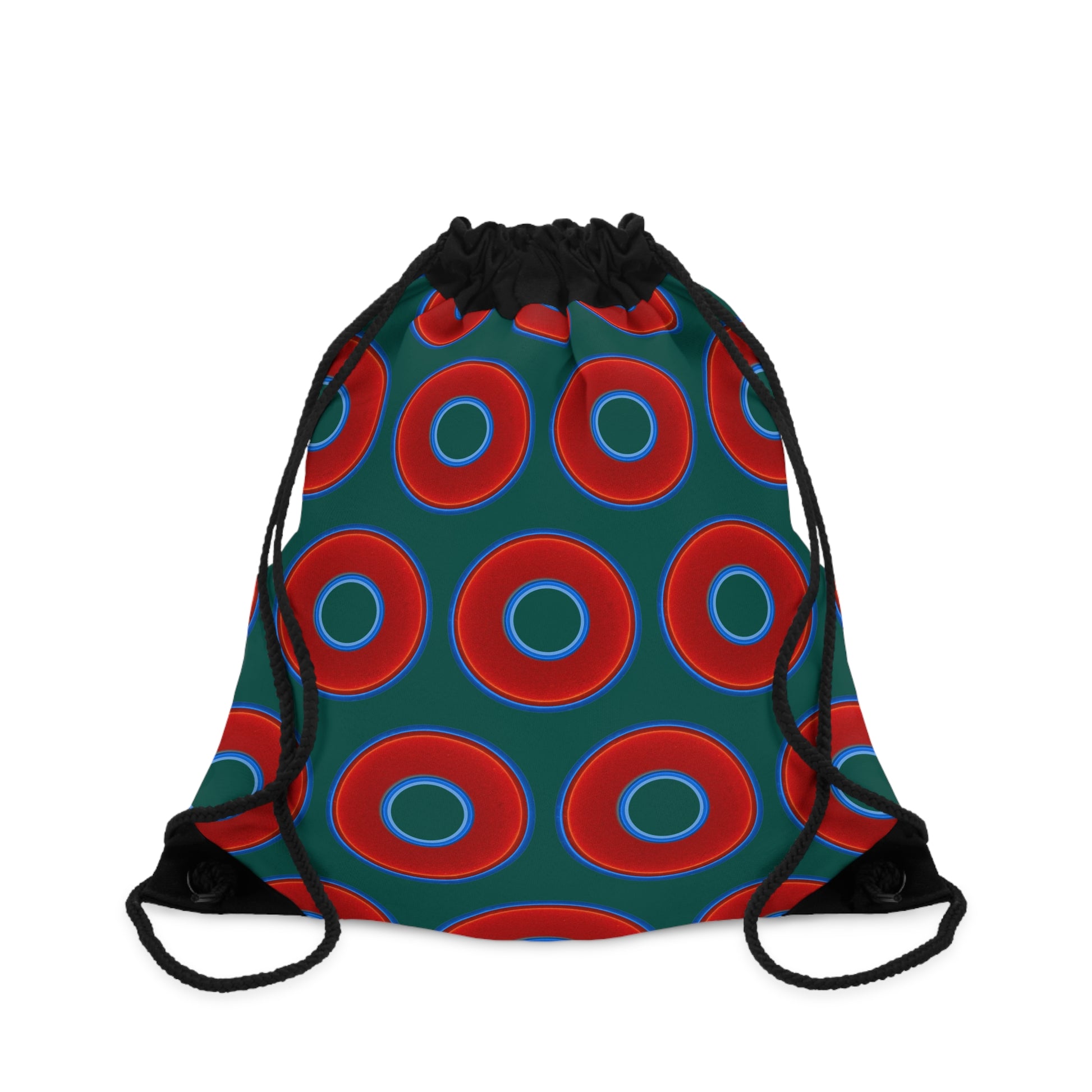 Lumpy Donut Drawstring Bag - red vivid donuts print w/dark grayish green background