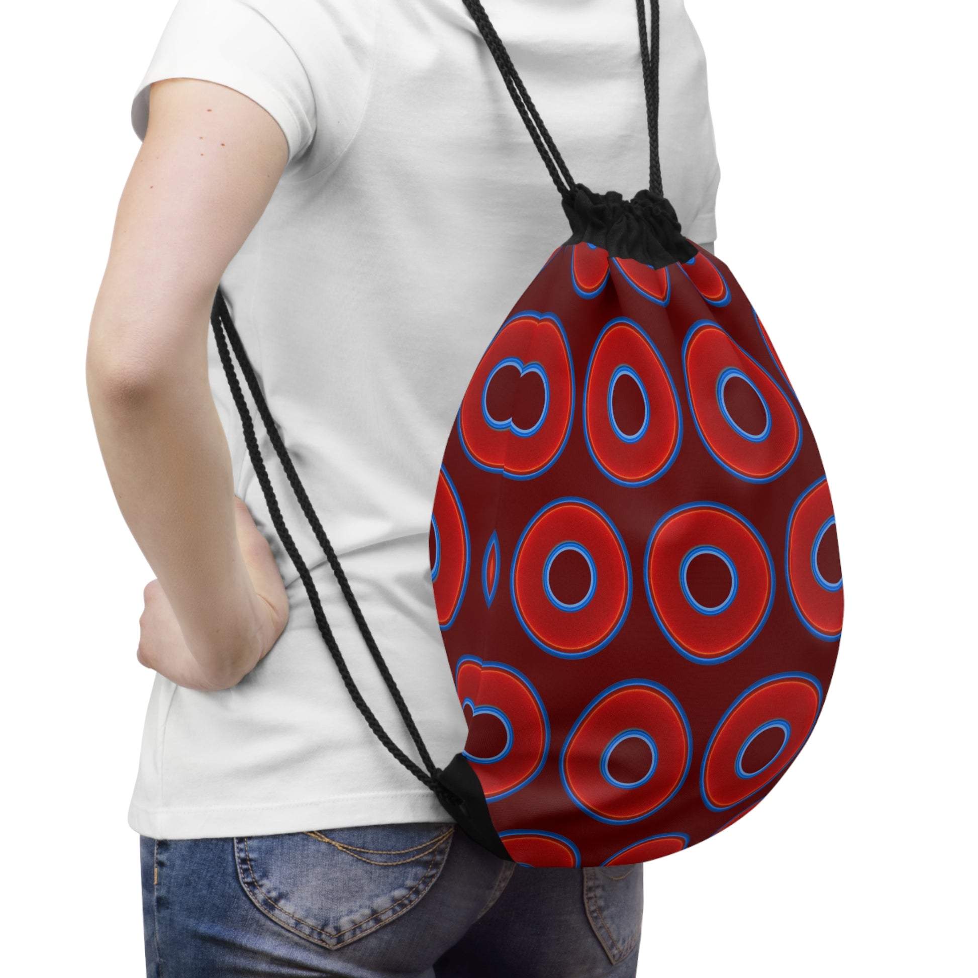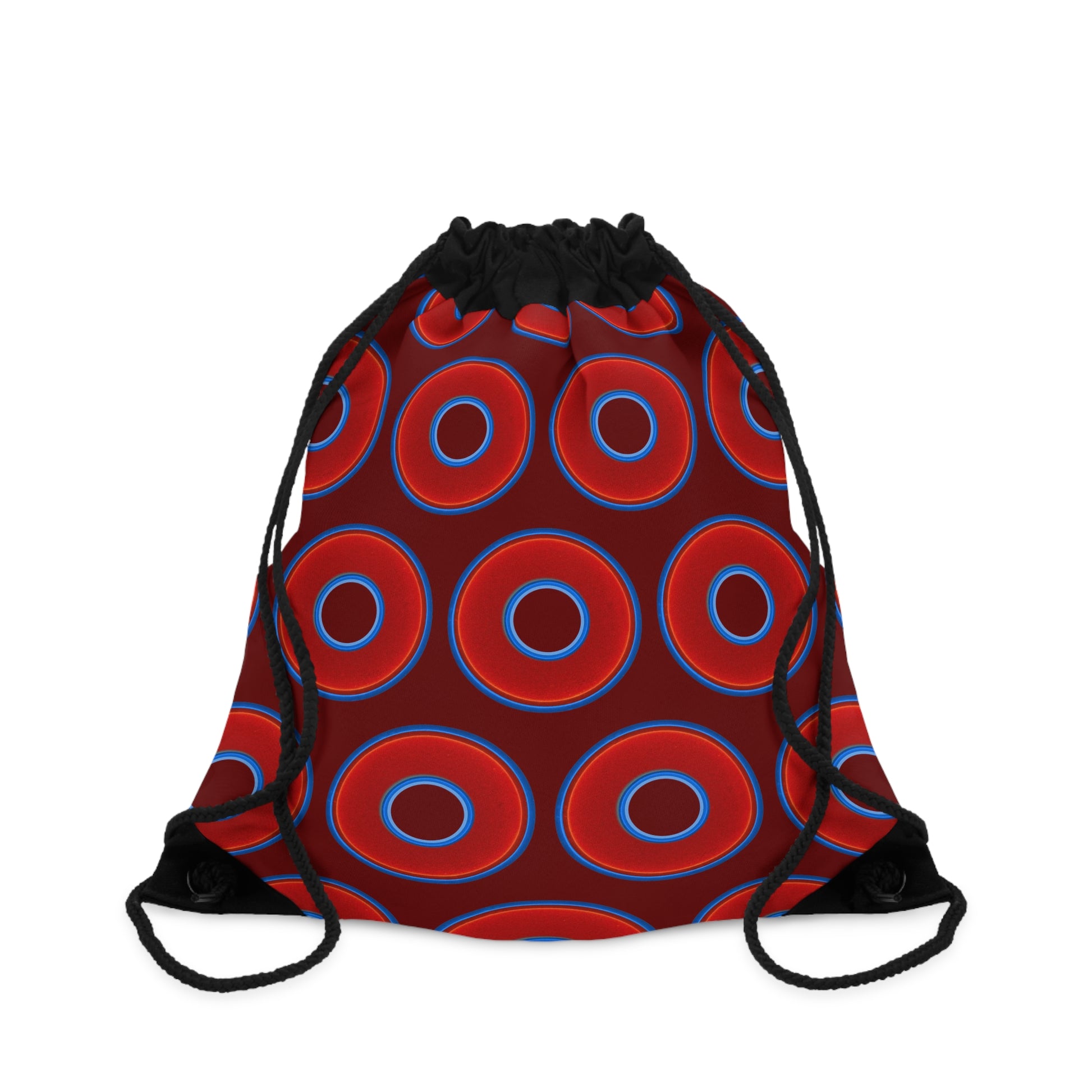 Lumpy Donut Drawstring Bag - red vivid donuts print w/dark red background