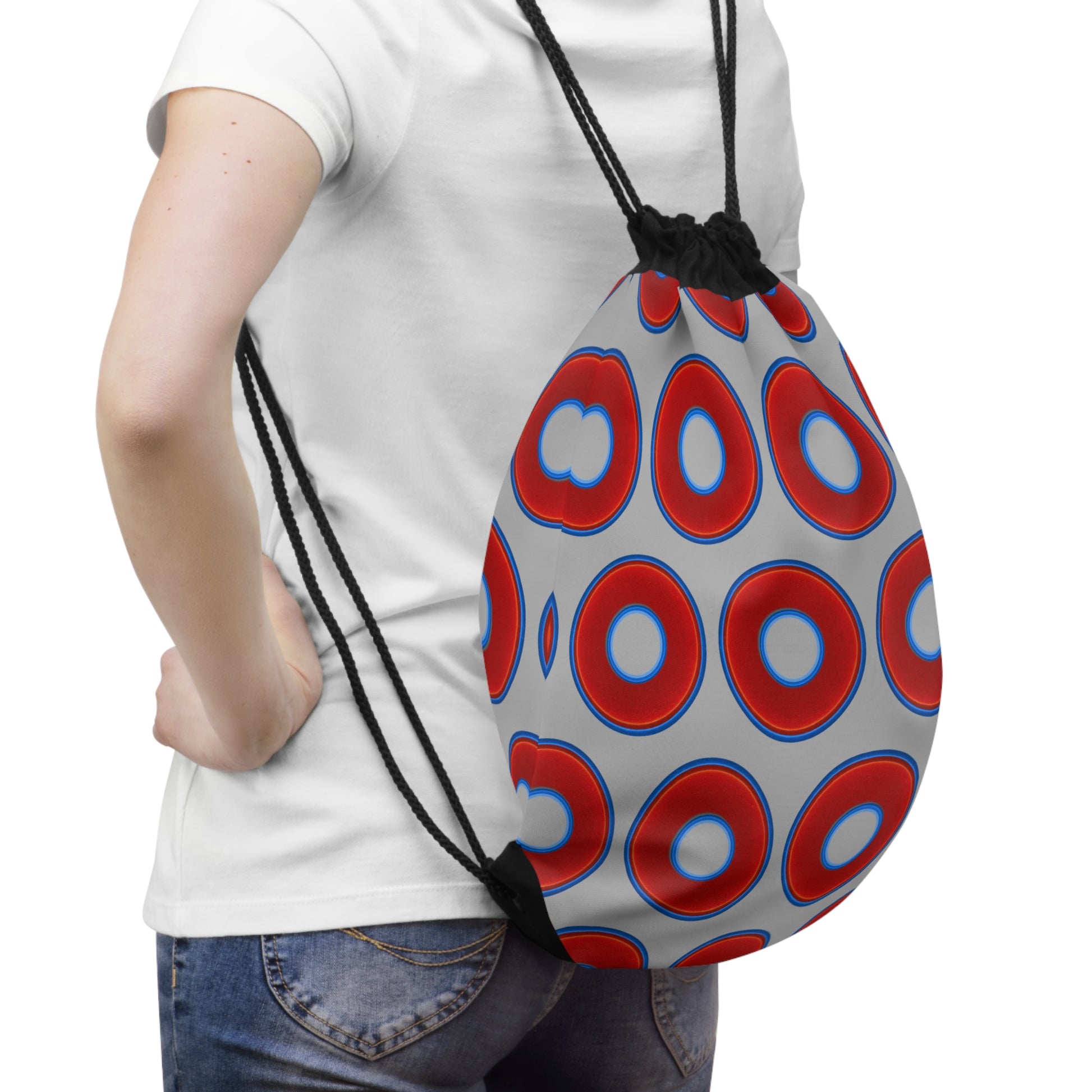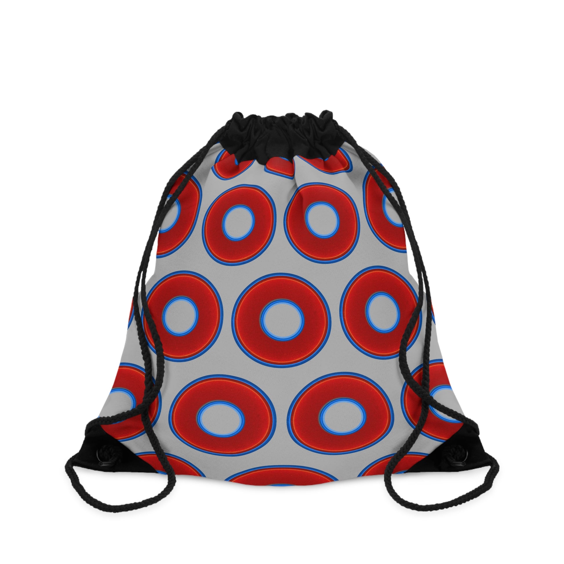 Lumpy Donut Drawstring Bag - red vivid donuts print w/light gray background