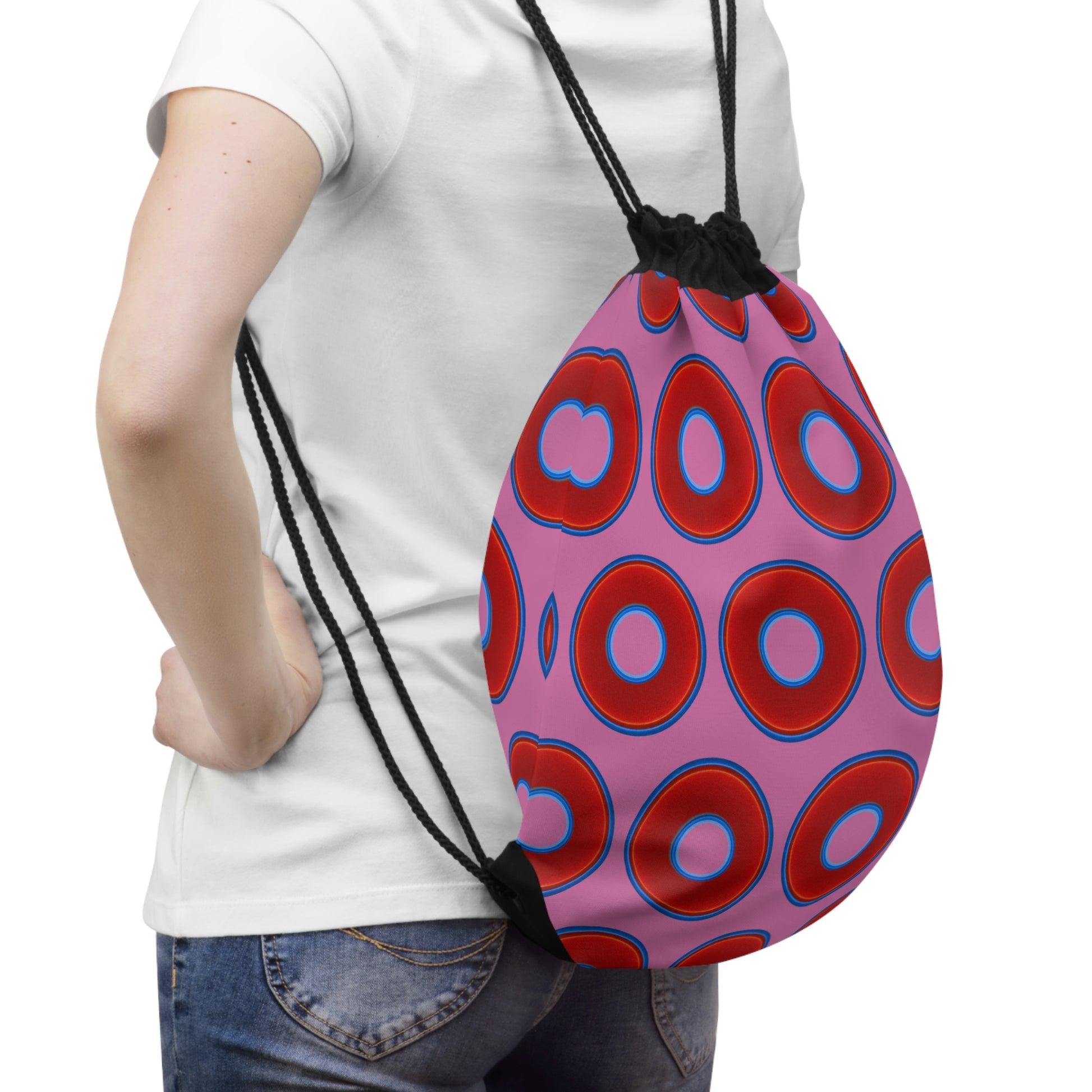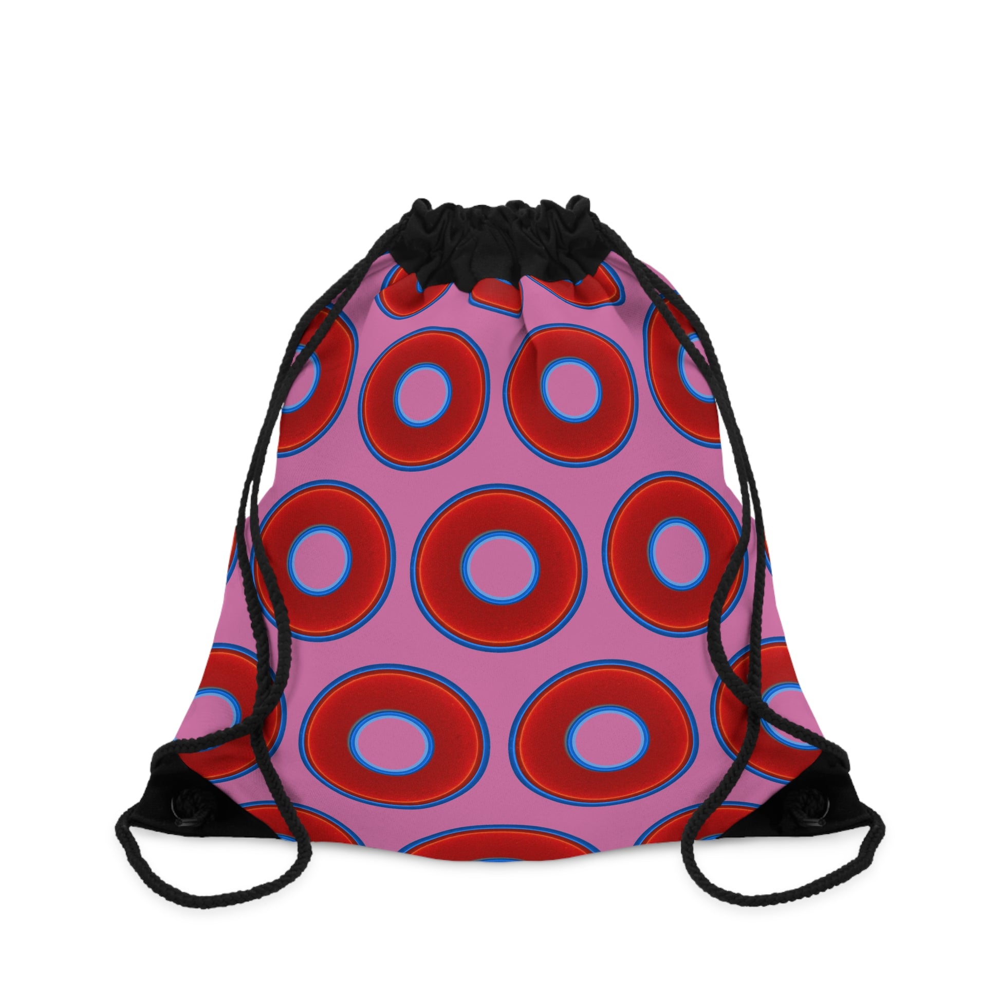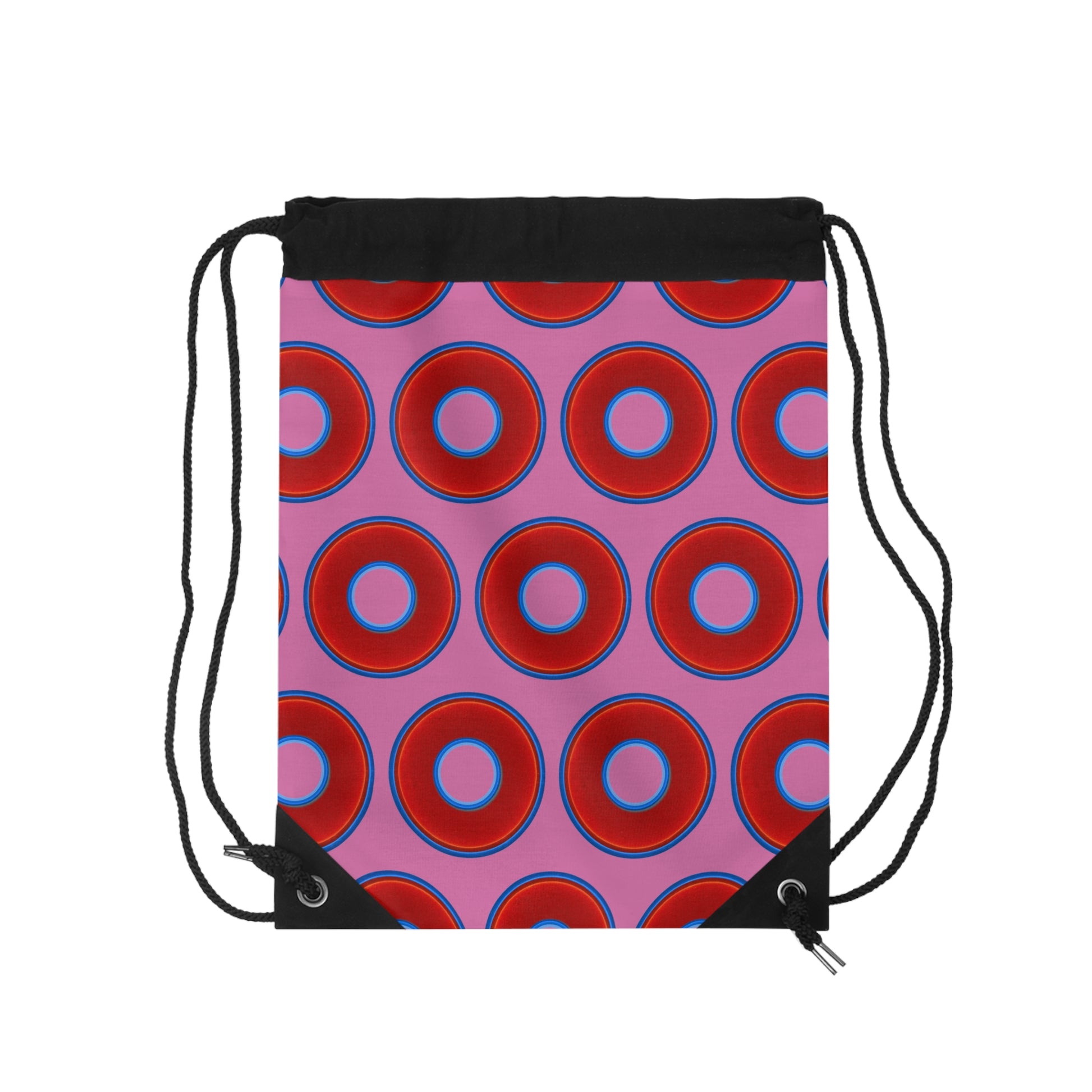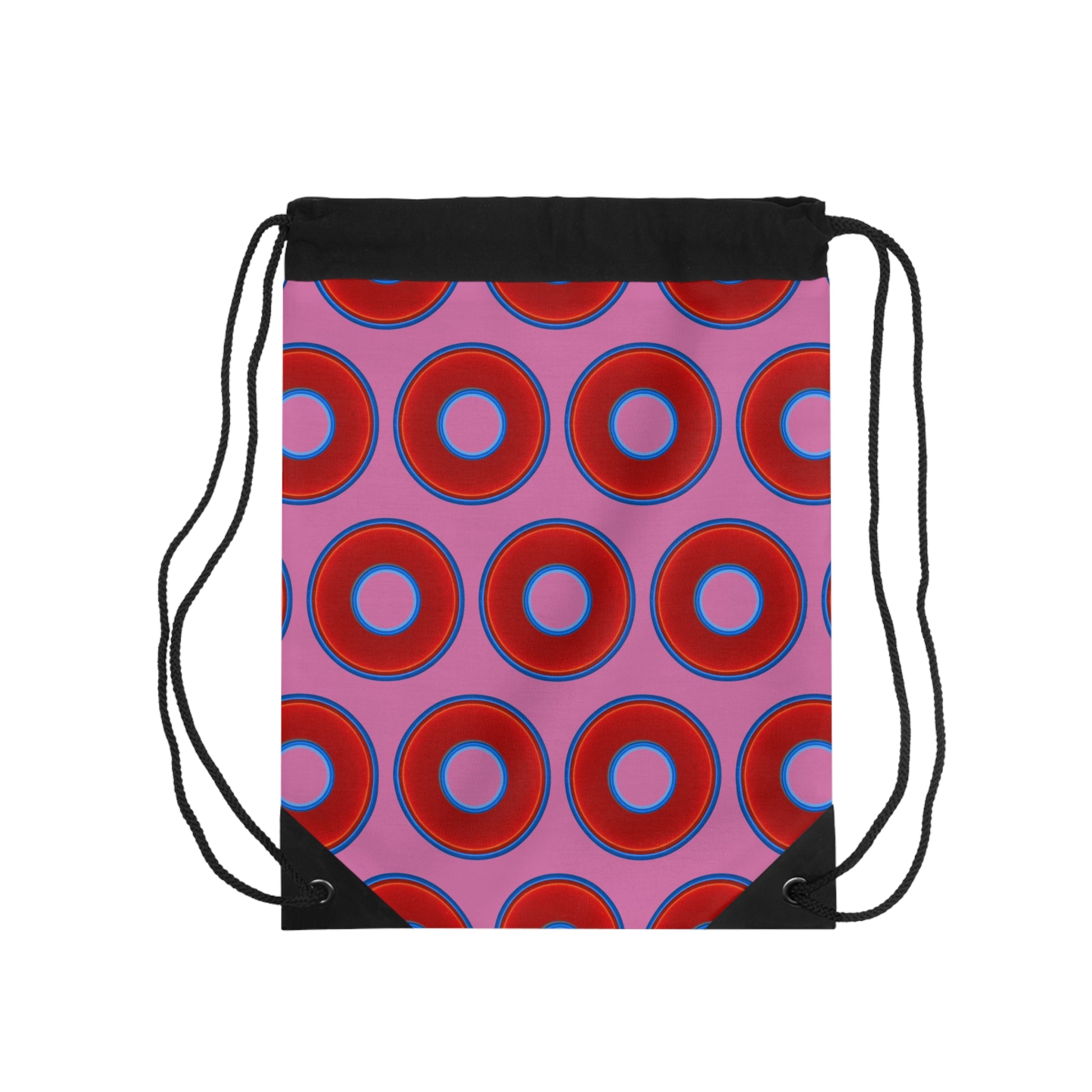 Lumpy Donut Drawstring Bag - red vivid donuts print w/light pink background