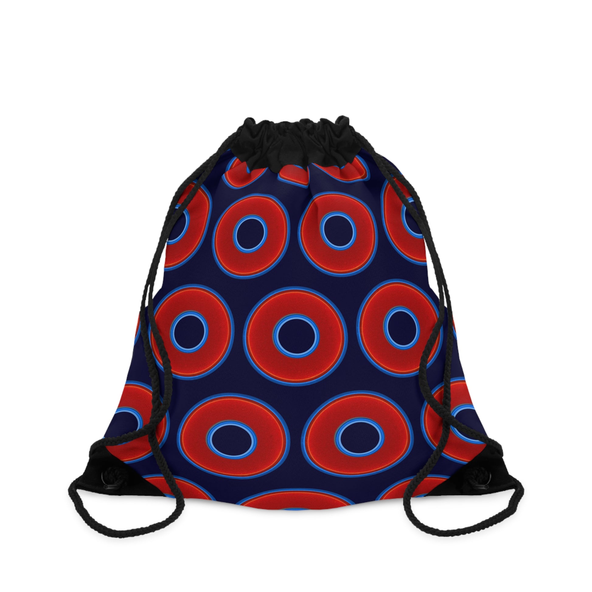 Lumpy Donut Drawstring Bag - red vivid donuts print w/midnight blue background