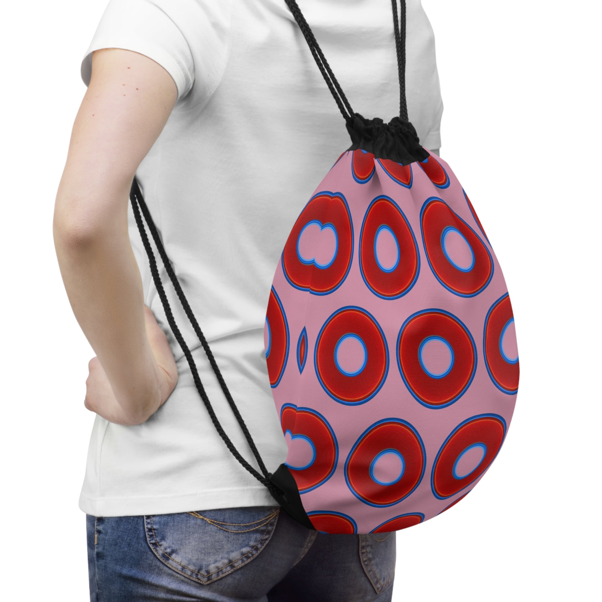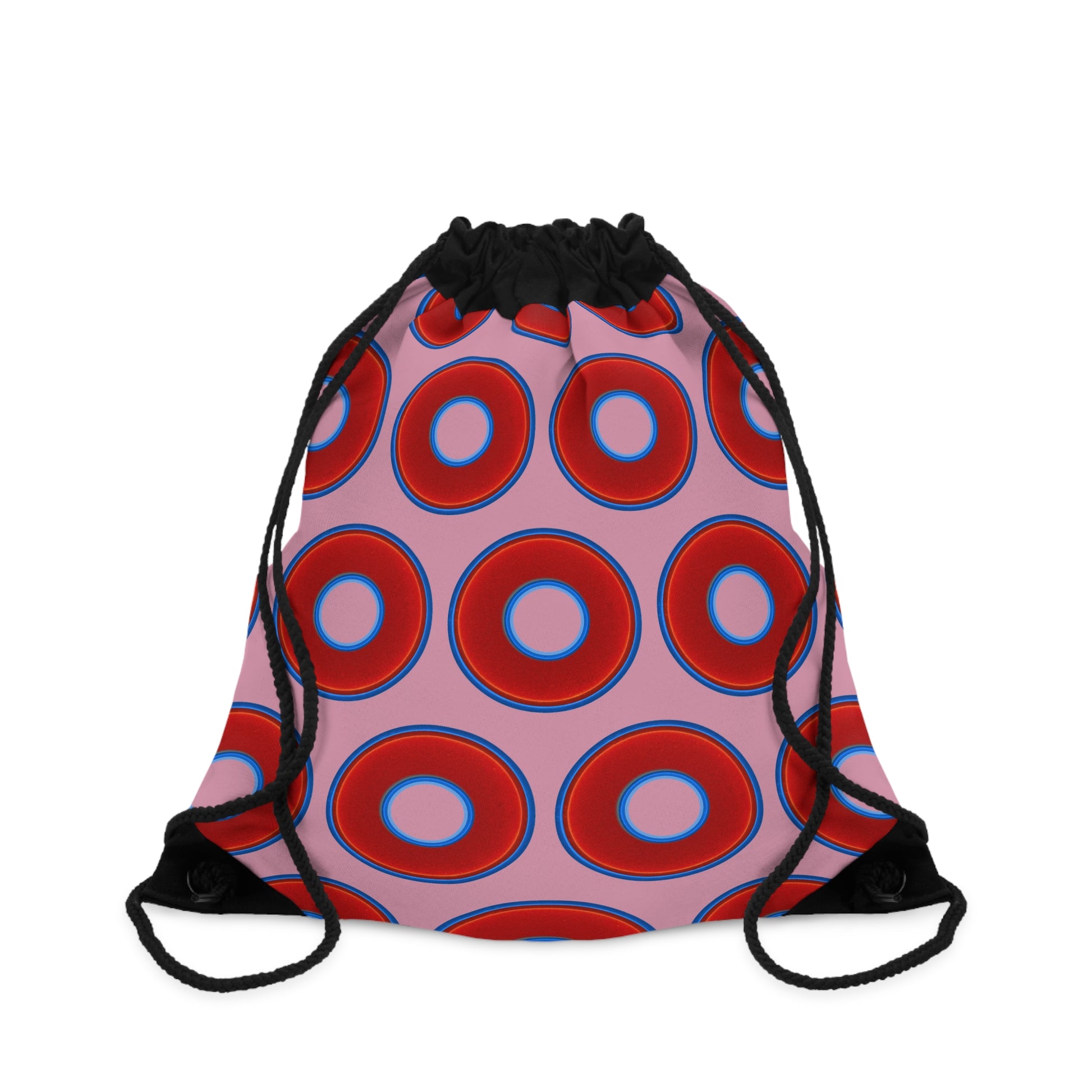 Lumpy Donut Drawstring Bag - red vivid donuts print w/pale magenta background