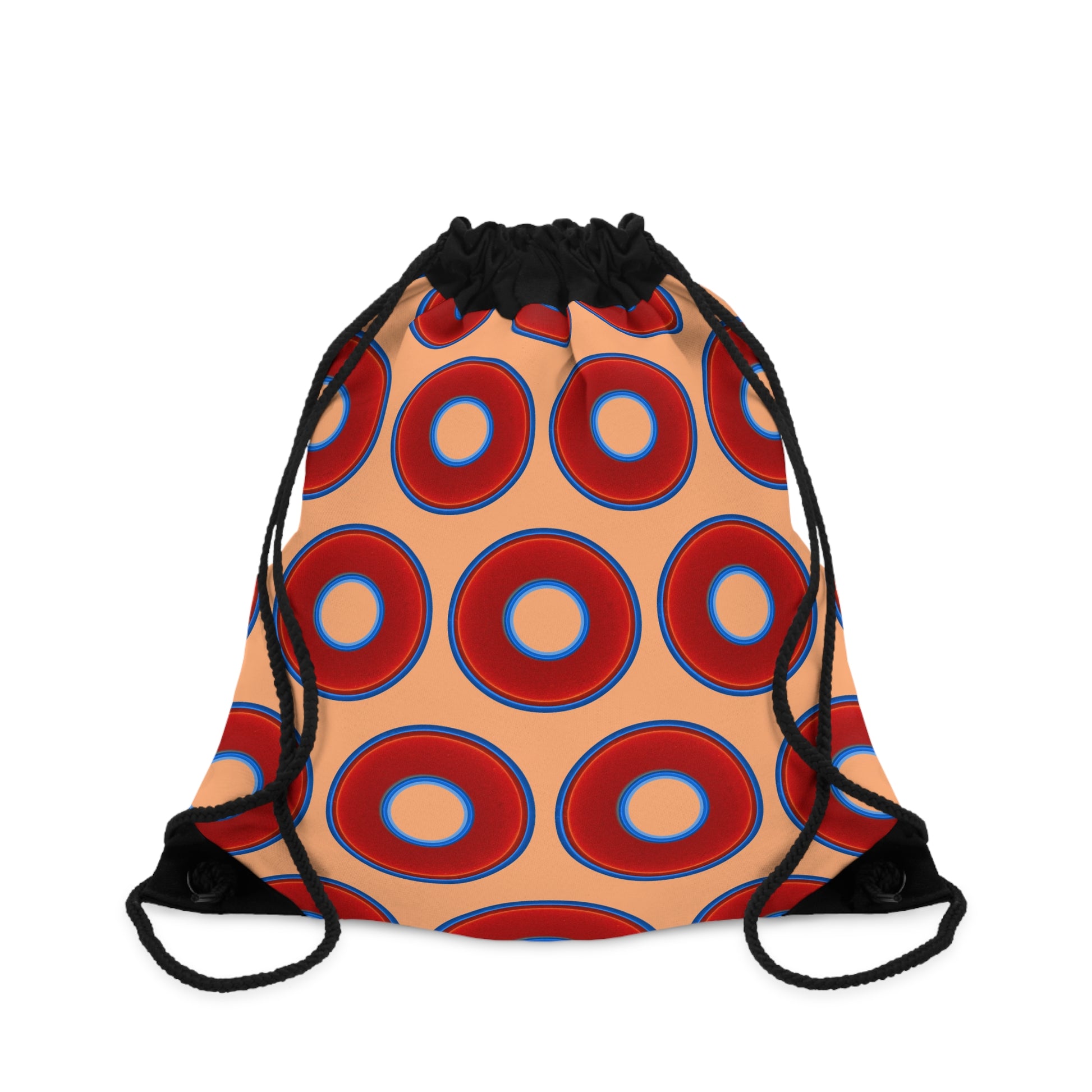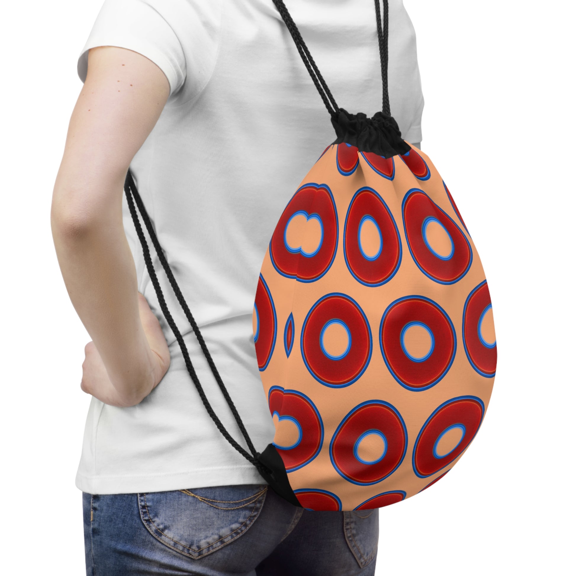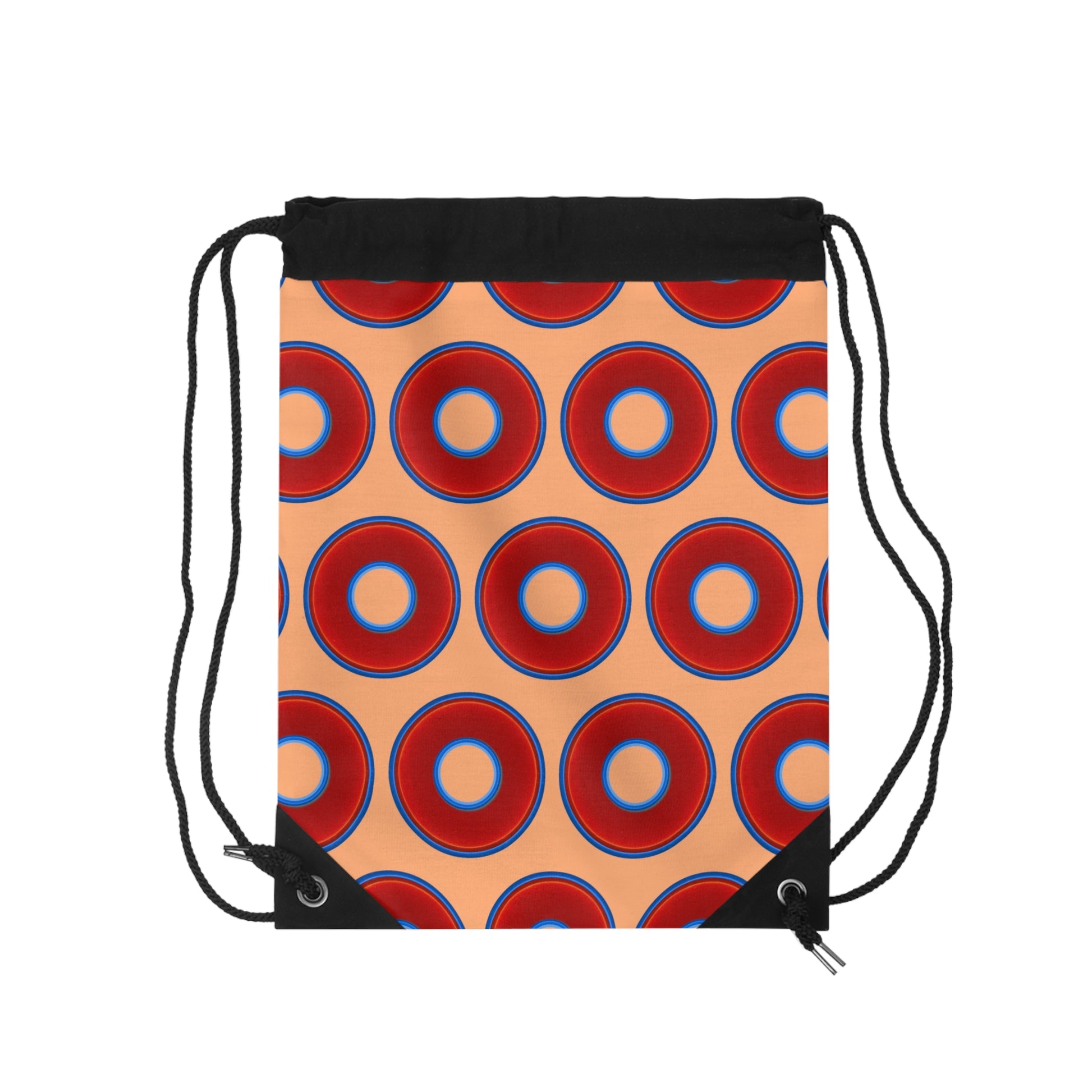 Lumpy Donut Drawstring Bag - red vivid donuts print w/peach background