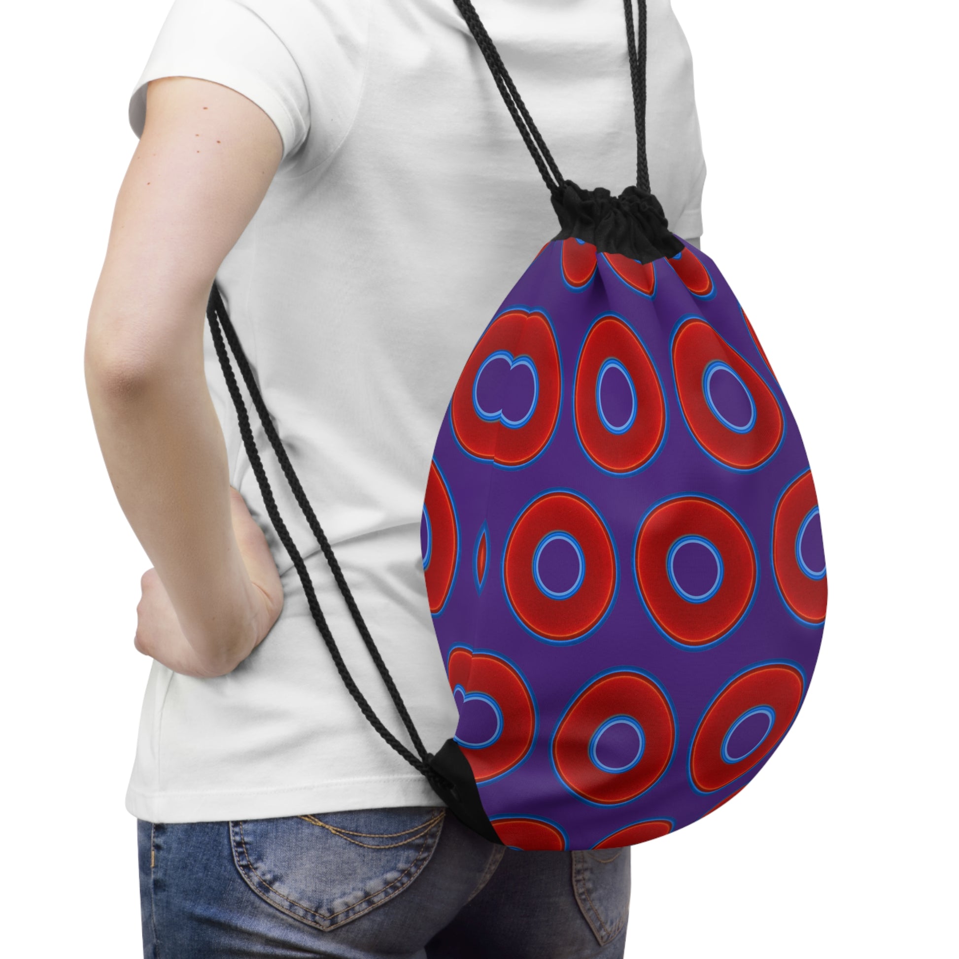 Lumpy Donut Drawstring Bag - red vivid donuts print w/purple background